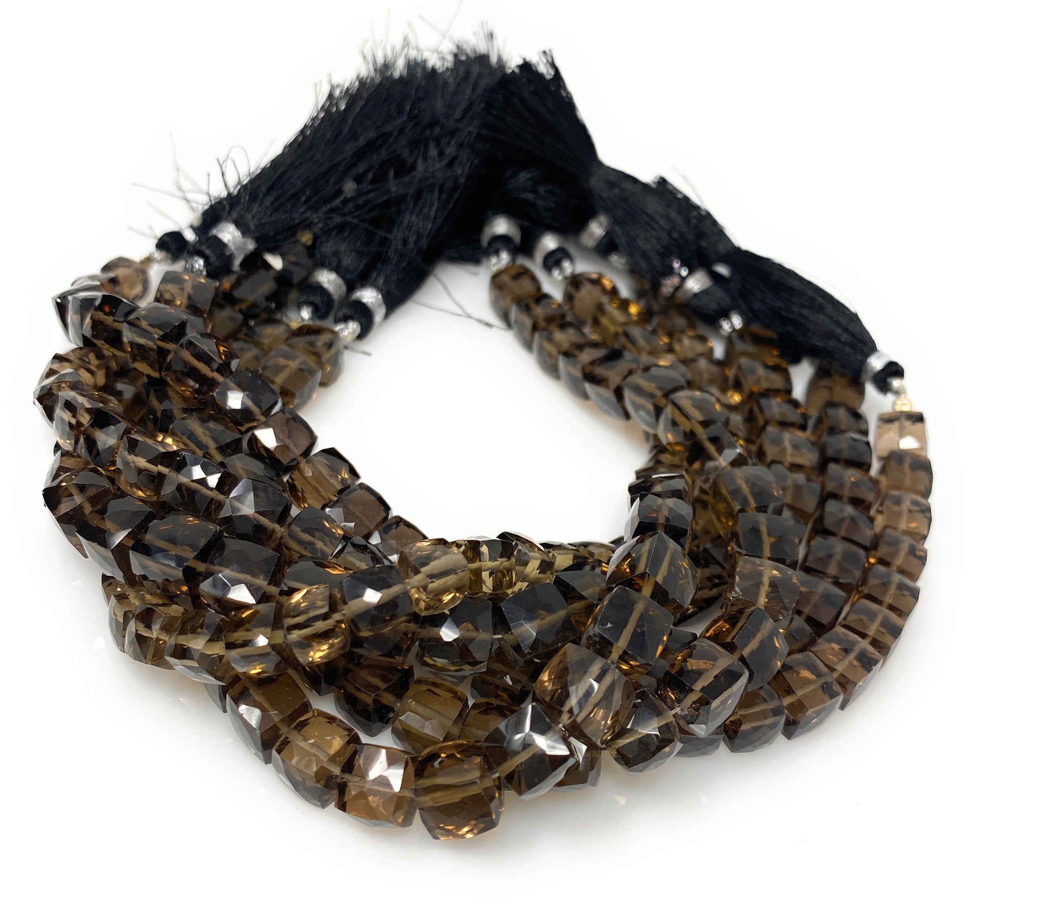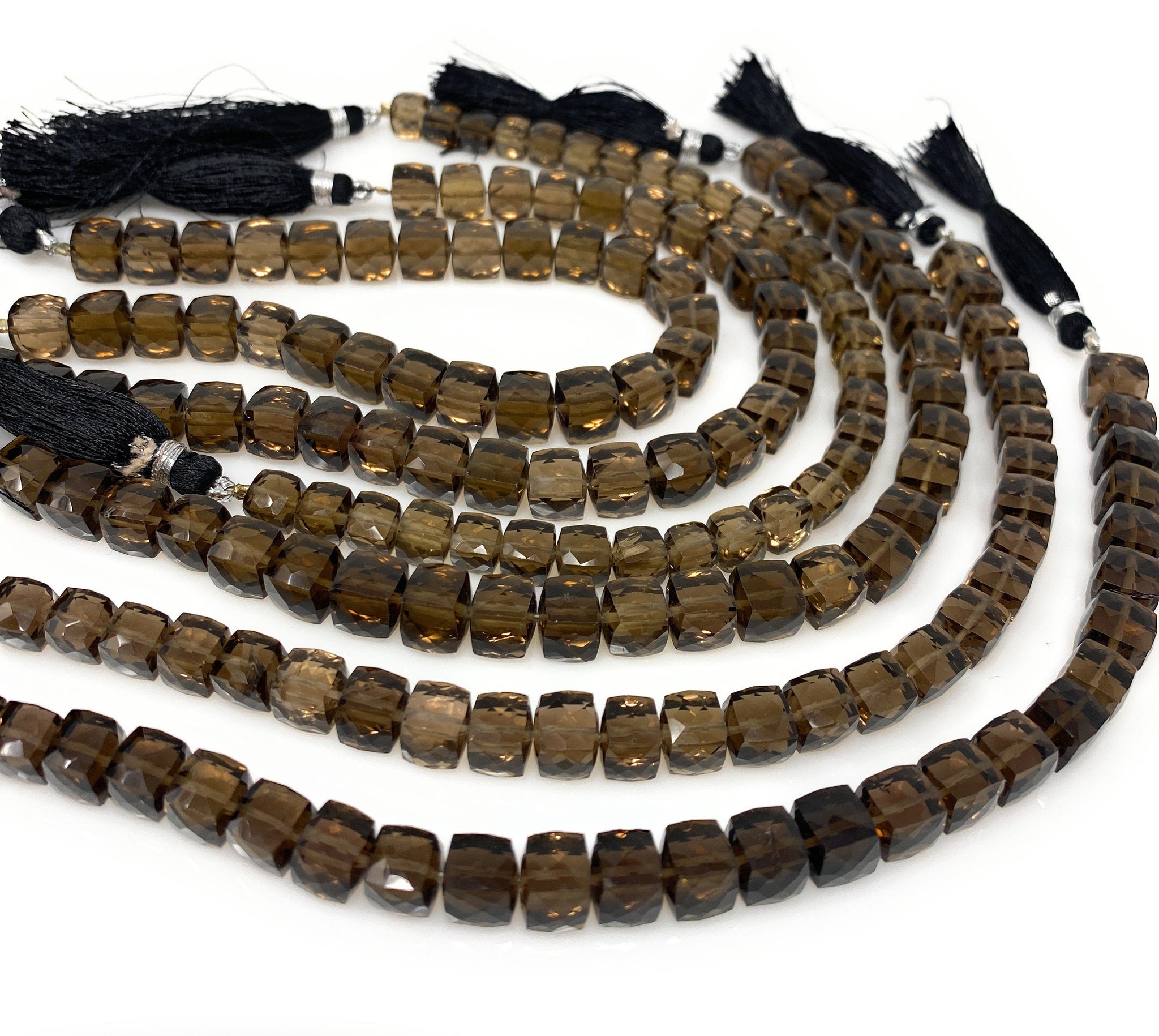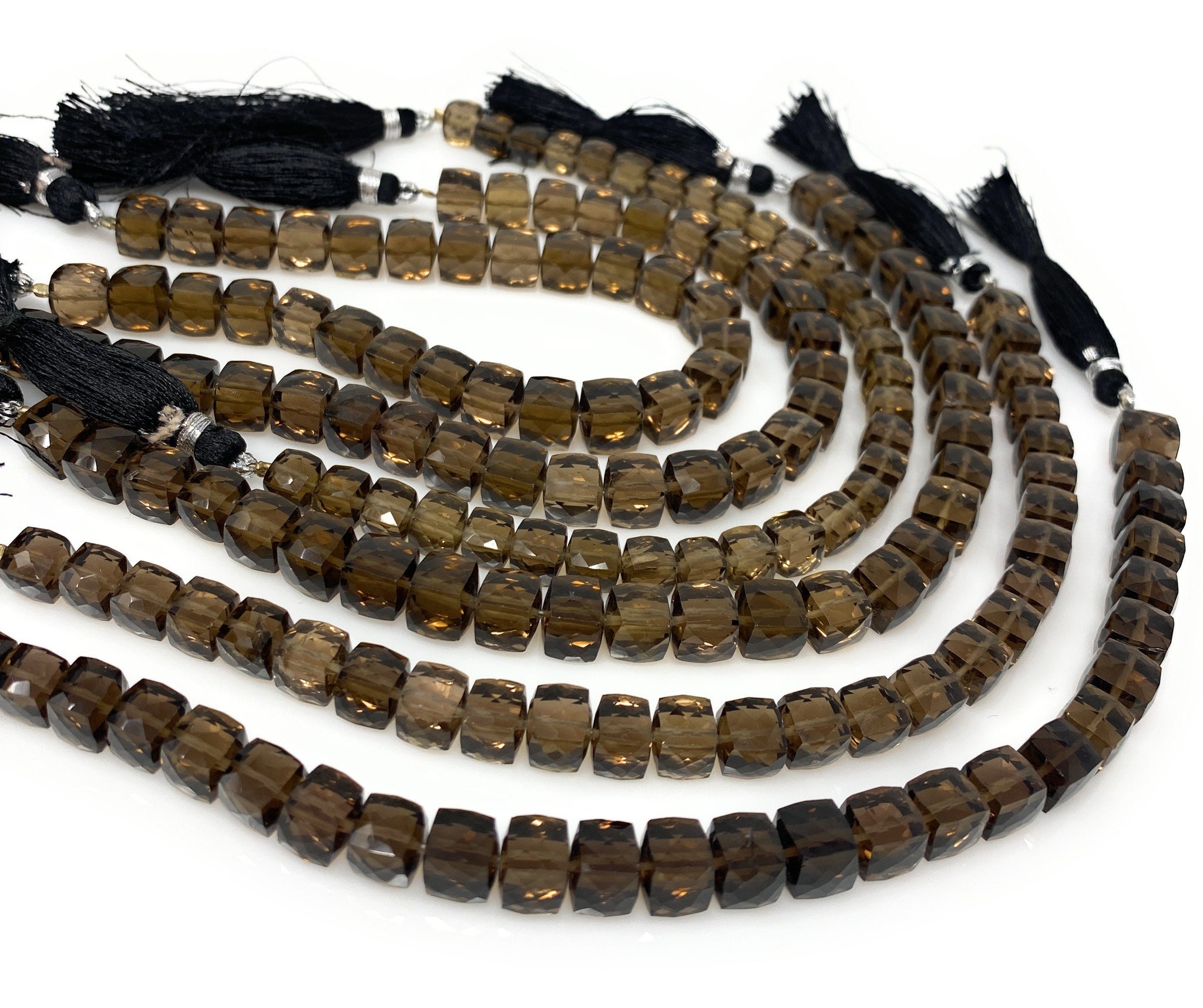 8" Natural Smoky Quartz Gemstone Beads, 3 D Cube Box Beads, Jewelry Supplies, Wholesale Bulk Beads, 8mm - 9mm