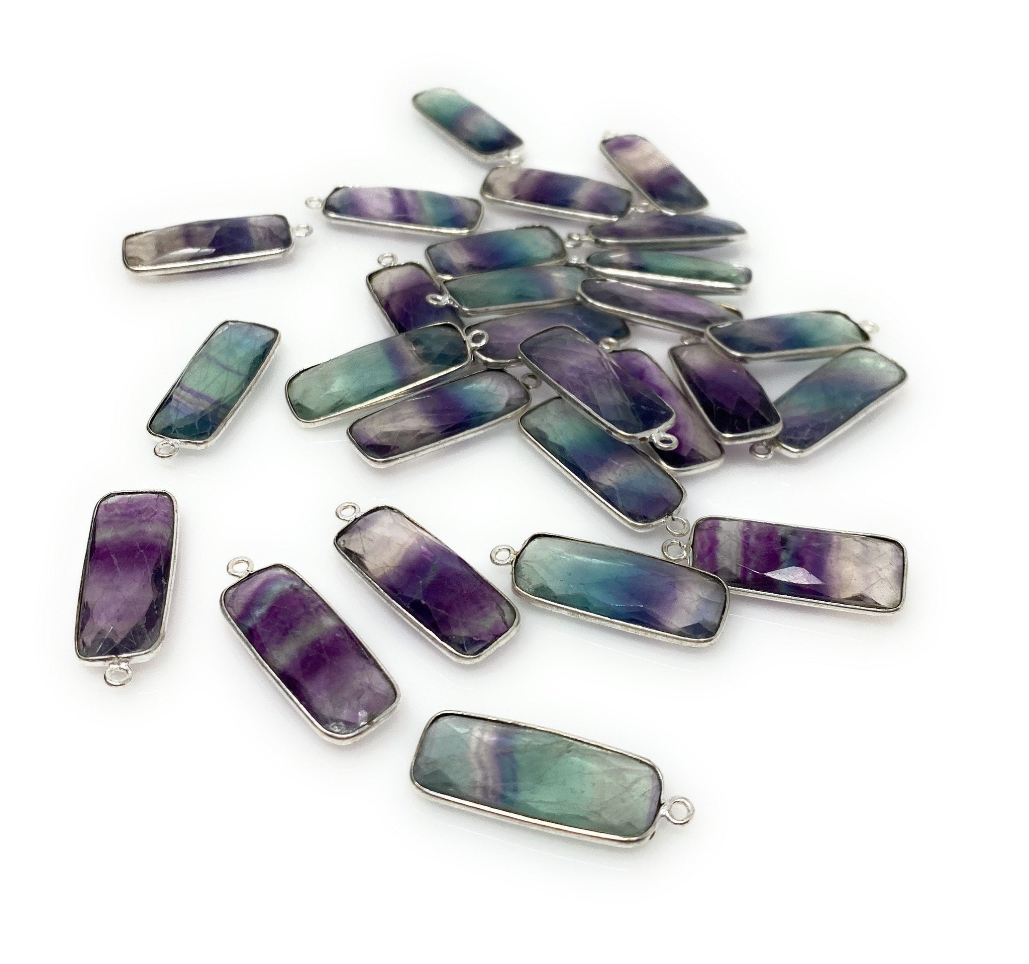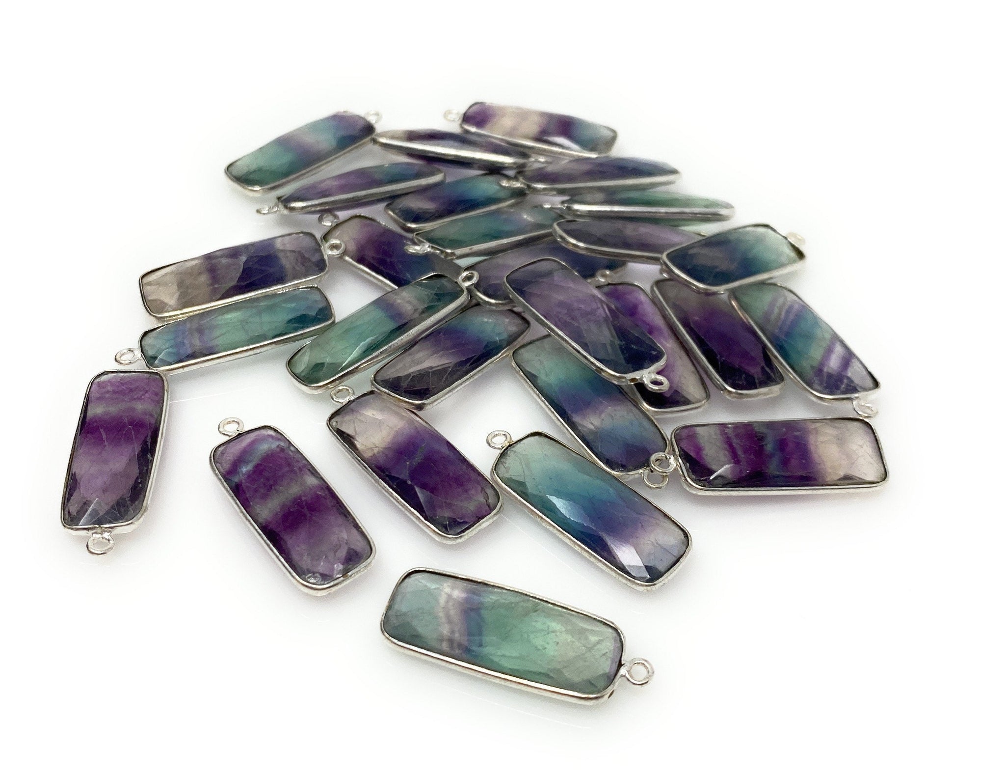 Natural Fluorite Gemstone Silver Plated Charms Bulk Lot Jewelry Supplies for Jewelry Making .