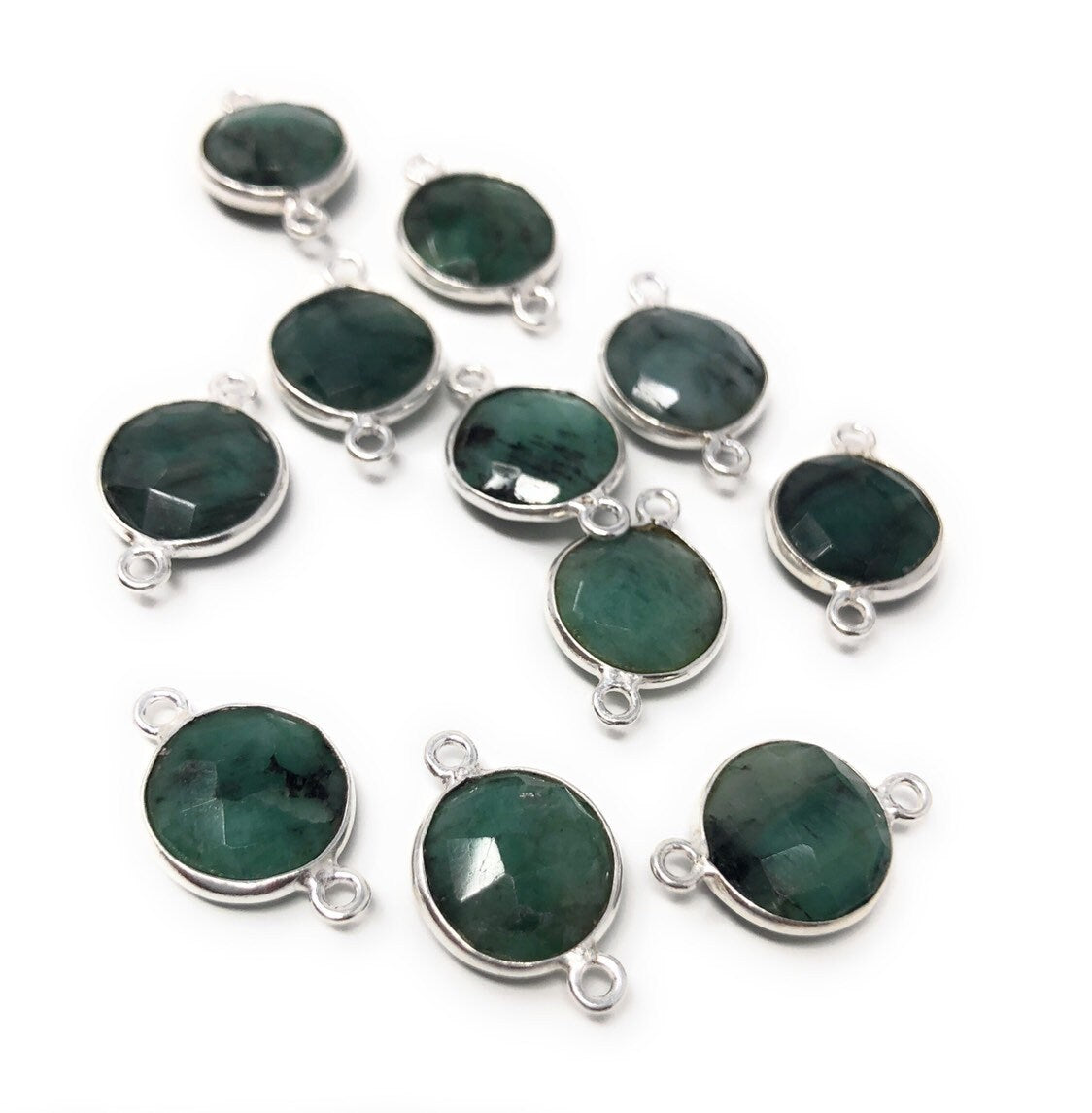 Sterling Silver Natural Emerald Gemstone Connectors Jewelry Findings for Jewelry Making at Wholesale Price.
