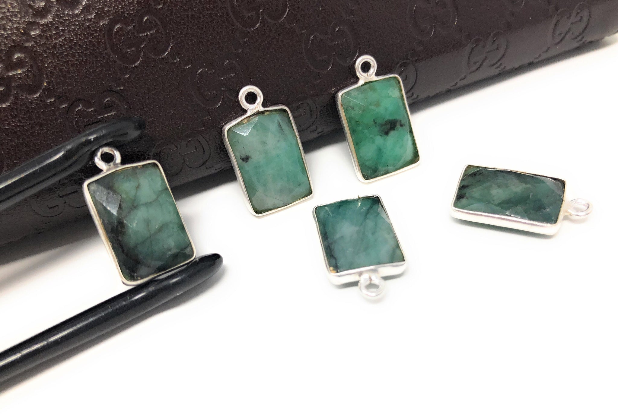 Sterling Silver Gemstone Emerald Charms Bezel Set Add a Charm Jewelry Supplies for Jewelry Making at Wholesale Price.