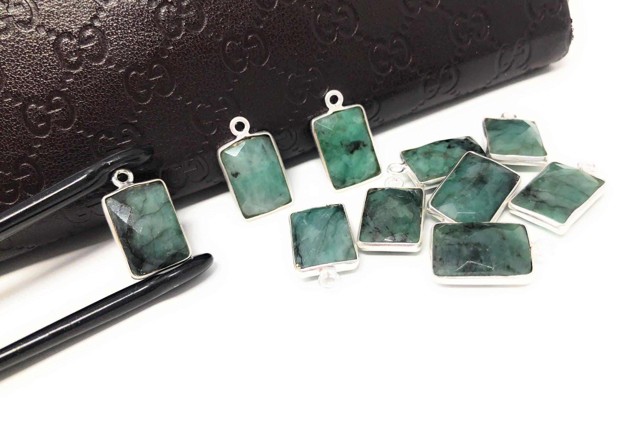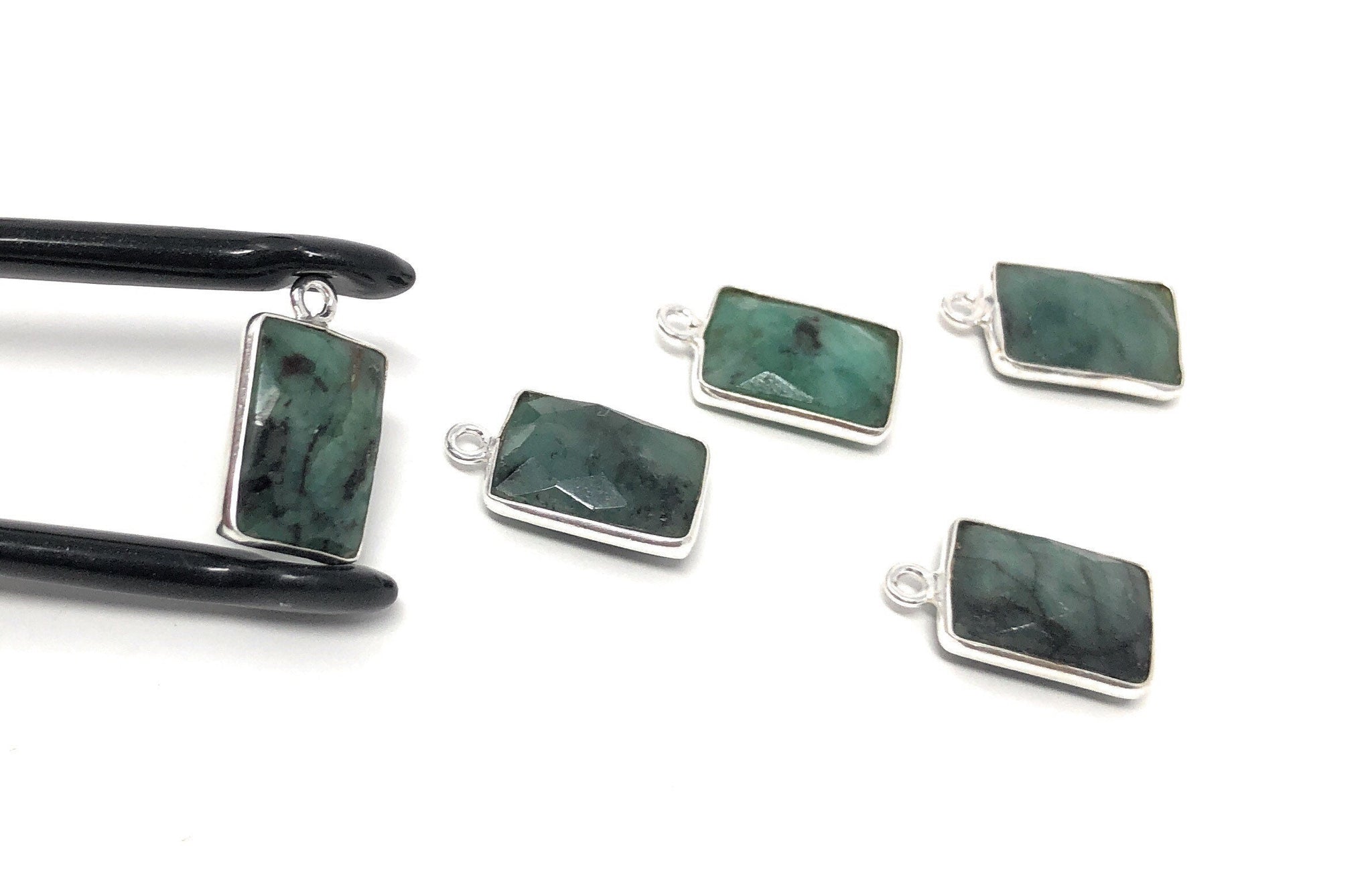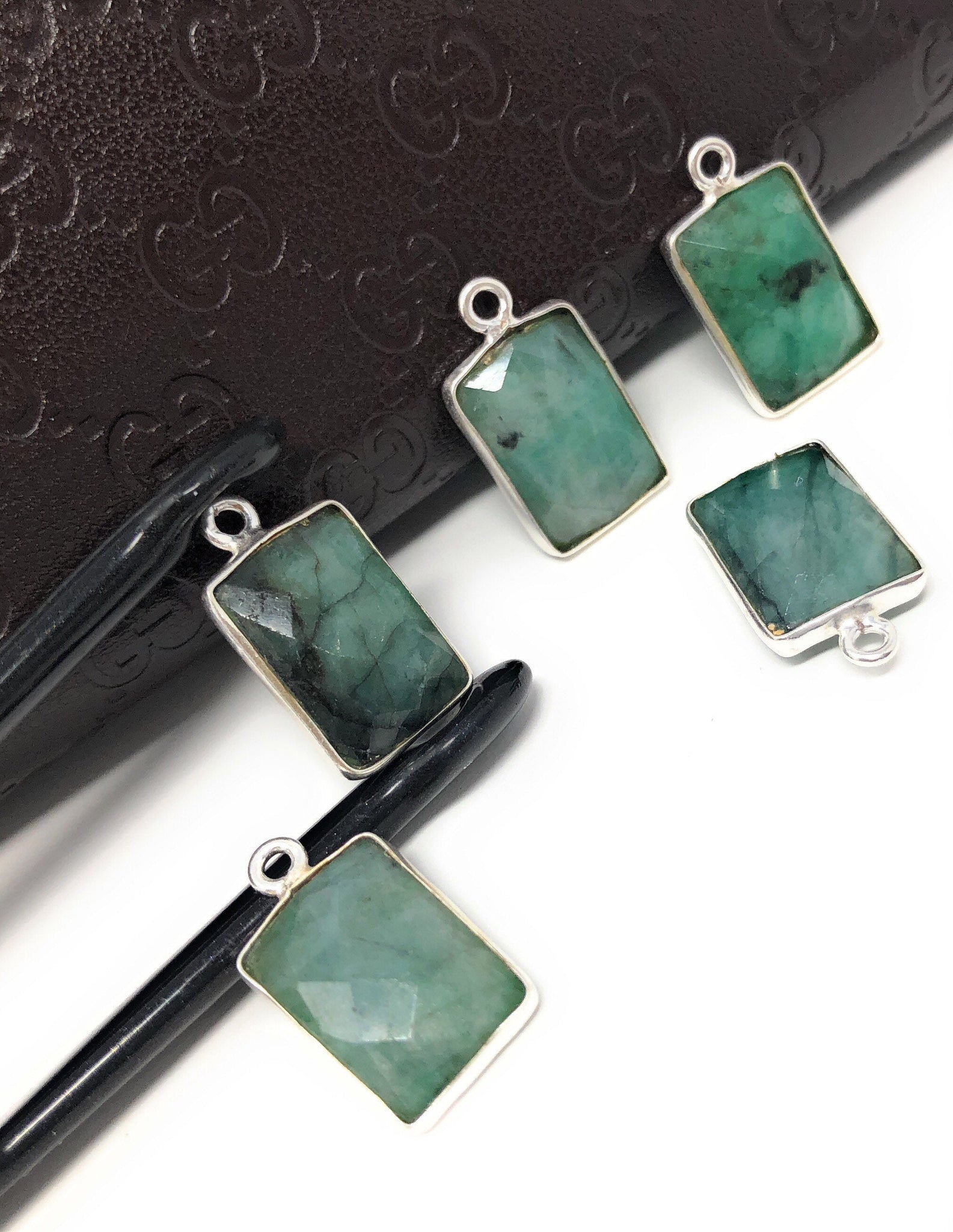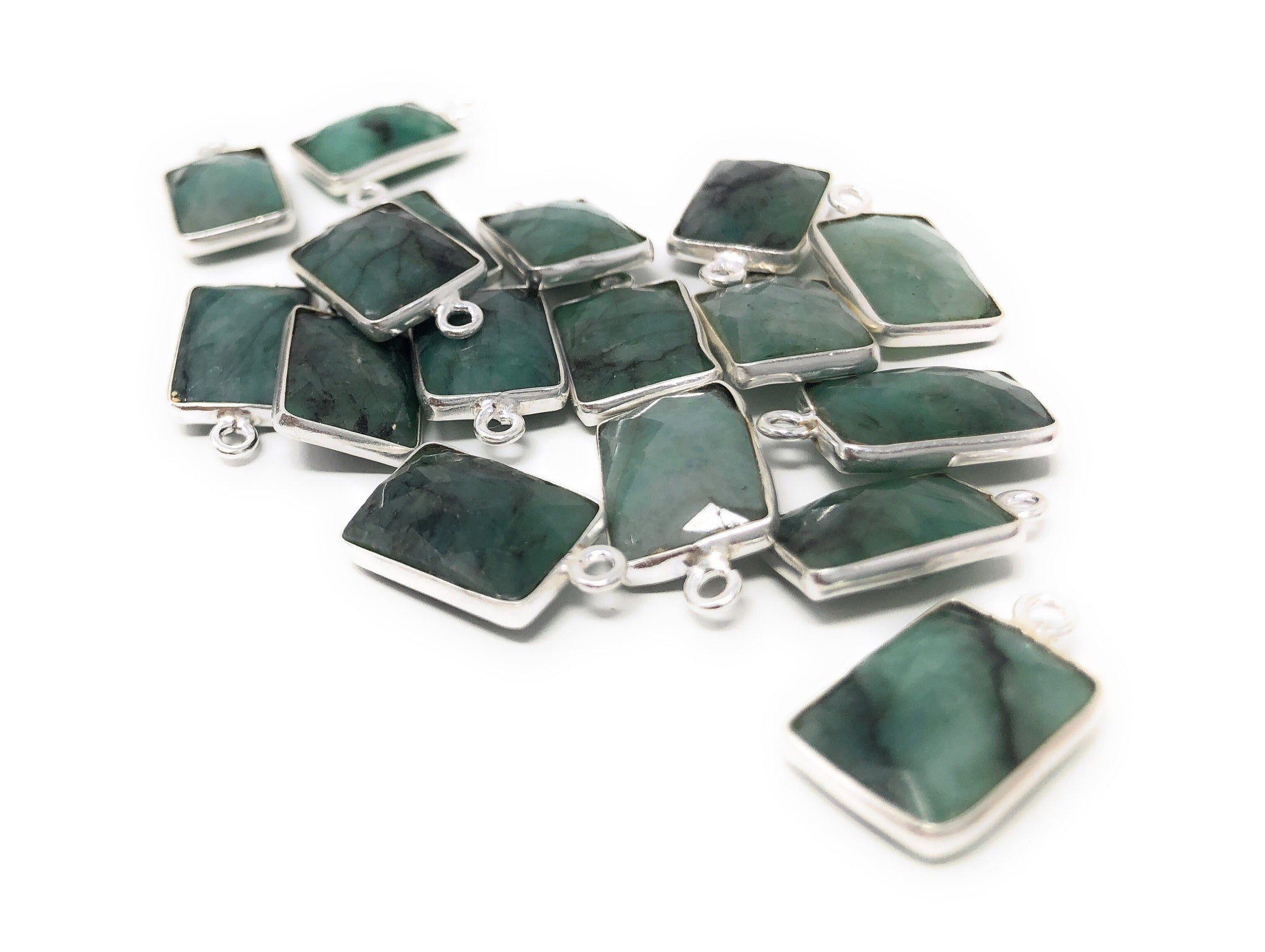 These beautiful Sterling Silver Double Sided Bezel Set Faceted Sakota Emerald Charms are handmade and can be used used for making any creative Jewelry Piece.
