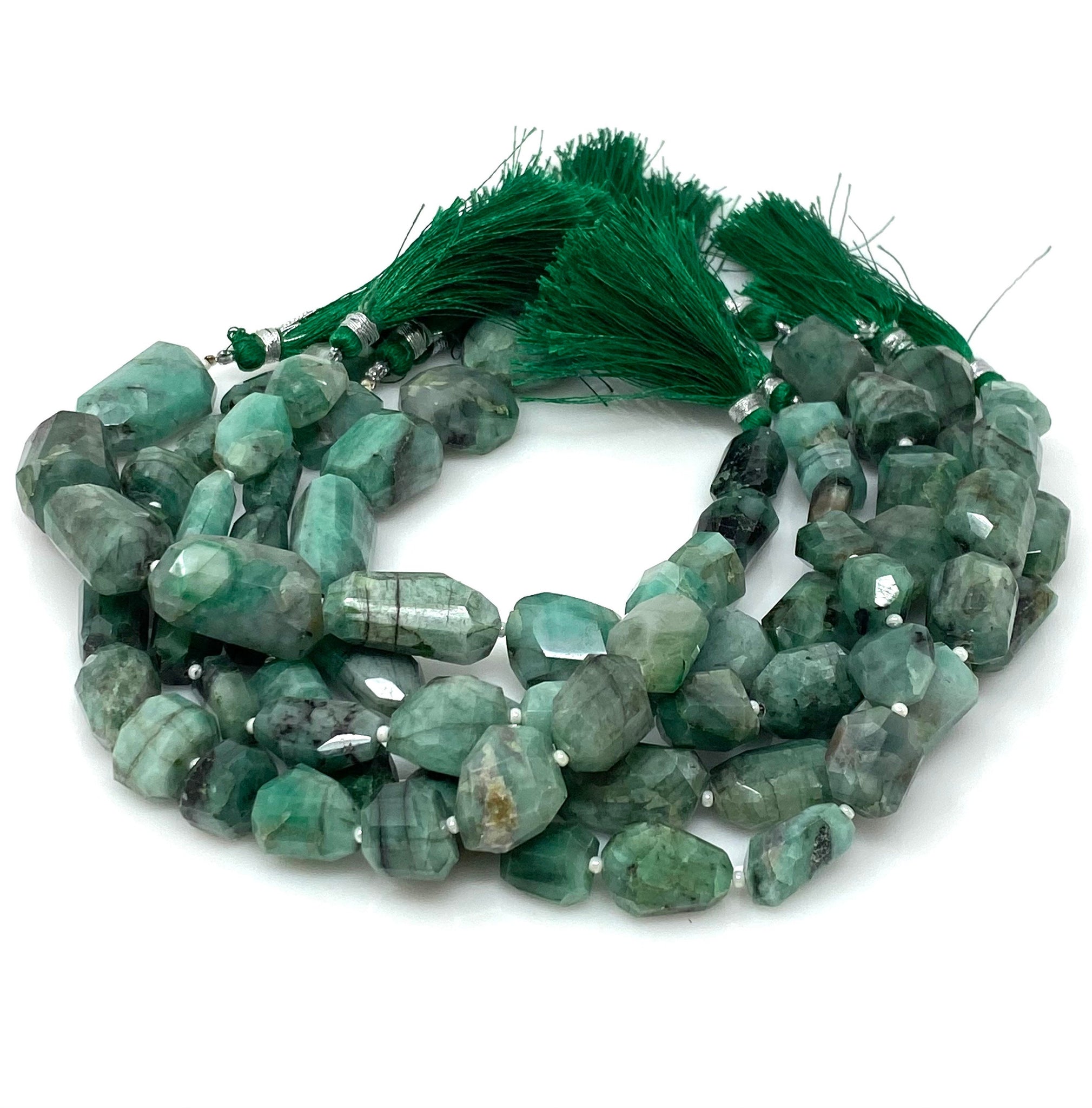 9.5 Inch Natural Emerald Faceted Nugget Beads, Genuine Emerald Wholesale Beads, May Birthstone Gemstone Beads
