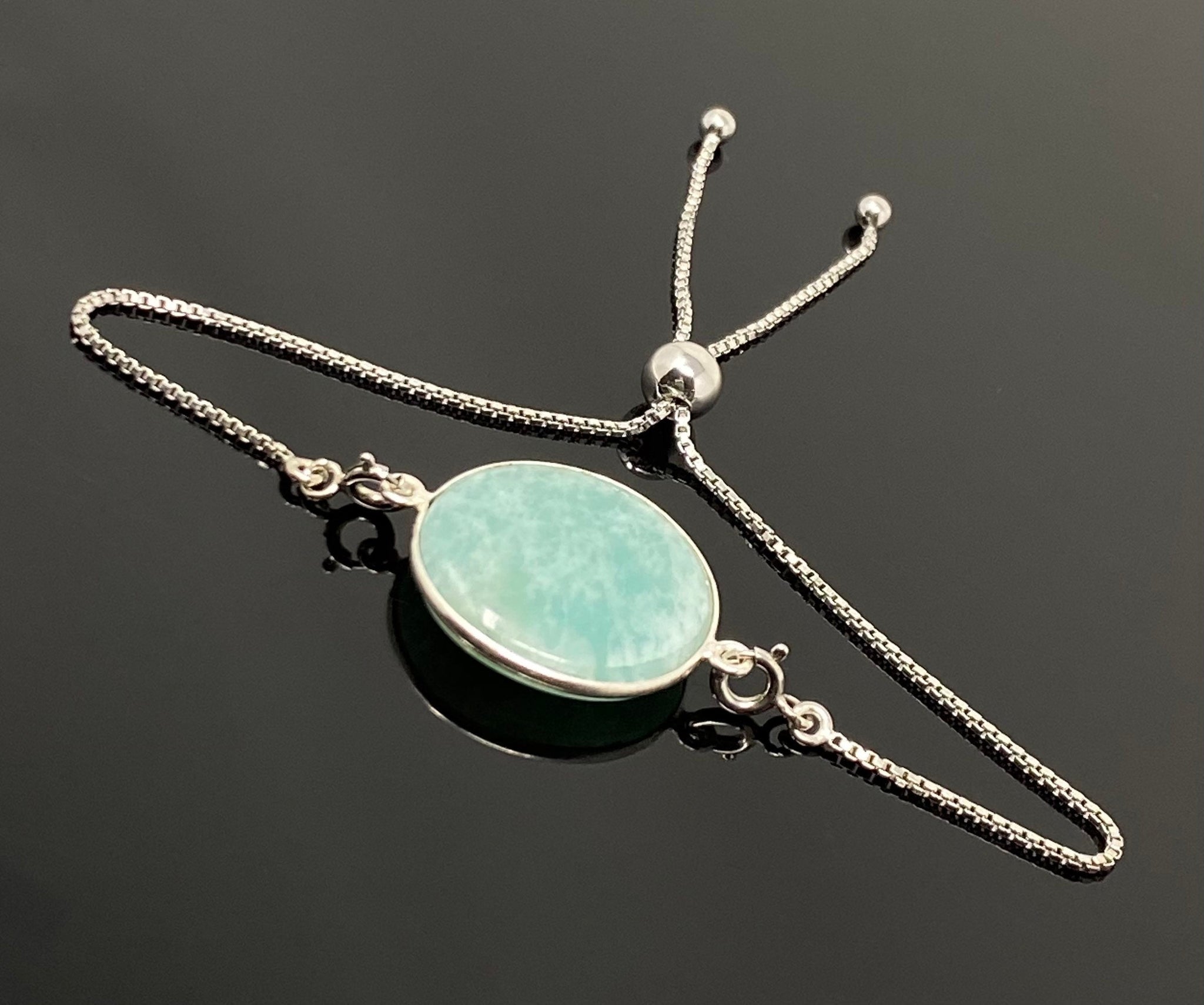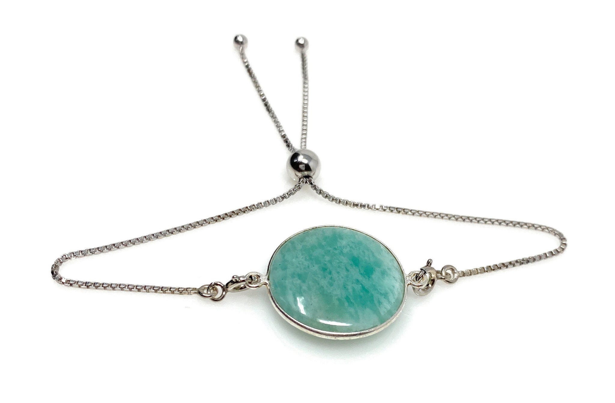 Amazonite Gemstone Bracelet, Sterling Silver Adjustable Bolo Bracelet, AAA Quality Peruvian Amazonite Bracelet, Gifts for Her