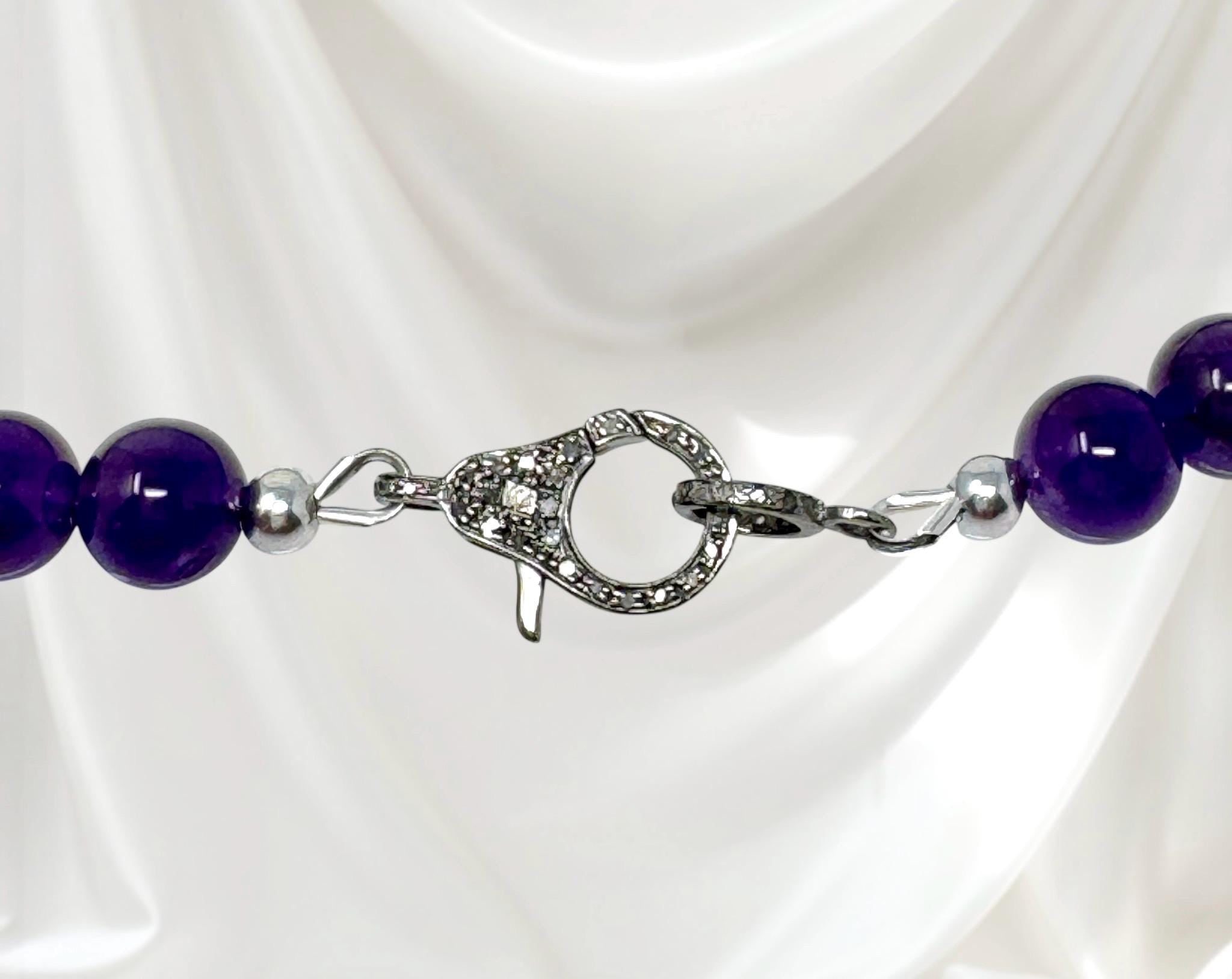 Unlock the power of transformation with this stunning Handmade Beaded Amethyst and Larimar Pave Diamond Necklace.