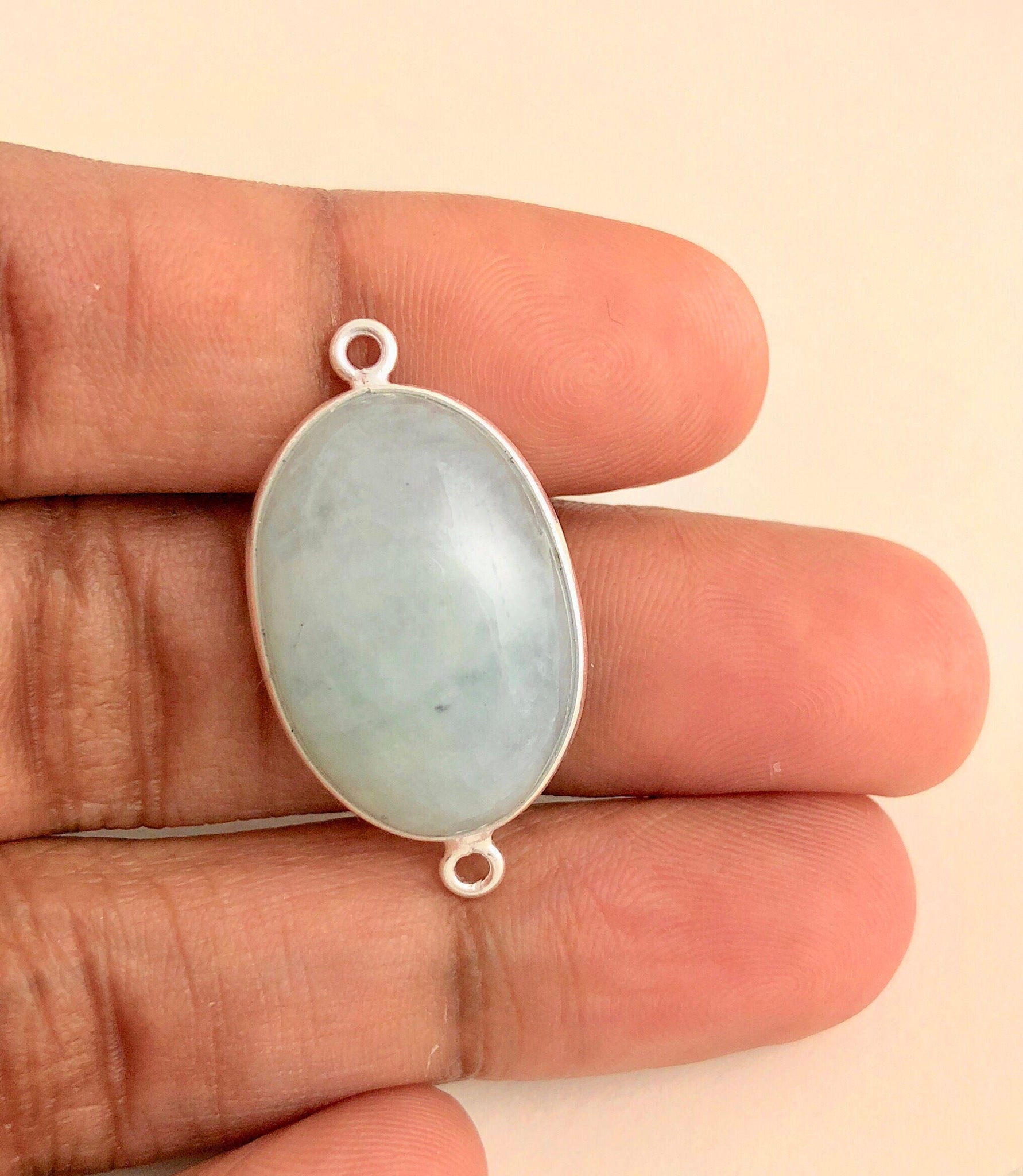 925 Sterling Silver Handmade Large Natural Gemstone Smooth Aquamarine Bezel Set Connector for Jewelry Making at Wholesale Price.
