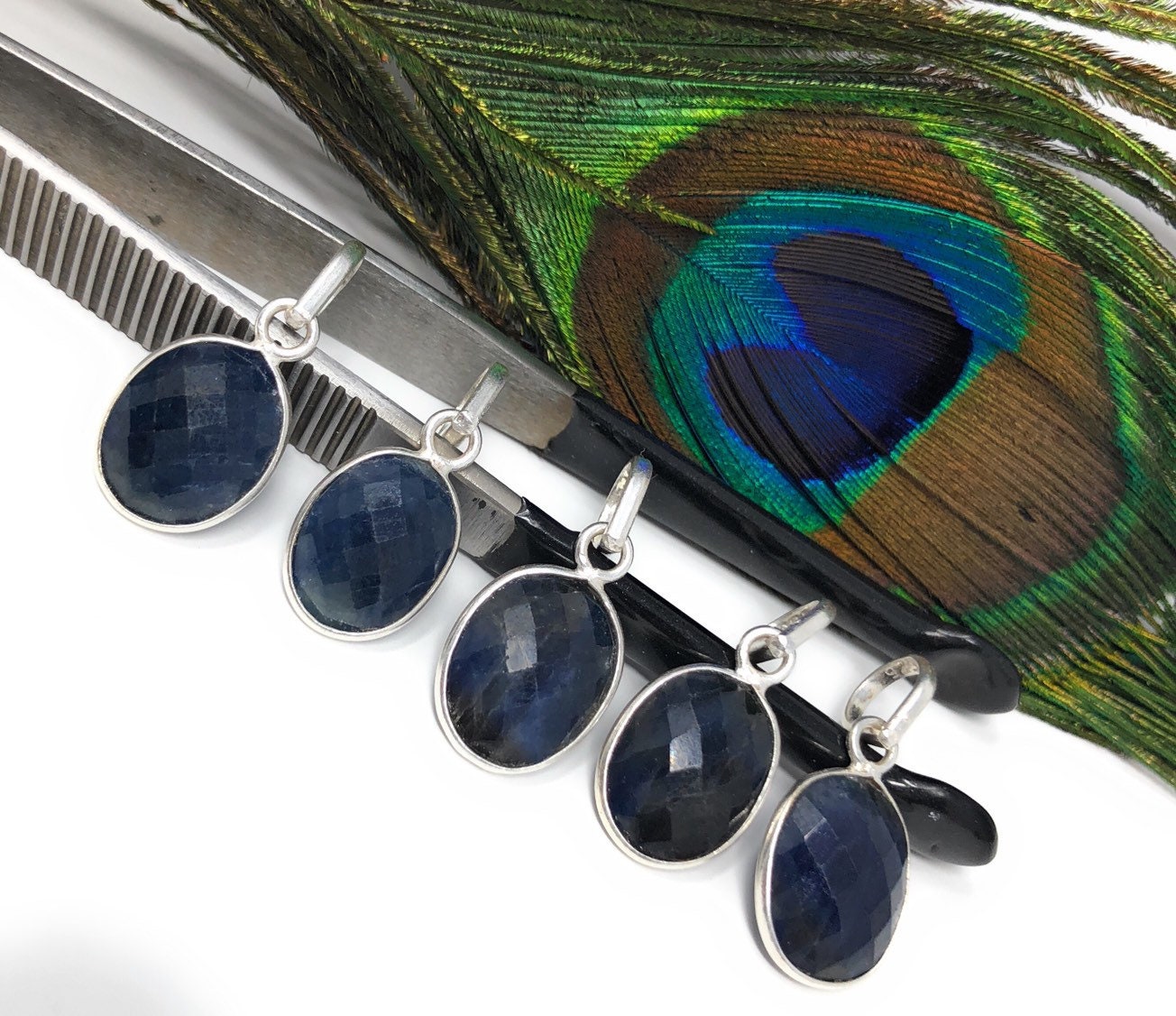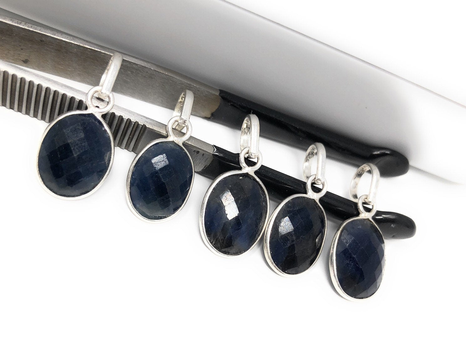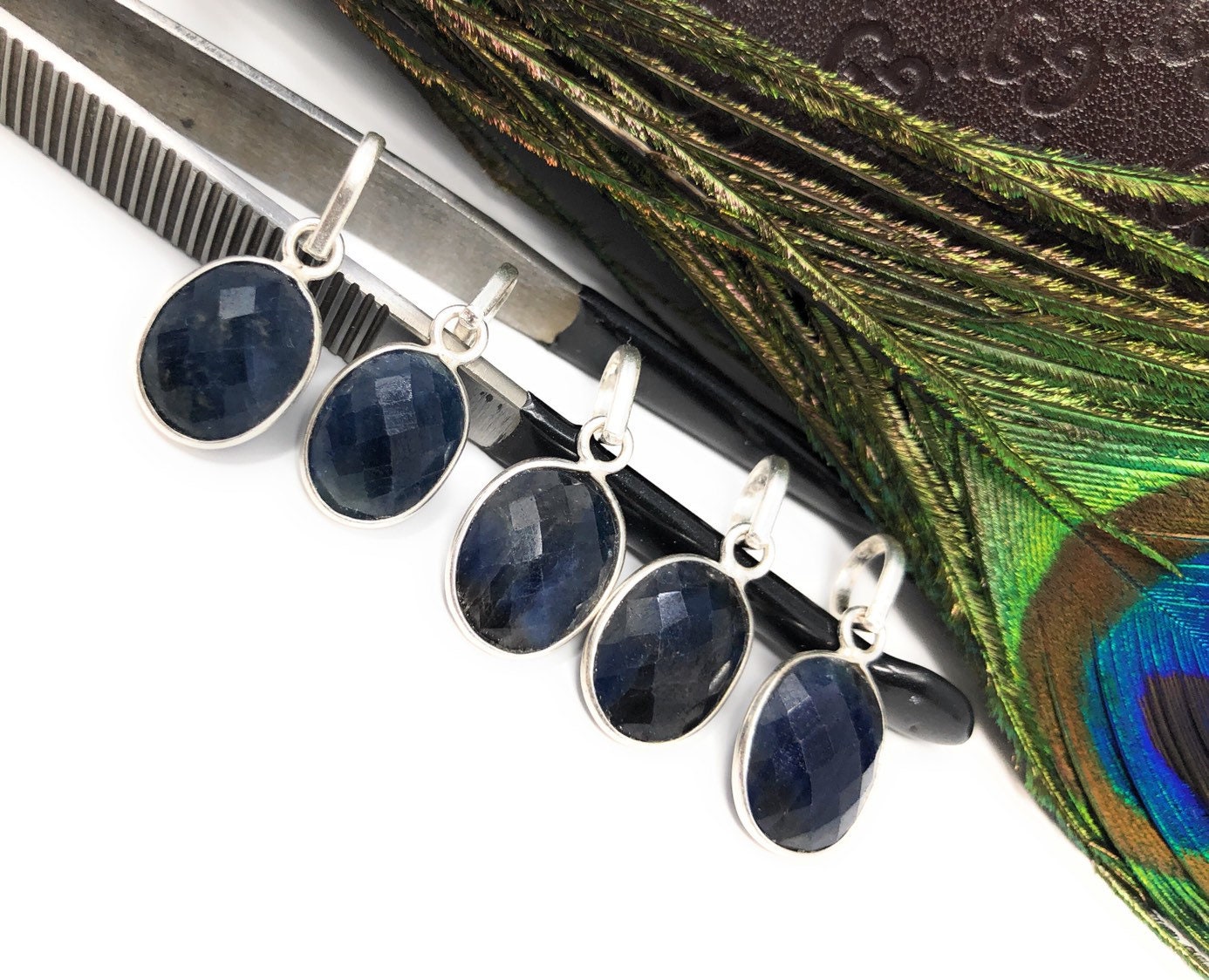 Natural Gemstone Blue Sapphire Pendant Sterling Silver Jewelry Supplies for Jewelry Making.