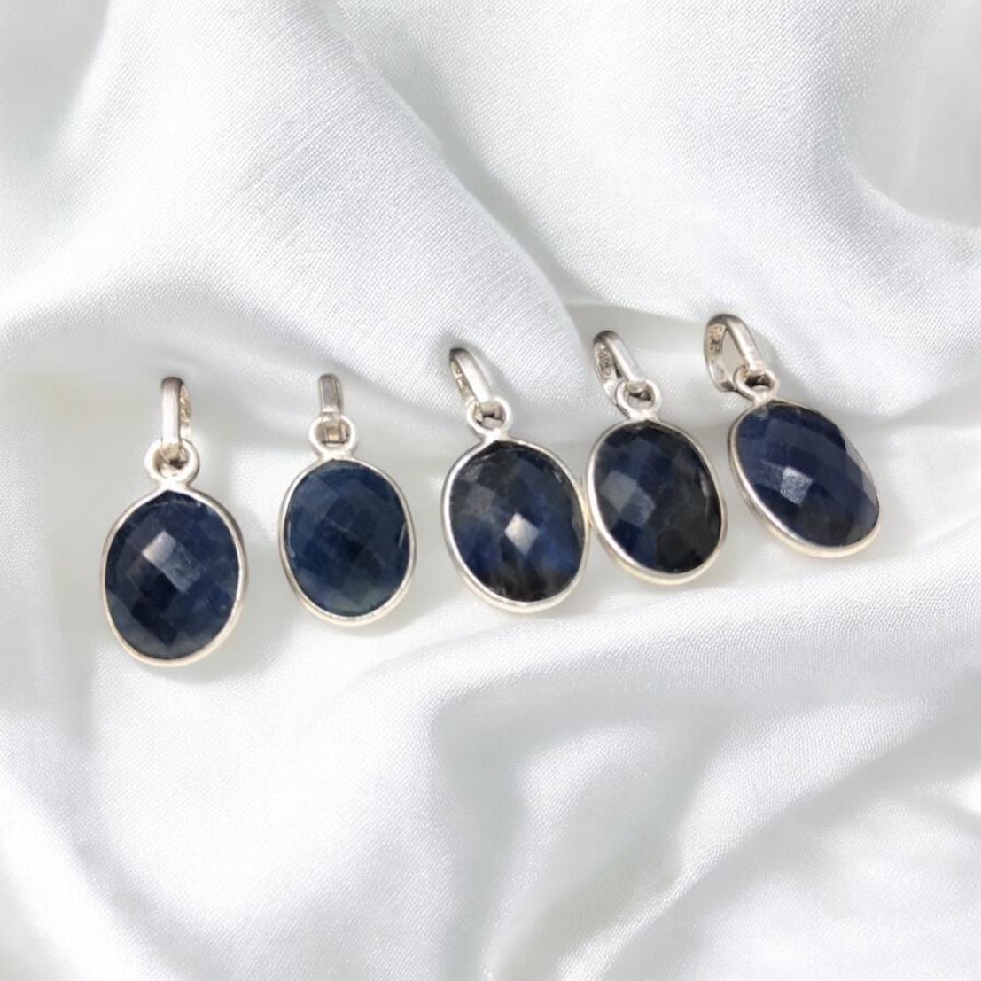 Blue Sapphire Gemstone Pendant, September Birthstone Pendant, Spiritual Healing Crystal Chakra Balancing Silver Pendant, DIY Jewelry Making