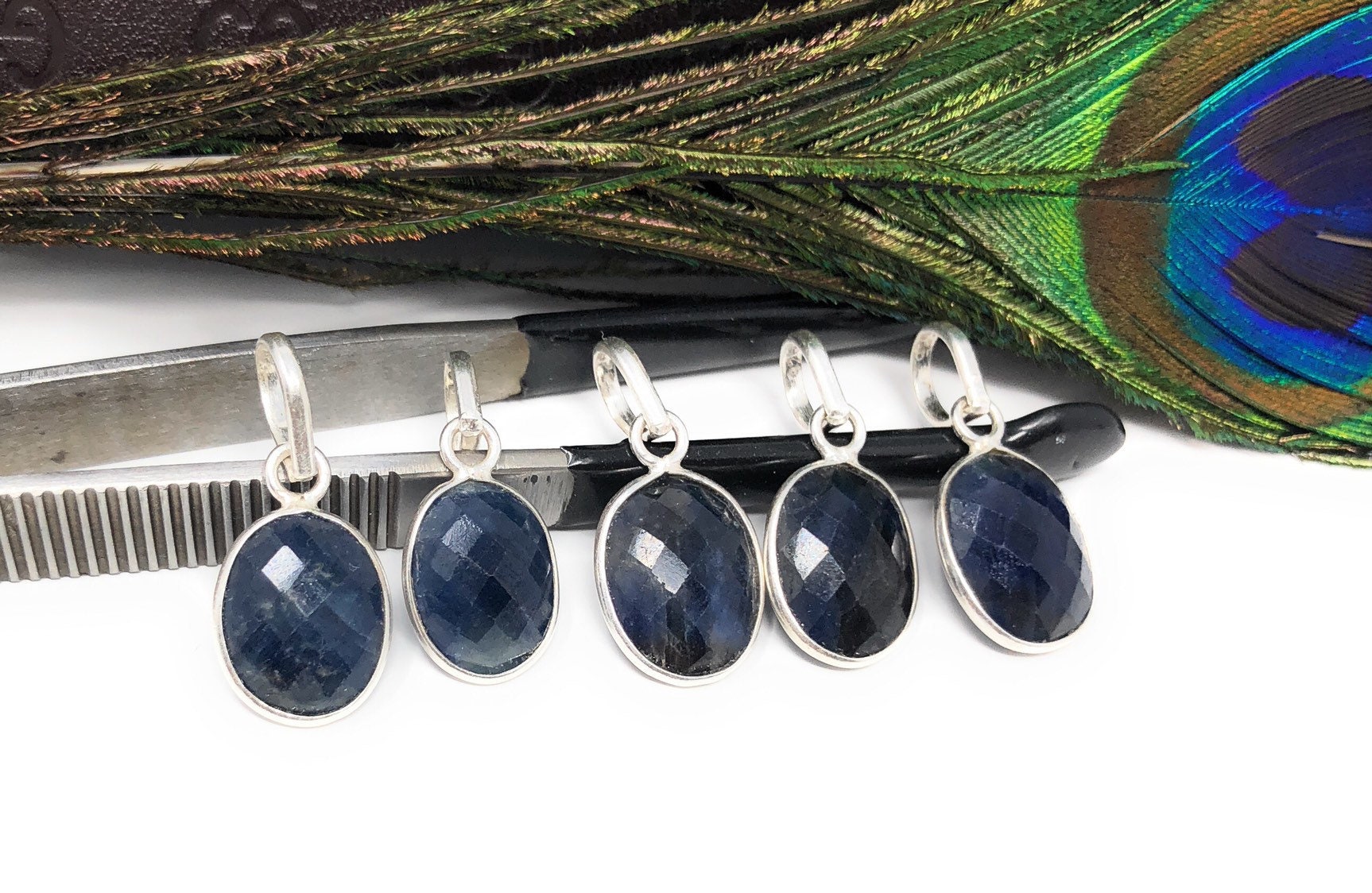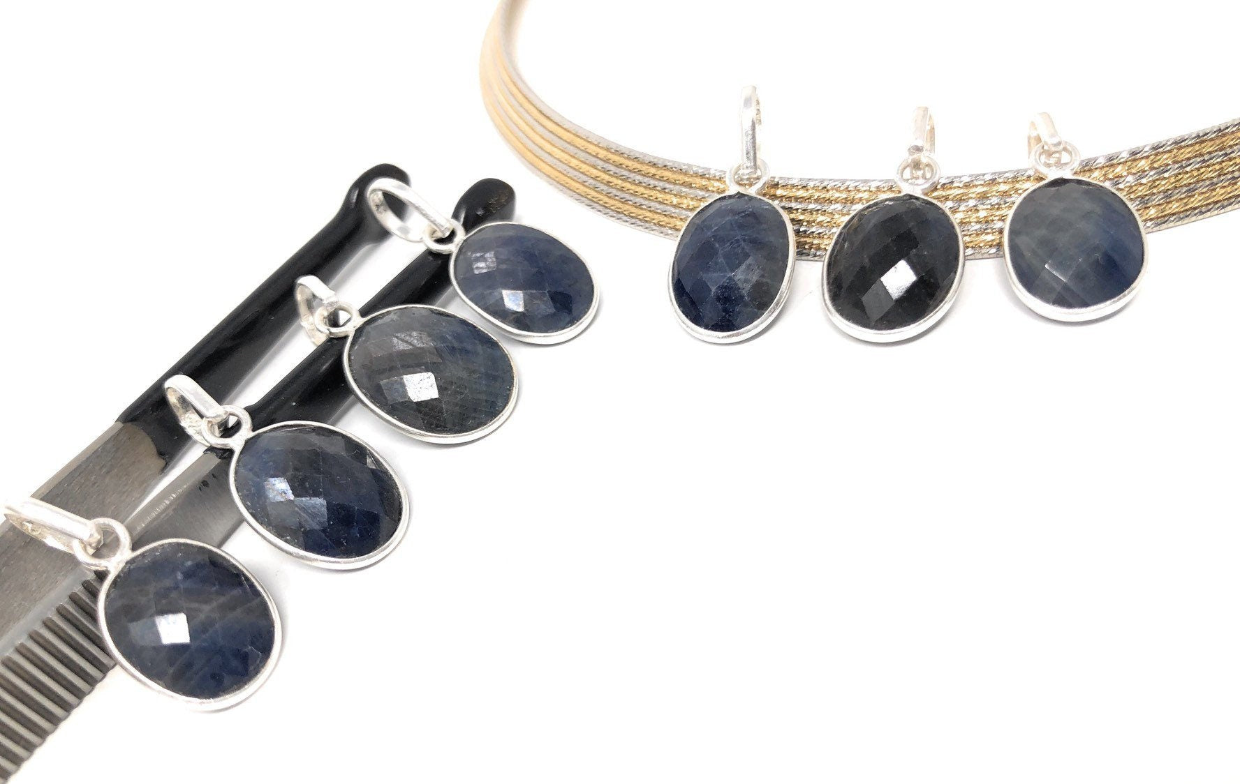 Natural Gemstone Blue Sapphire Pendant Sterling Silver Jewelry Supplies for Jewelry Making