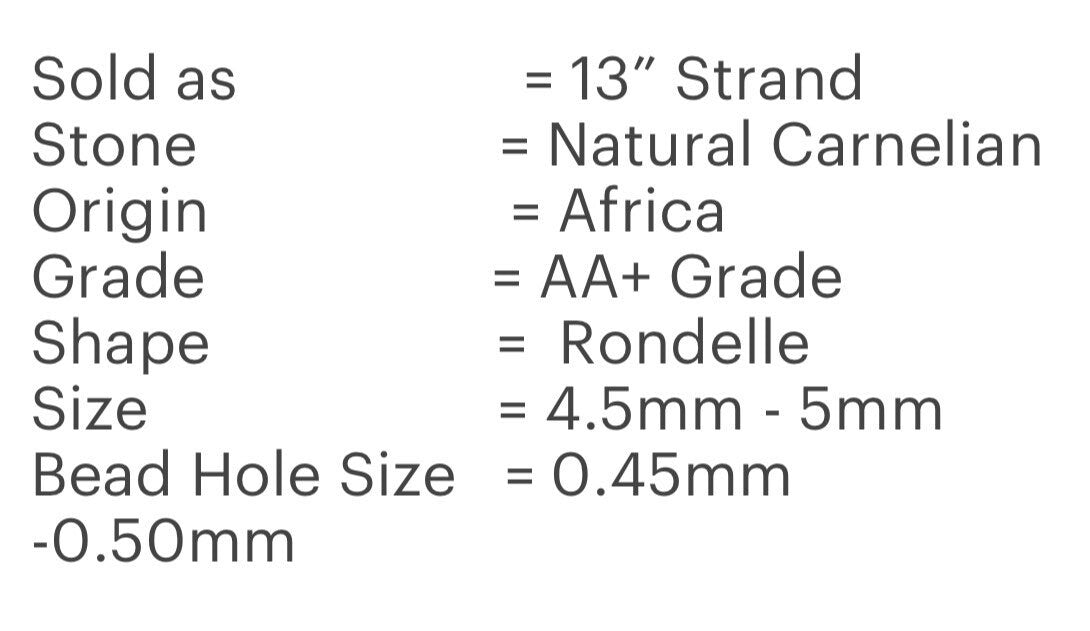 These Beautiful AA+ Grade Natural Carnelian Gemstone Beads are excellent for making Necklaces, Bracelets, Earrings , Anklets or any other Creative Jewelry Design.