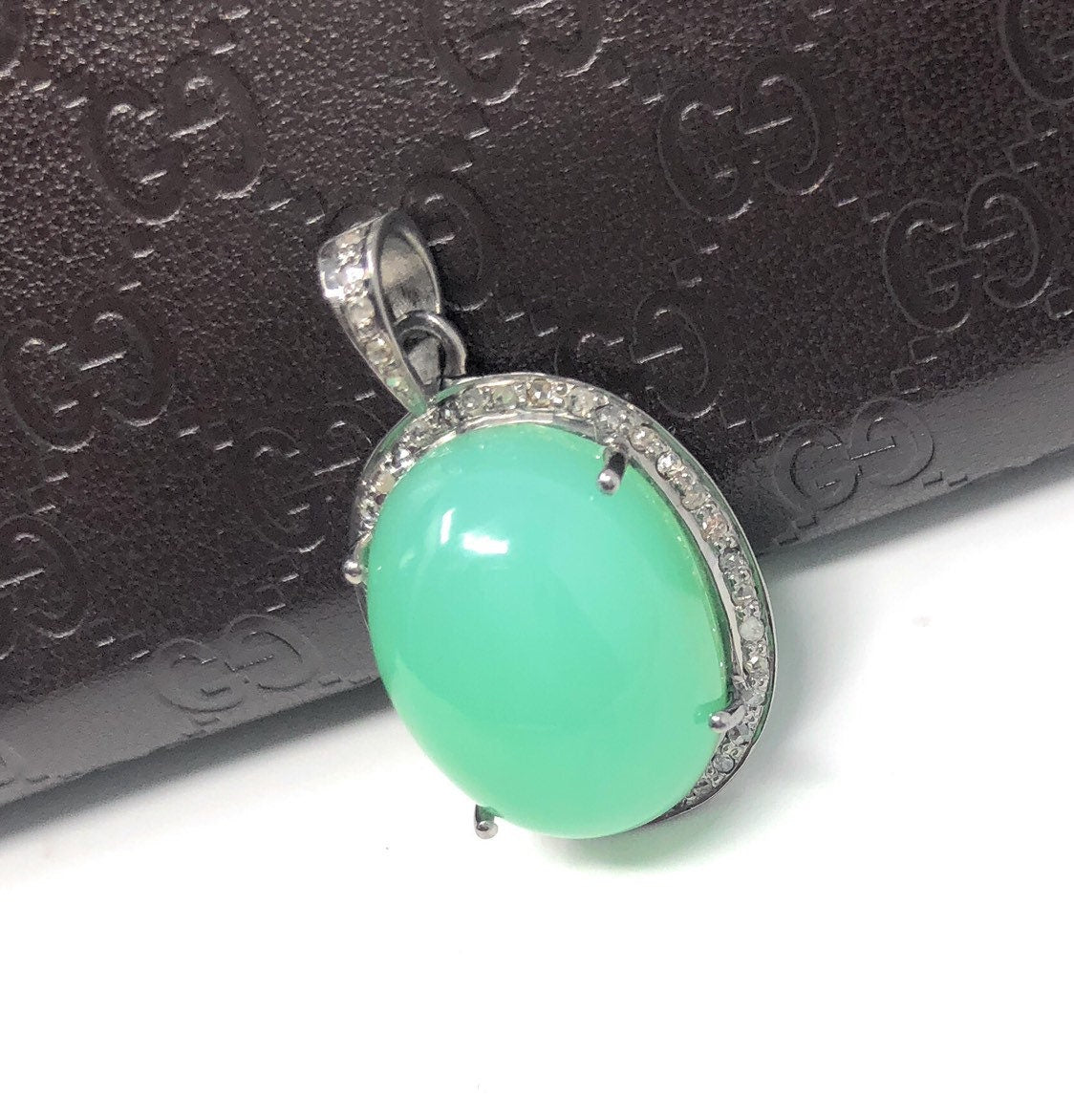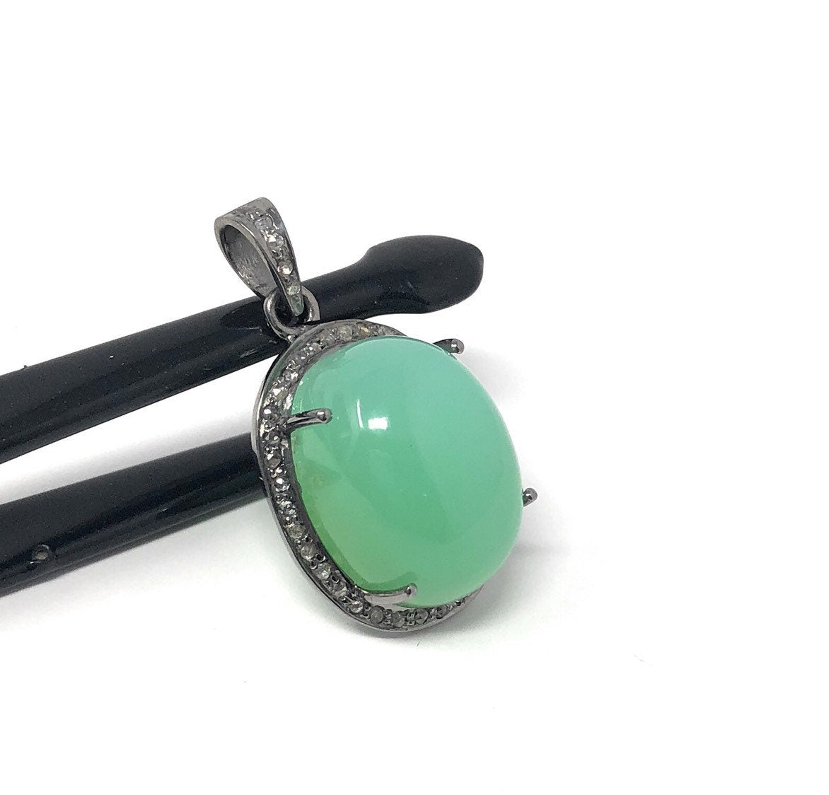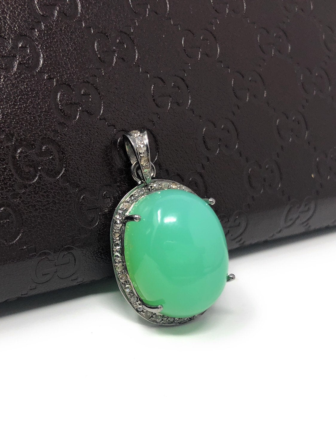 This beautiful Handmade AAA+ Grade Natural Chrysoprase Gemstone Oval Shape Oxidized 925 Sterling Silver Pave Diamond Pendant is an excellent choice for any occasion and makes a great gift for the loved ones.