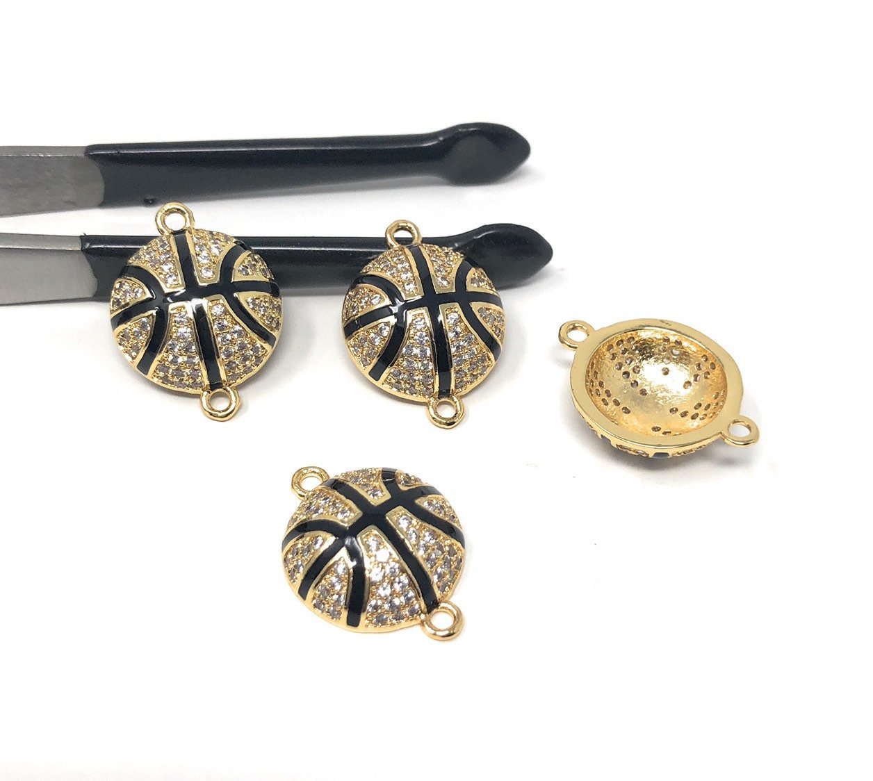 CZ Micro Pave Basketball Charm Connector Link Jewelry Findings for Jewelry Making at Wholesale Price.
