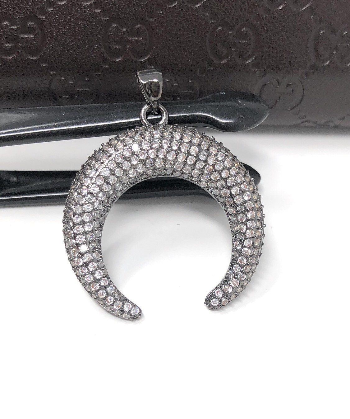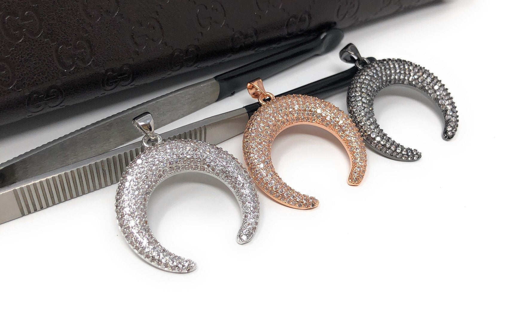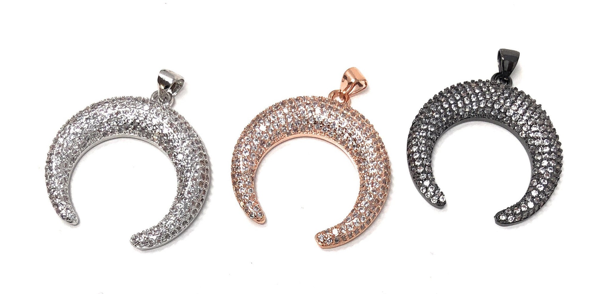 This Beautiful CZ Micro Double Horn/ Moon Crescent Pendant is a great purchase for making Necklace and can give any chain an exquisite yet trendy look.