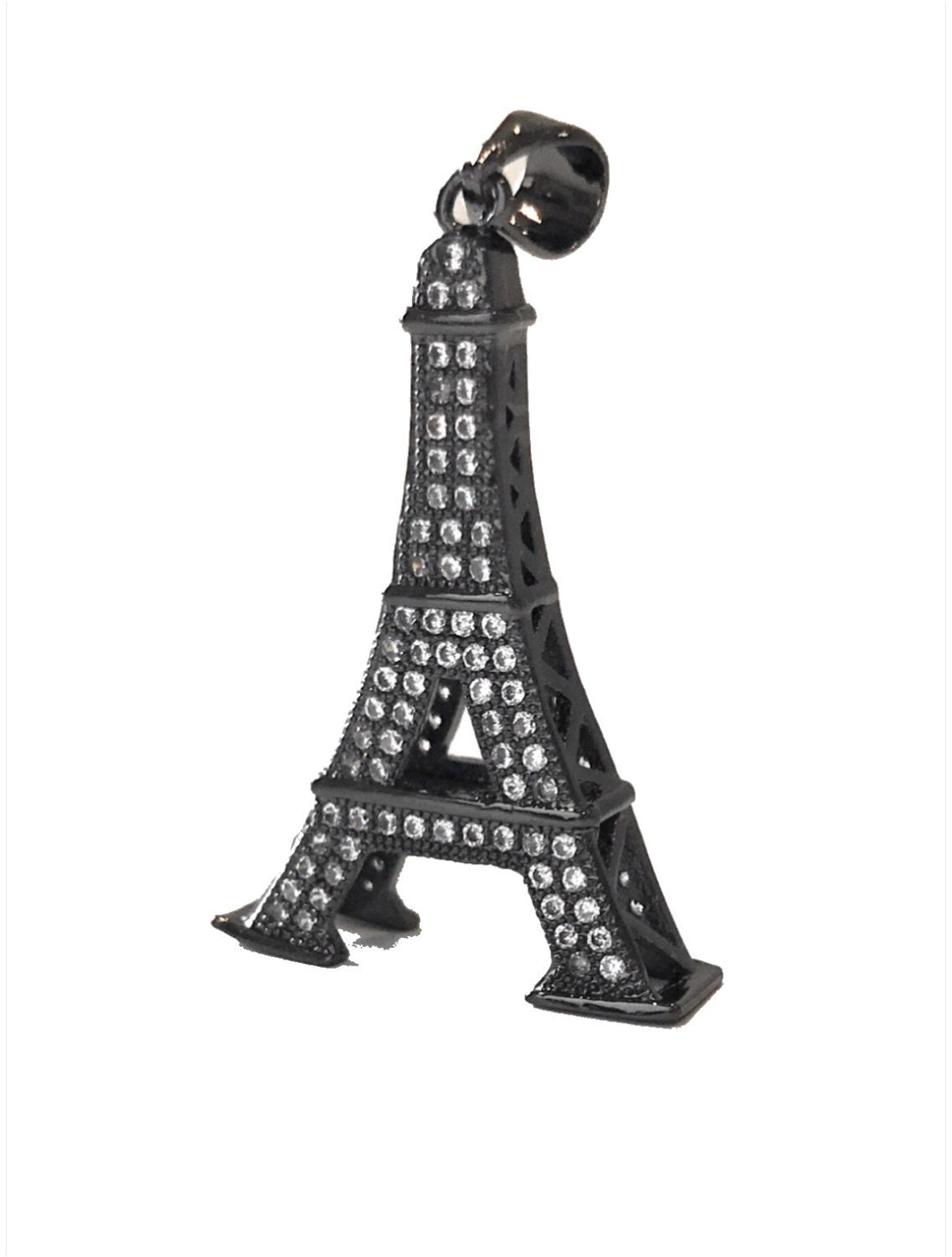 This Beautiful Gun Meta/ Platinum Plated Micro Pave CZ Eiffel Tower Double Sided Large Size Pendant is an excellent choice for any Jewelry Making Project.