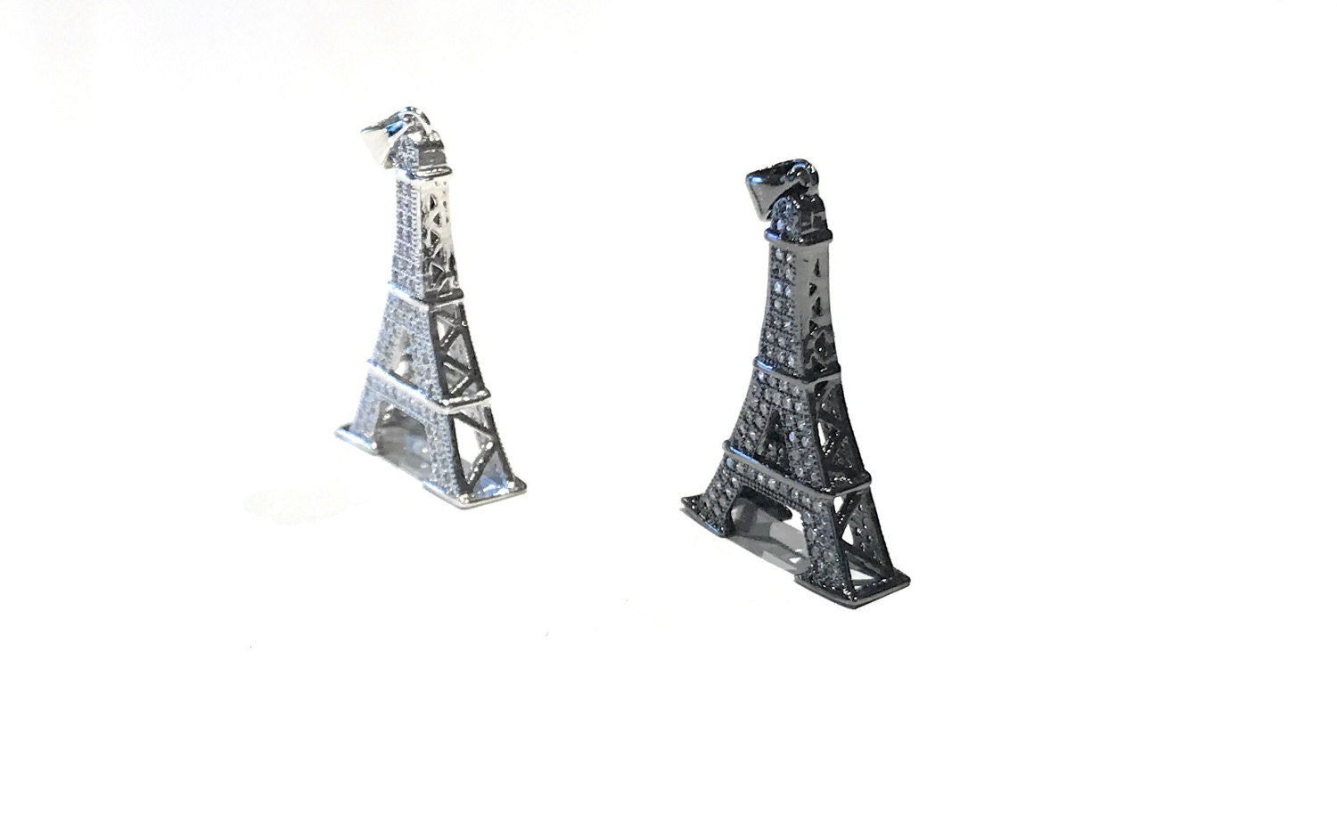 Gun Metal / Platinum Plated Eiffel Tower Micro Pave Cubic Zirconia Pendant for Jewelry Making .