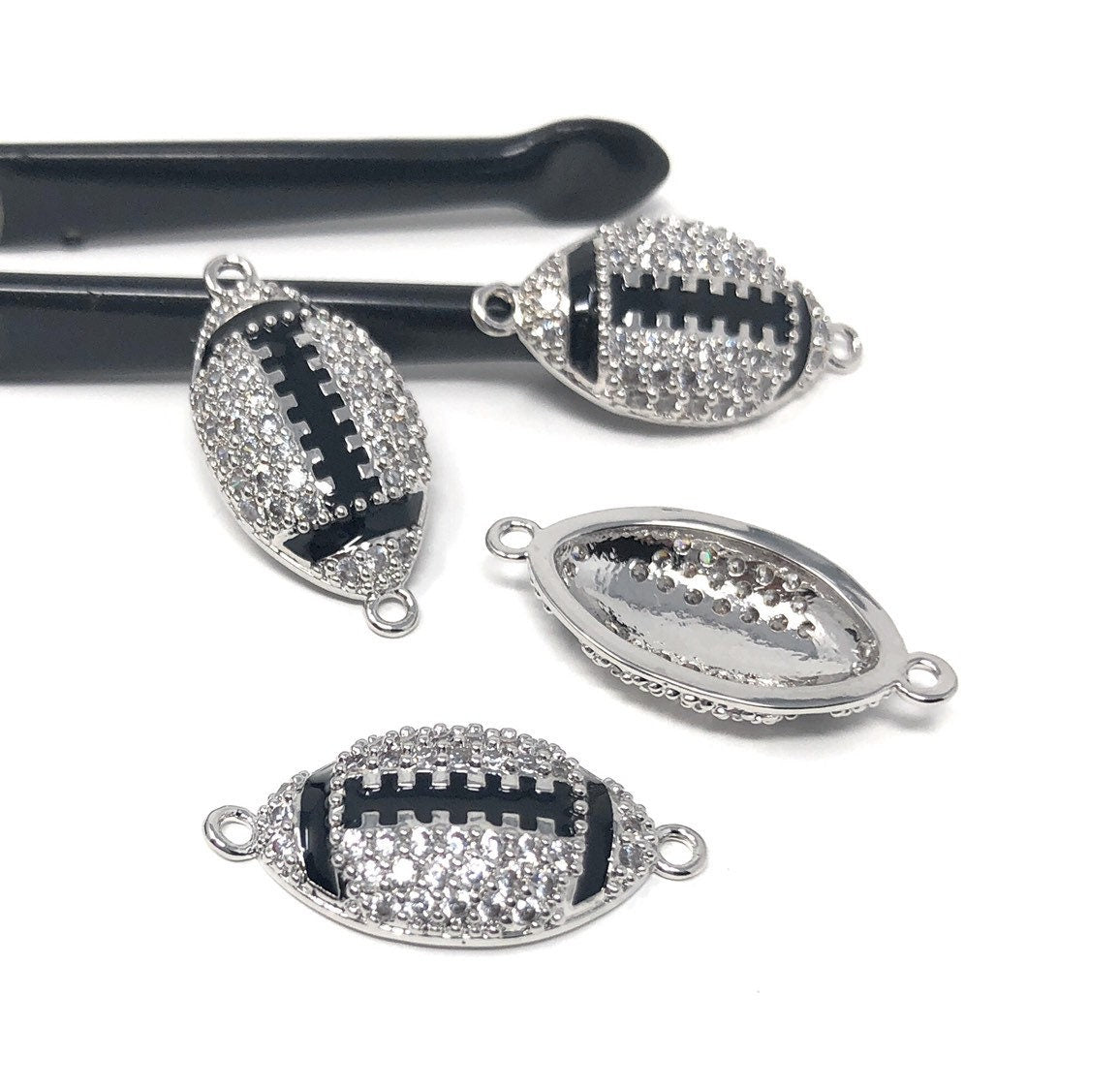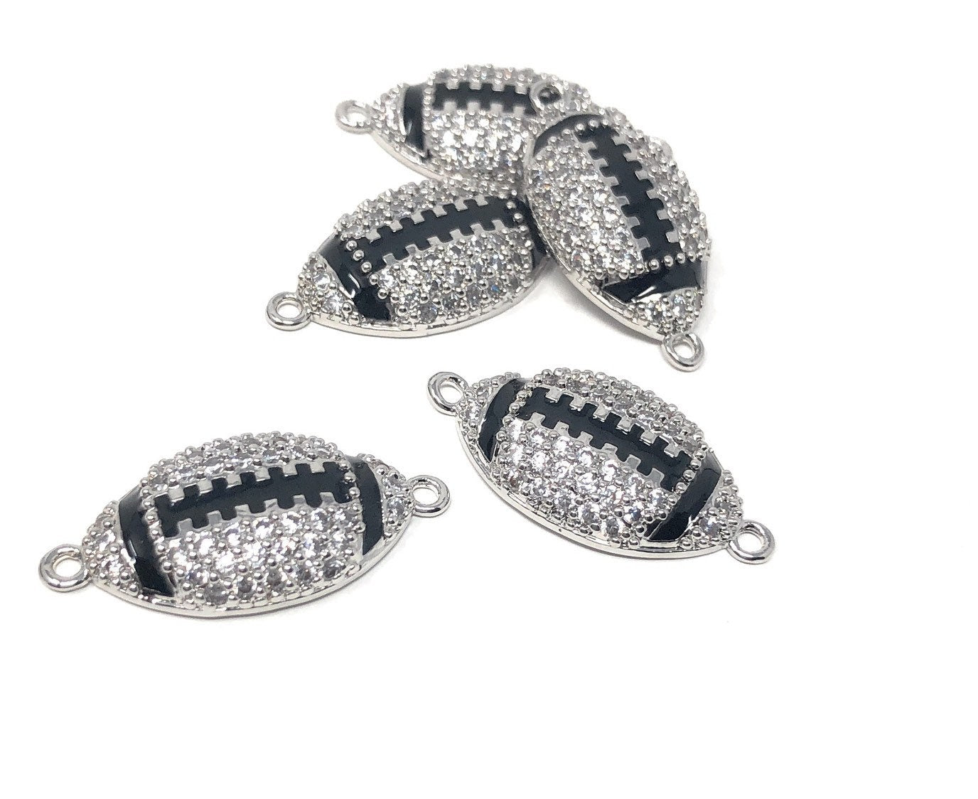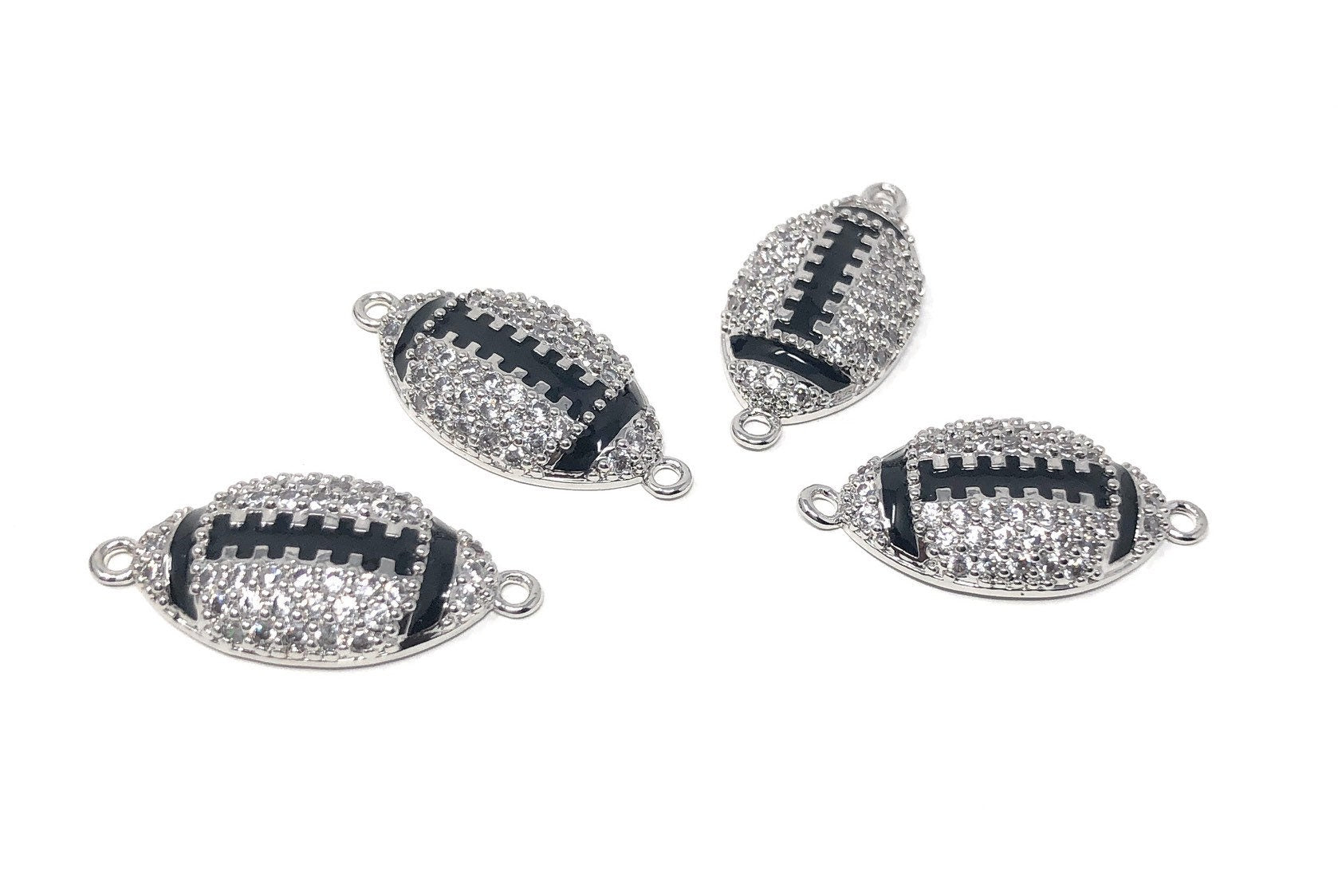 CZ Micro Pave Rugby Enamel Connector, Pave Findings, Pave Connectors, Jewelry Findings, Jewelry Supplies for DIY Jewelry Making, 1 Pc