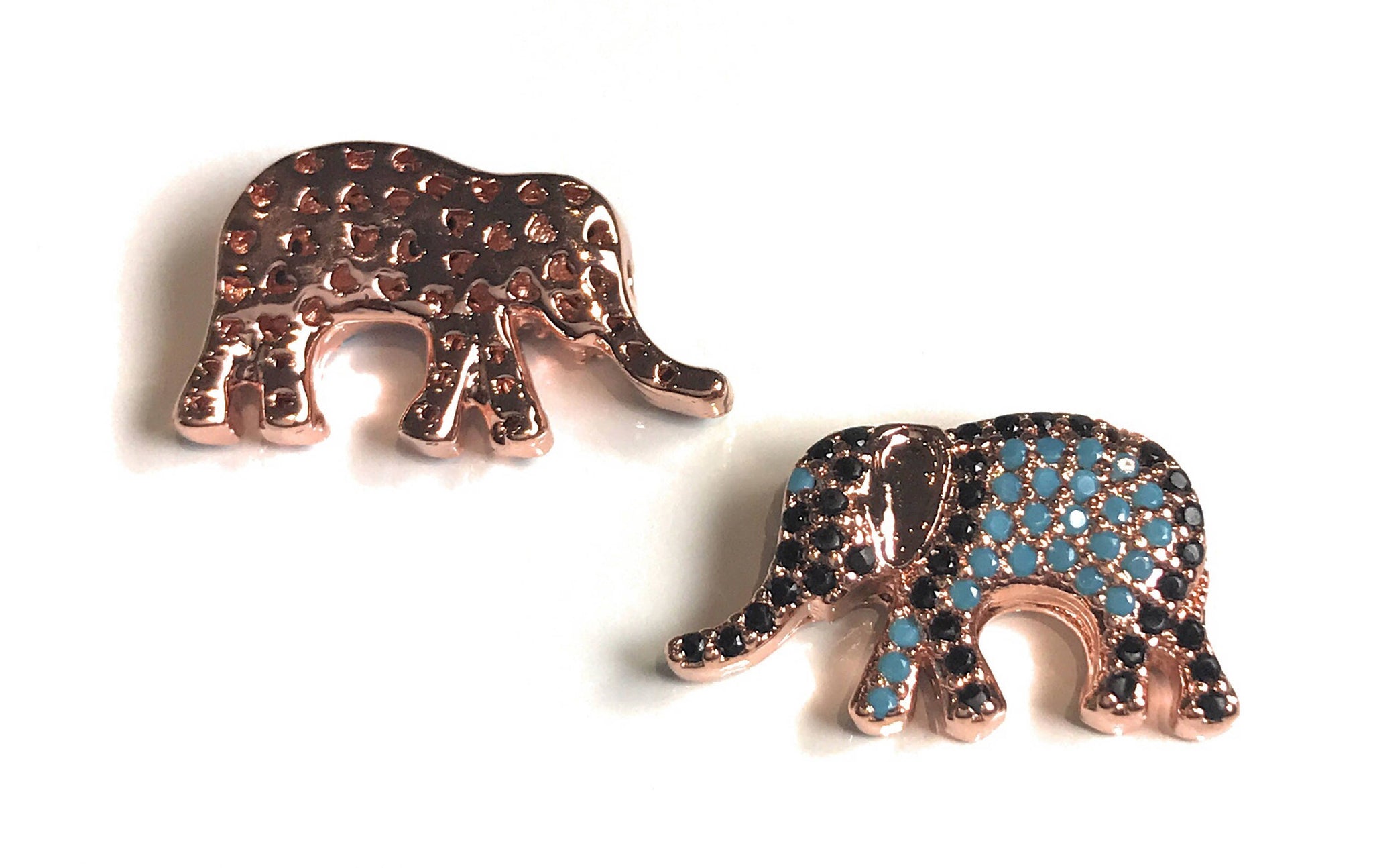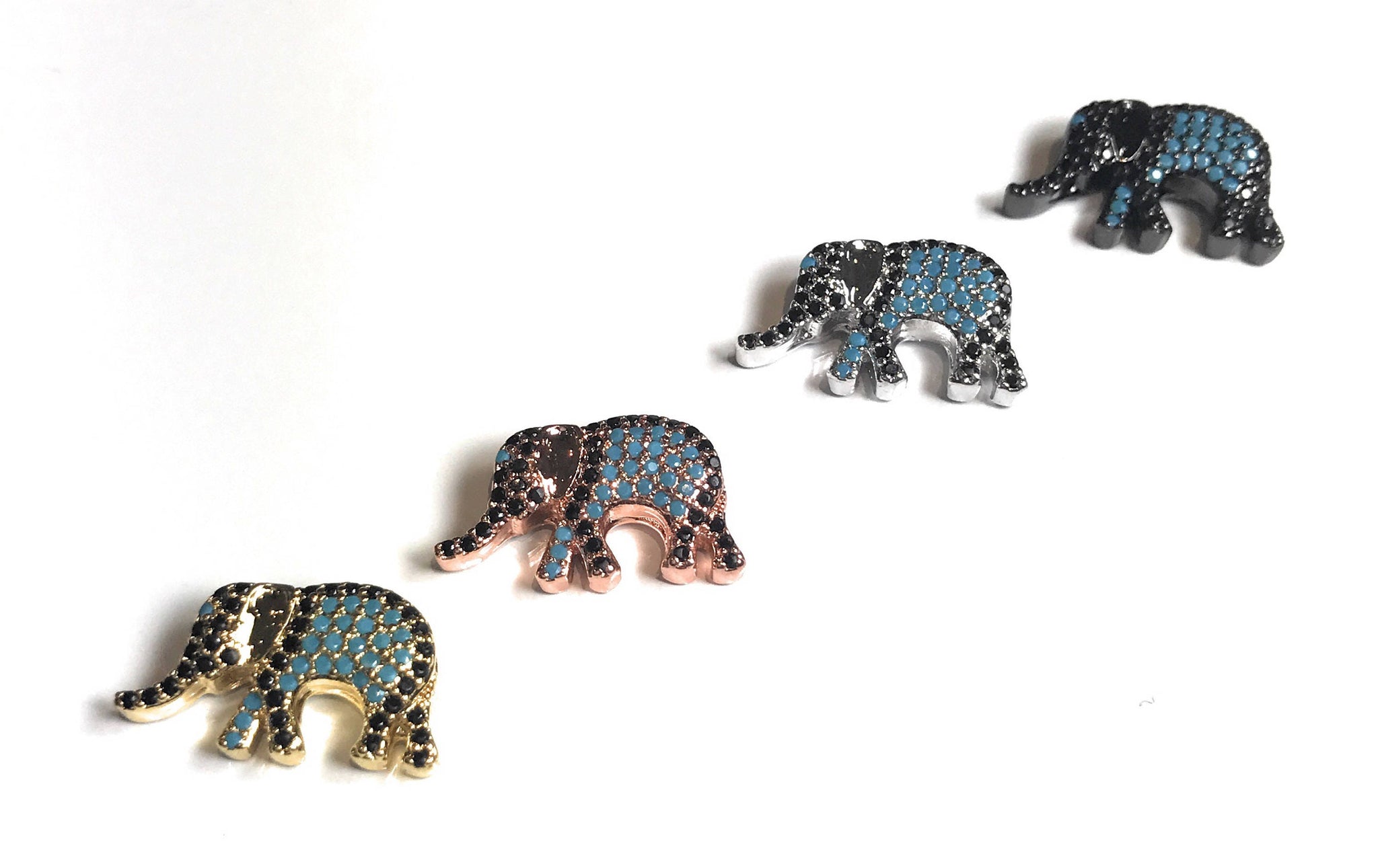 AAA Grade Micro Pave Elephant Beads with Turquoise CZ and Black CZ for Jewelry Making at Wholesale Price.