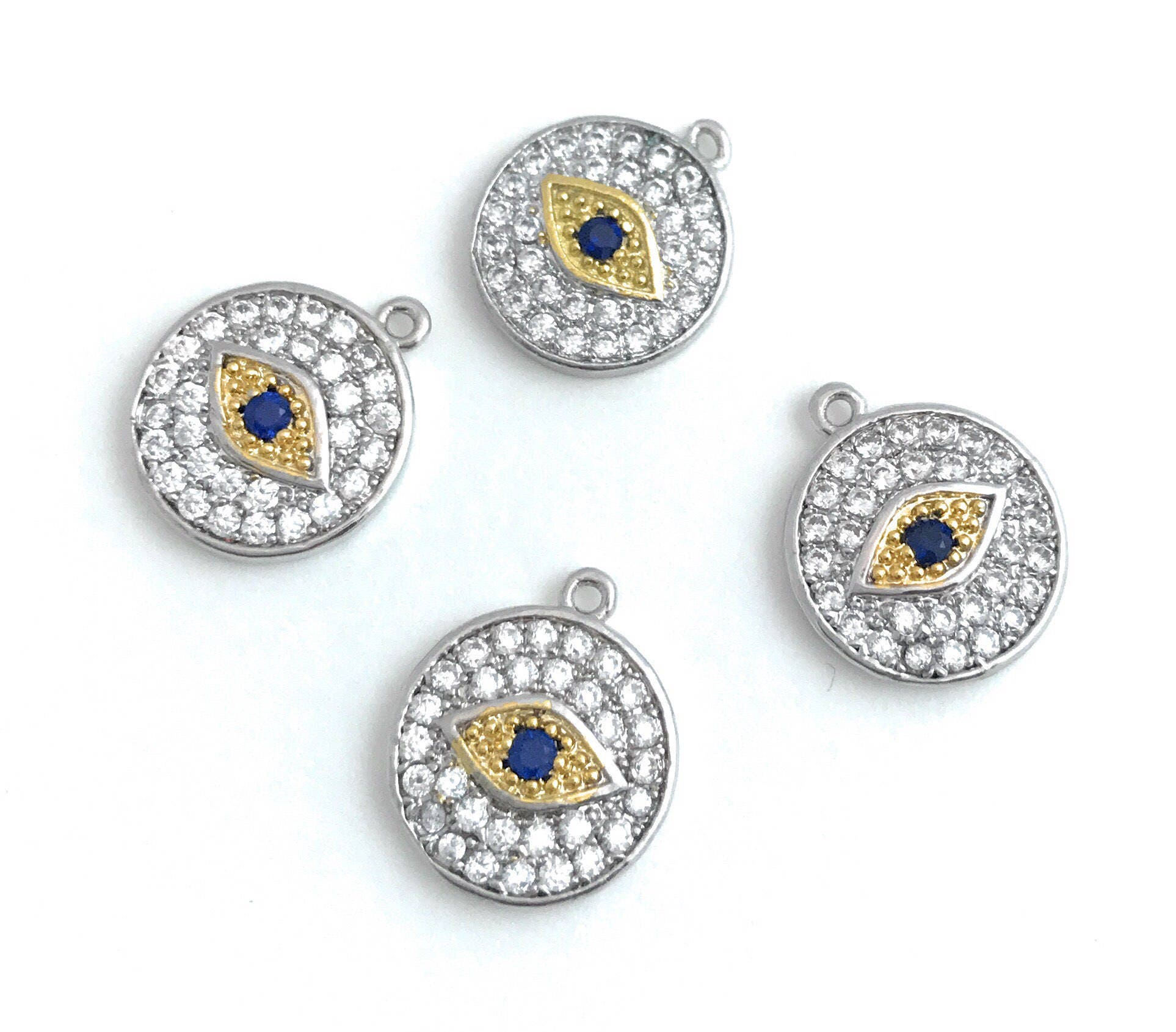 This Beautiful CZ Micro Pave Evil Eye Disc Charm is a great choice for making Charm Pendant, Charm Bracelet or for a gorgeous set of Dangle Earrings.