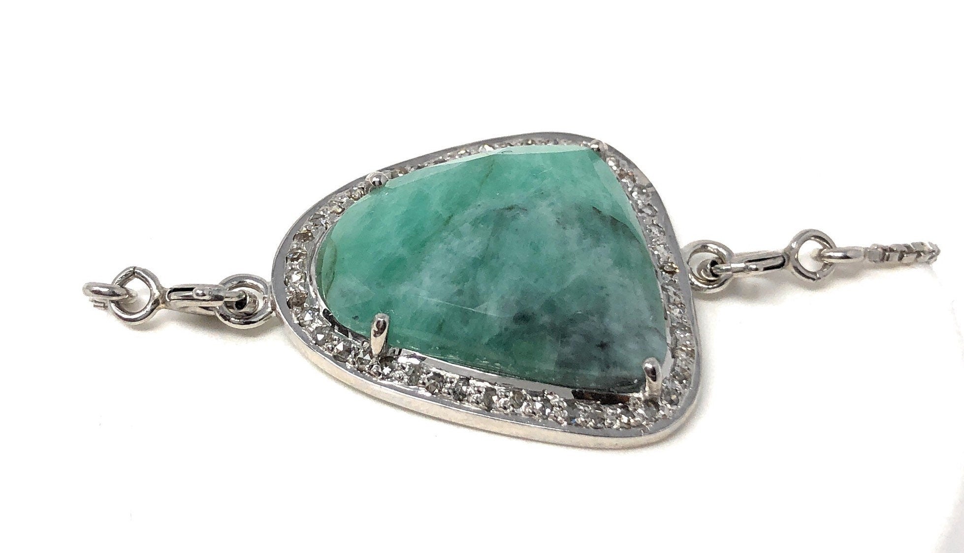 This beautiful Handmade Natural Emerald Gemstone Free Form Shape Rhodium Polished 925 Sterling Silver Pave Diamond Adjustable Bracelet is an excellent choice for any occasion and makes a great gift for the loved ones.