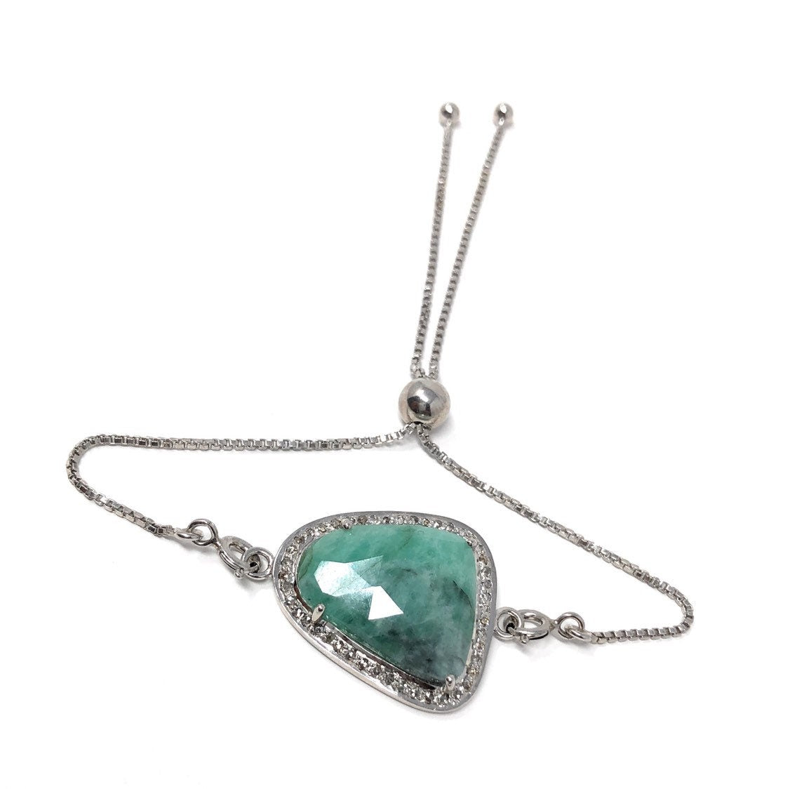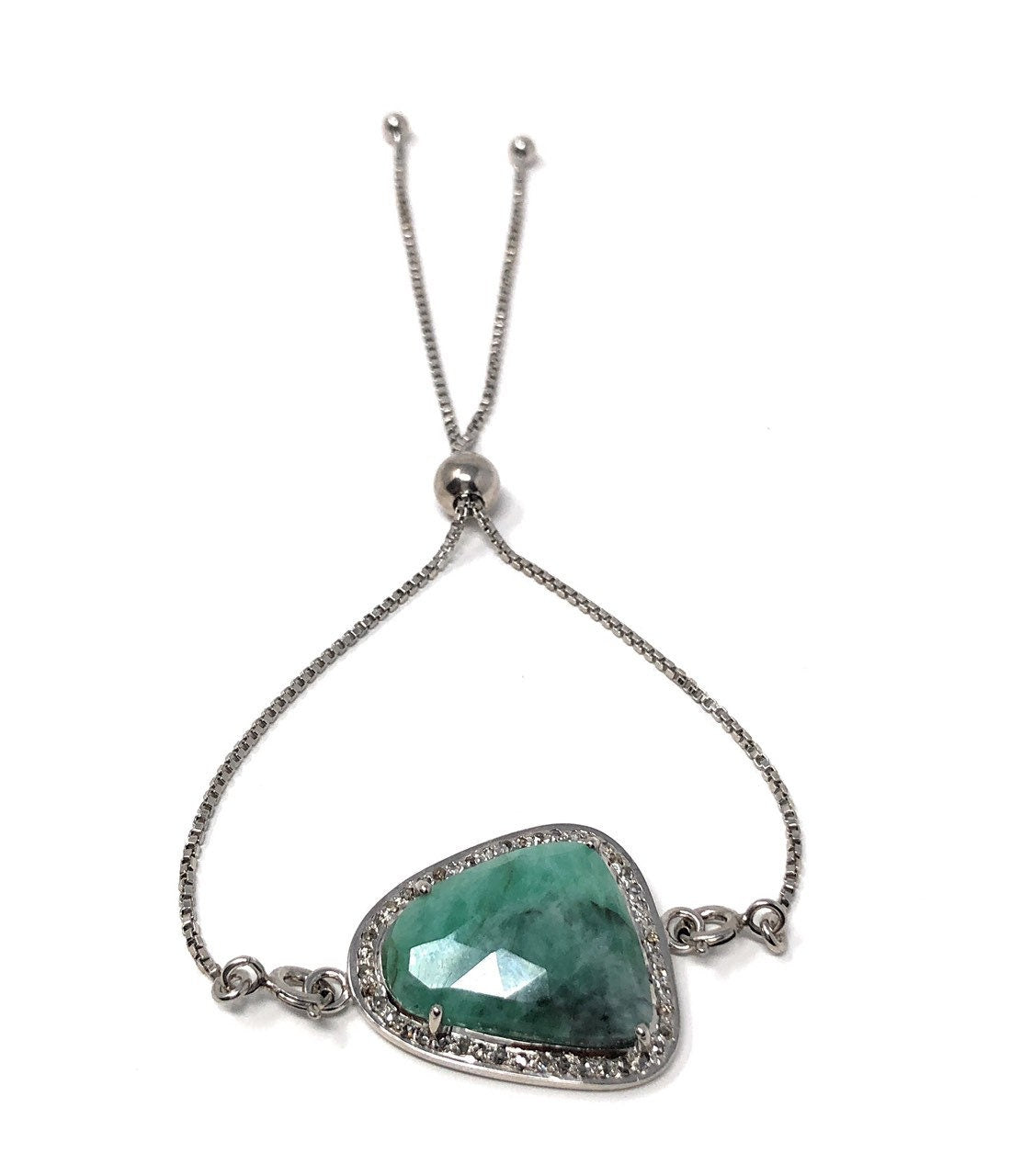 Sterling Silver Natural Gemstone Emerald Pave Diamond Adjustable Bracelet at Wholesale Price