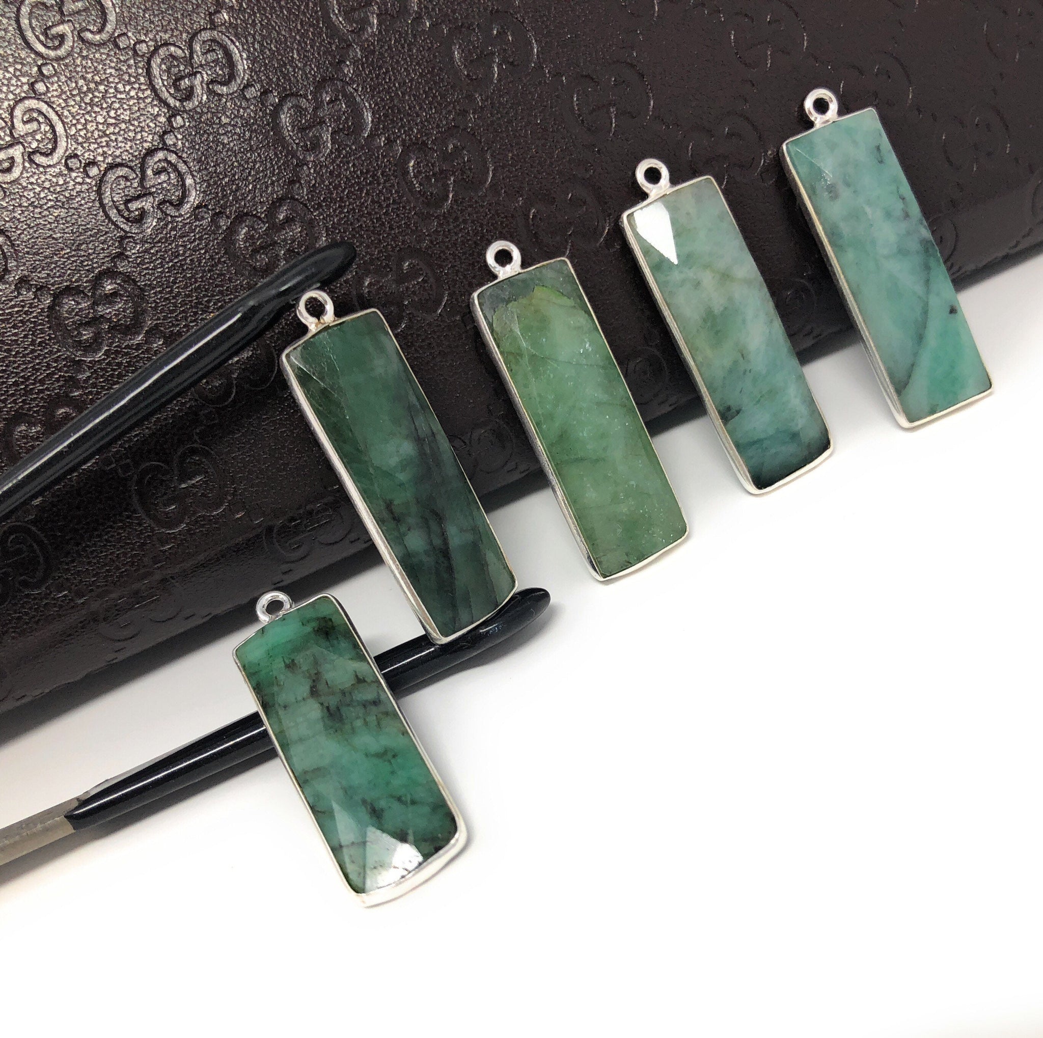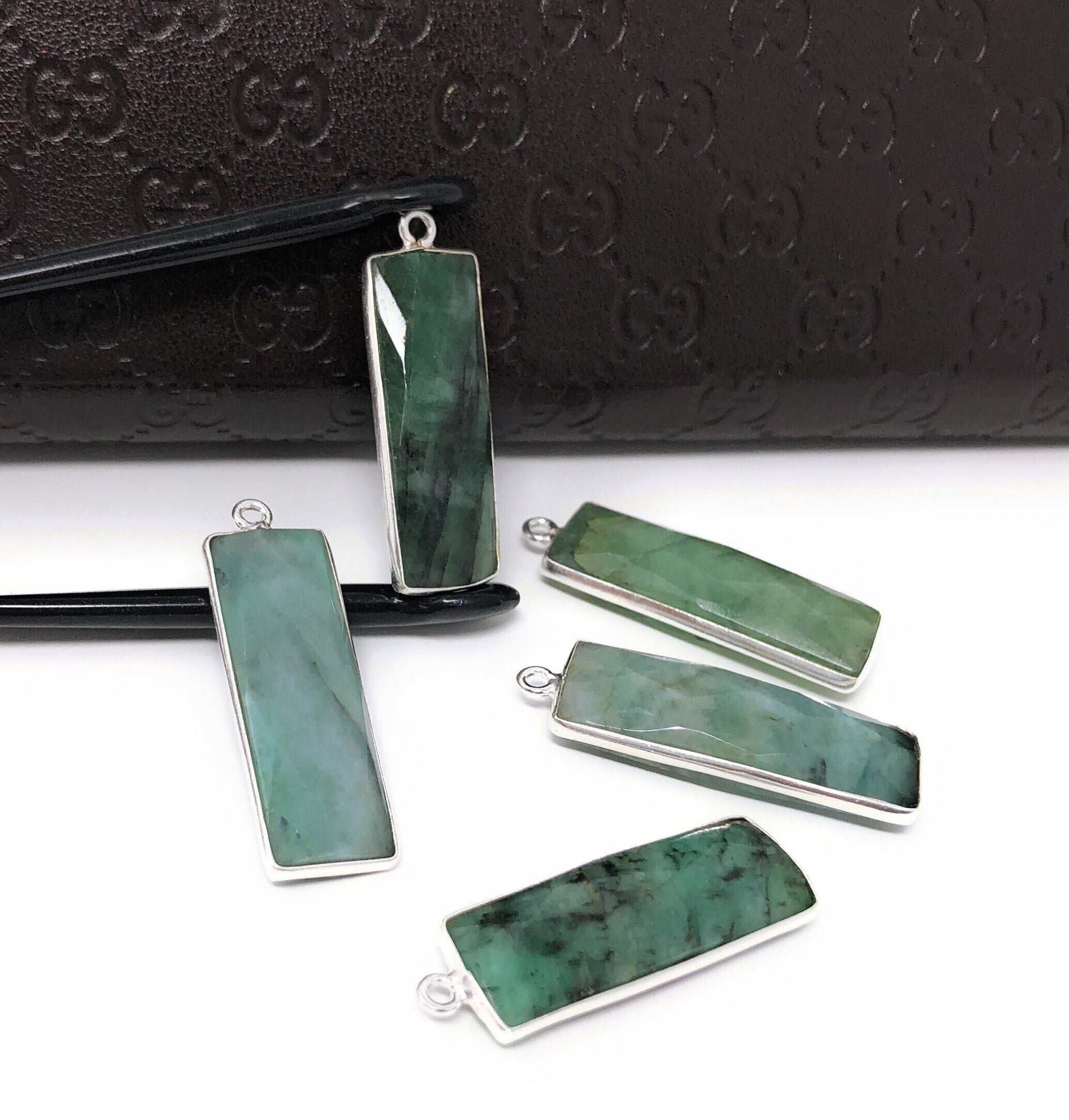 Emerald Charms, Gemstone Charms, Sterling Silver Charms, Jewelry Making, Jewelry Supplies, Add a Charm, DIY Earrings, 31.75X10.5mm, 1 Pc