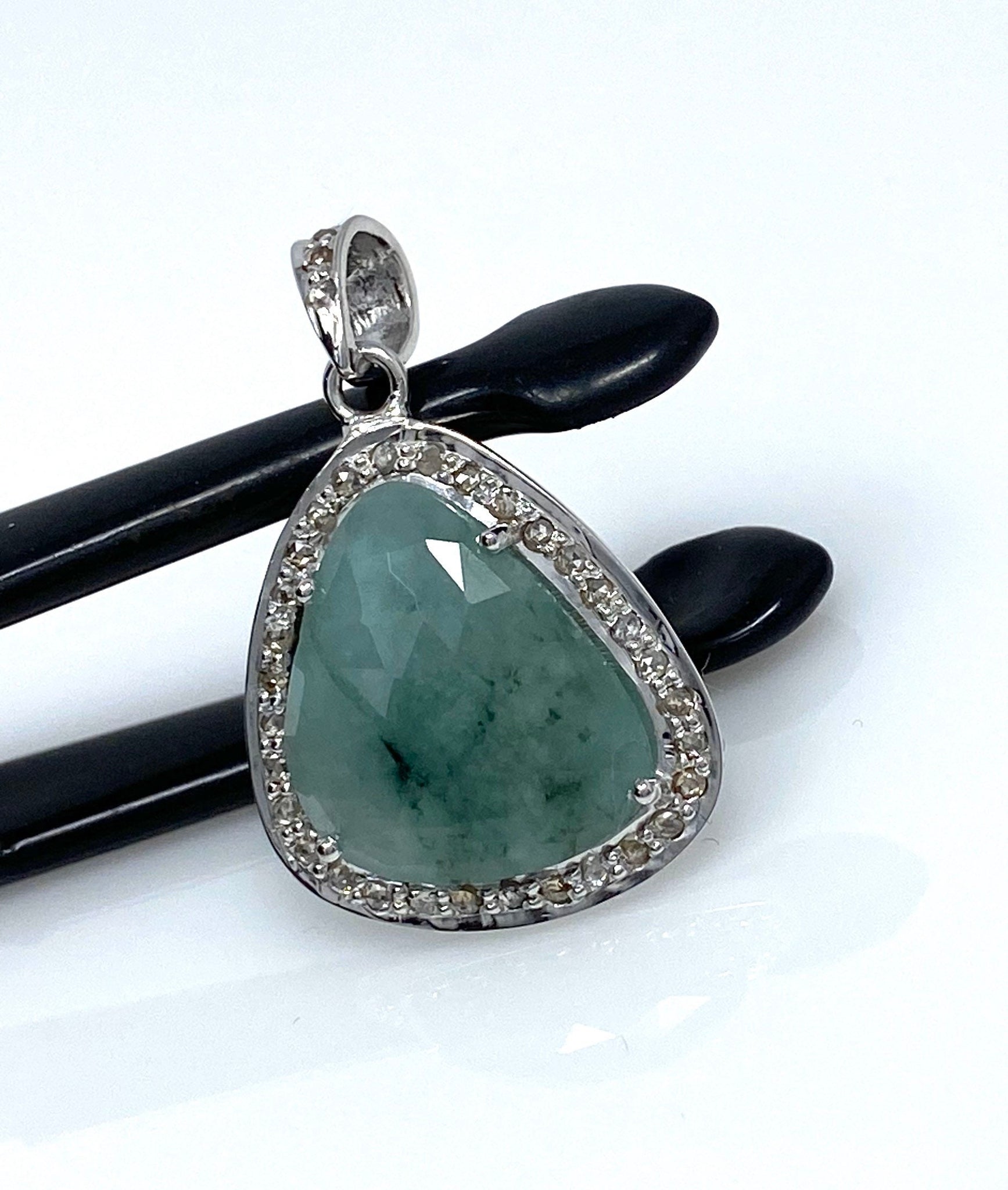 Natural Genuine Rose Cut Sakota Emerald Sterling Silver Diamond Pendant at Wholesale Price.