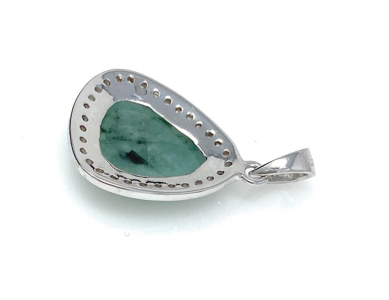 Emerald Diamond Pendant, Natural Emerald Sterling Silver Pendant, May Birthstone Pendant, Pave Diamond Pendant, 1.25” x 0.80”