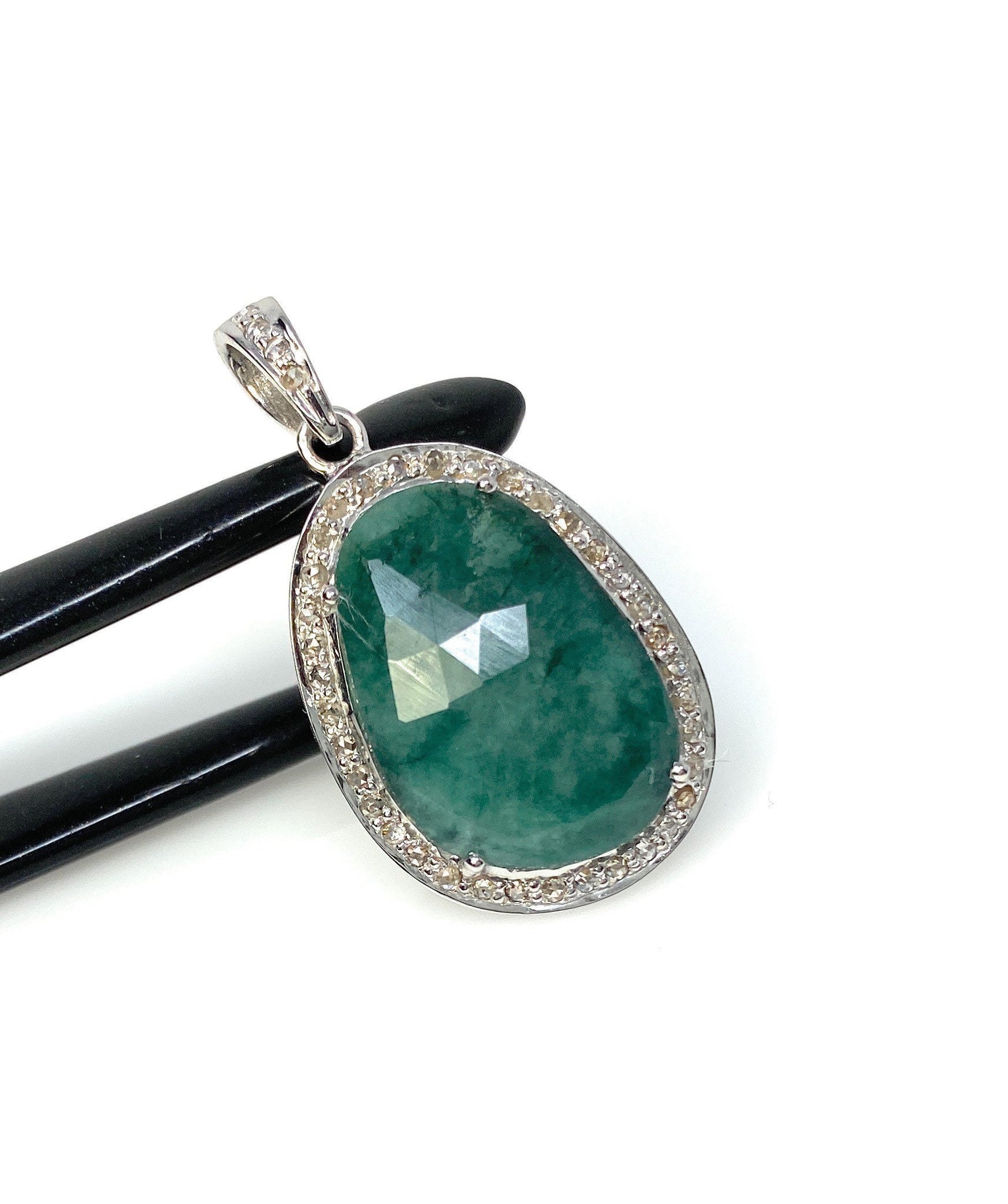 Natural Genuine Rose Cut Sakota Emerald Sterling Silver Diamond Pendant at Wholesale Price.