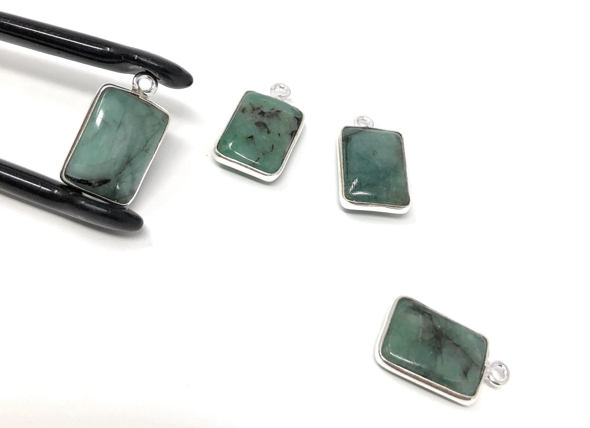 Sterling Silver Gemstone Emerald Charms Bezel Set Add a Charm Jewelry Supplies for Jewelry Making at Wholesale Price.