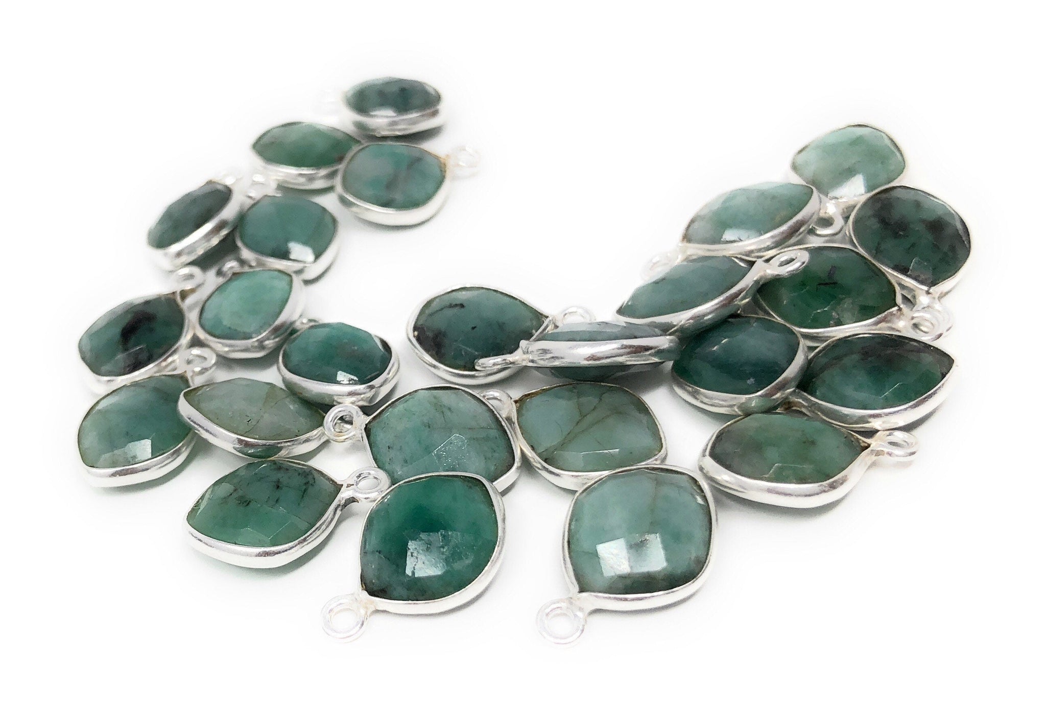 Emerald Gemstone Charms, Sterling Silver Charms for DIY Jewelry Making, Bulk Jewelry Supplies, May Birthstone Charms, 5 Pcs Lot 15.5X10mm