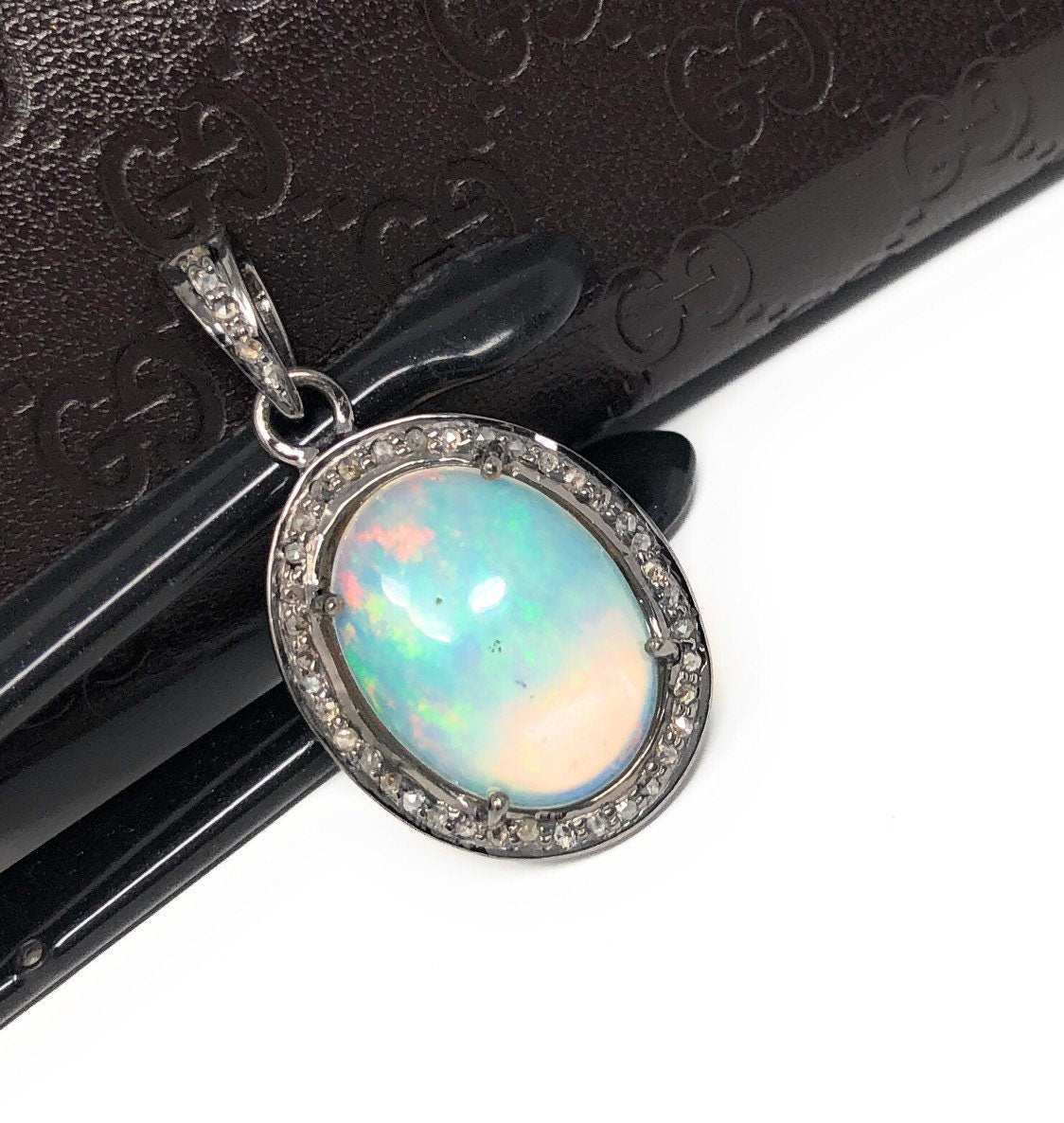 This exclusive beautiful Handmade AAA+ Grade Genuine Natural Ethiopian Opal Gemstone Oval Shape Oxidized 925 Sterling Silver Pave Diamond Bezel Setting Pendant is an excellent choice for any occasion and makes a great gift for the loved ones.