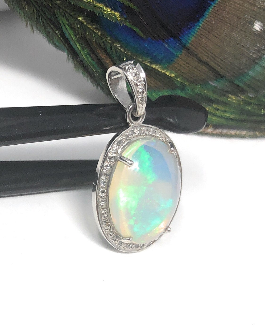 Ethiopian Opal Pendant, Gemstone Pendant, Diamond Pendant, Sterling Silver Opal Pendant, Pave Diamond Jewelry, Gifts for Her