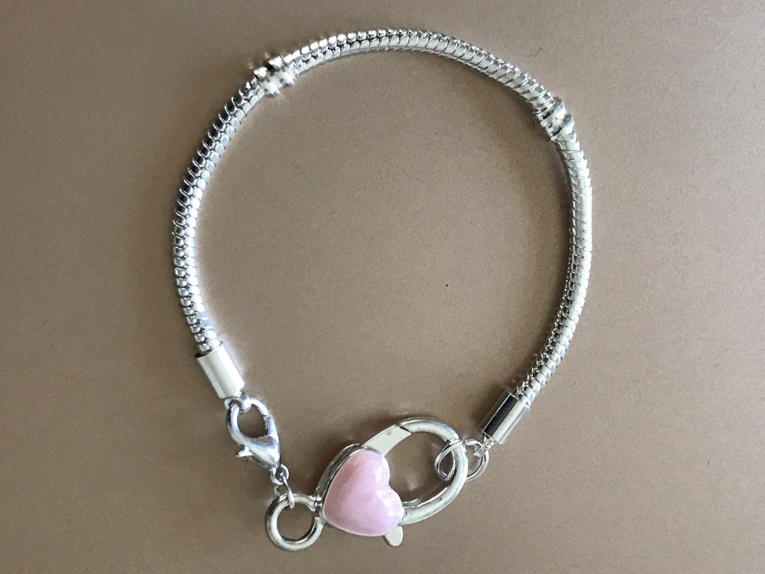 European Bracelet, Snake Chain Bracelet, Heart Bracelet, Pink Heart Bracelet, Diy Bracelet, Bracelet Findings, Bracelet Making, Heart Clasp