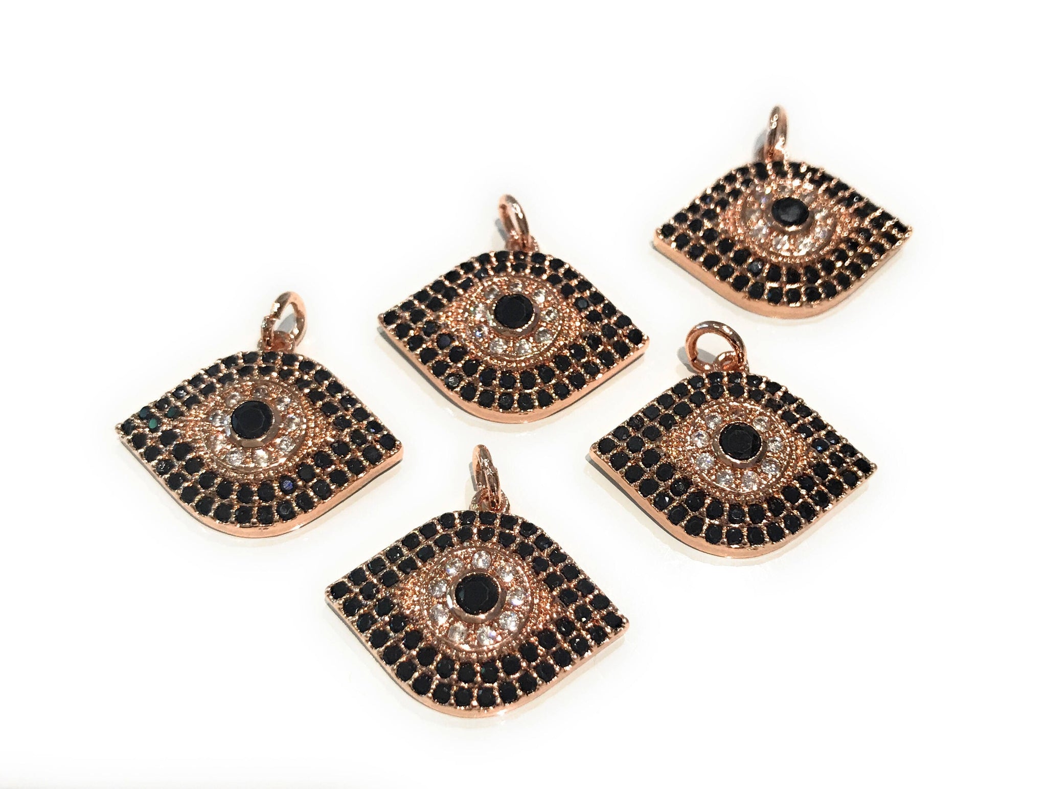 CZ Micro Pave Rose Gold Plated Evil Eye Protection Charm for Jewelry Making at Wholesale Price.