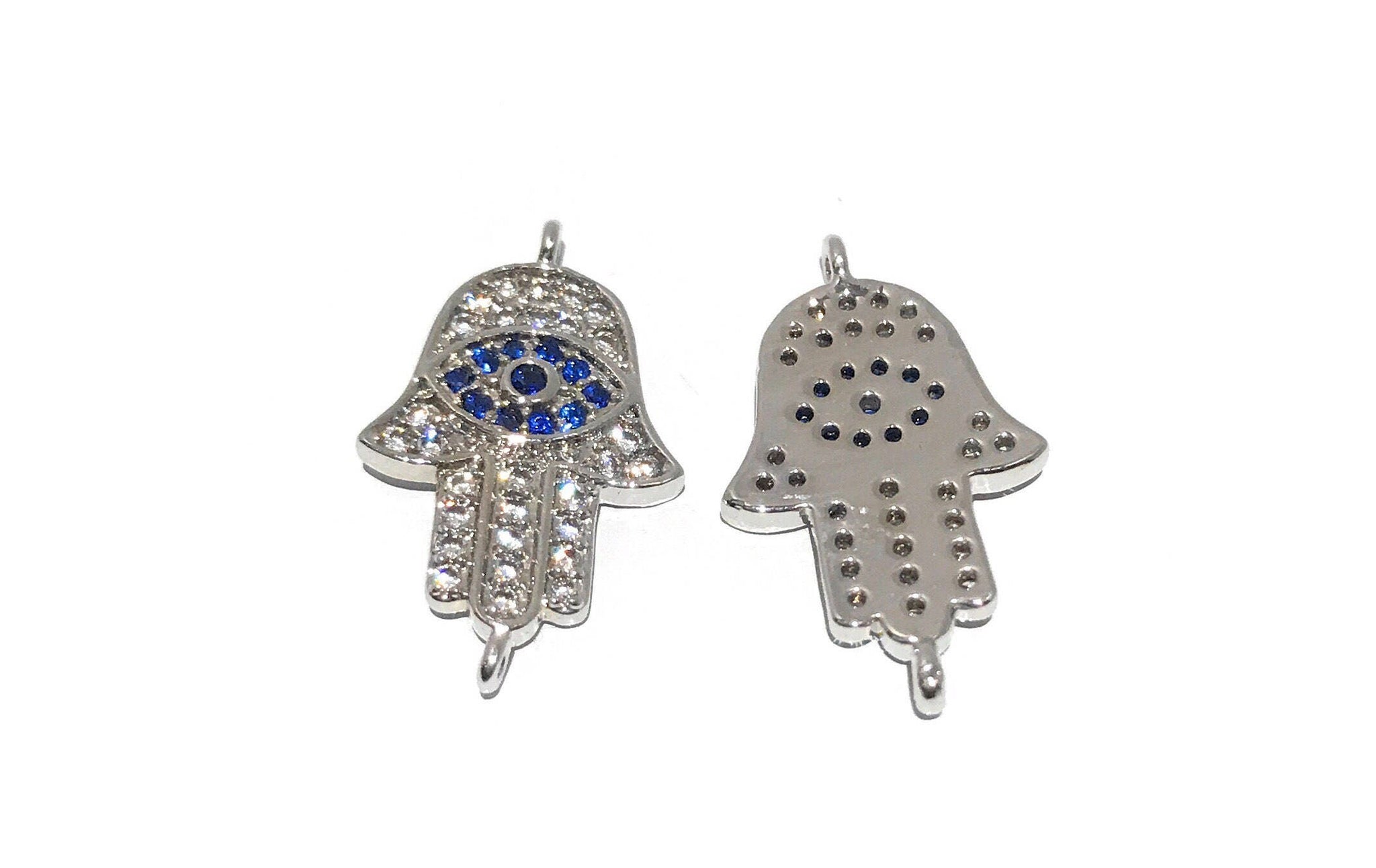 Micro Pave Evil Eye / Hamsa Hand Link Connector for Jewelry Making at Wholesale Price.
