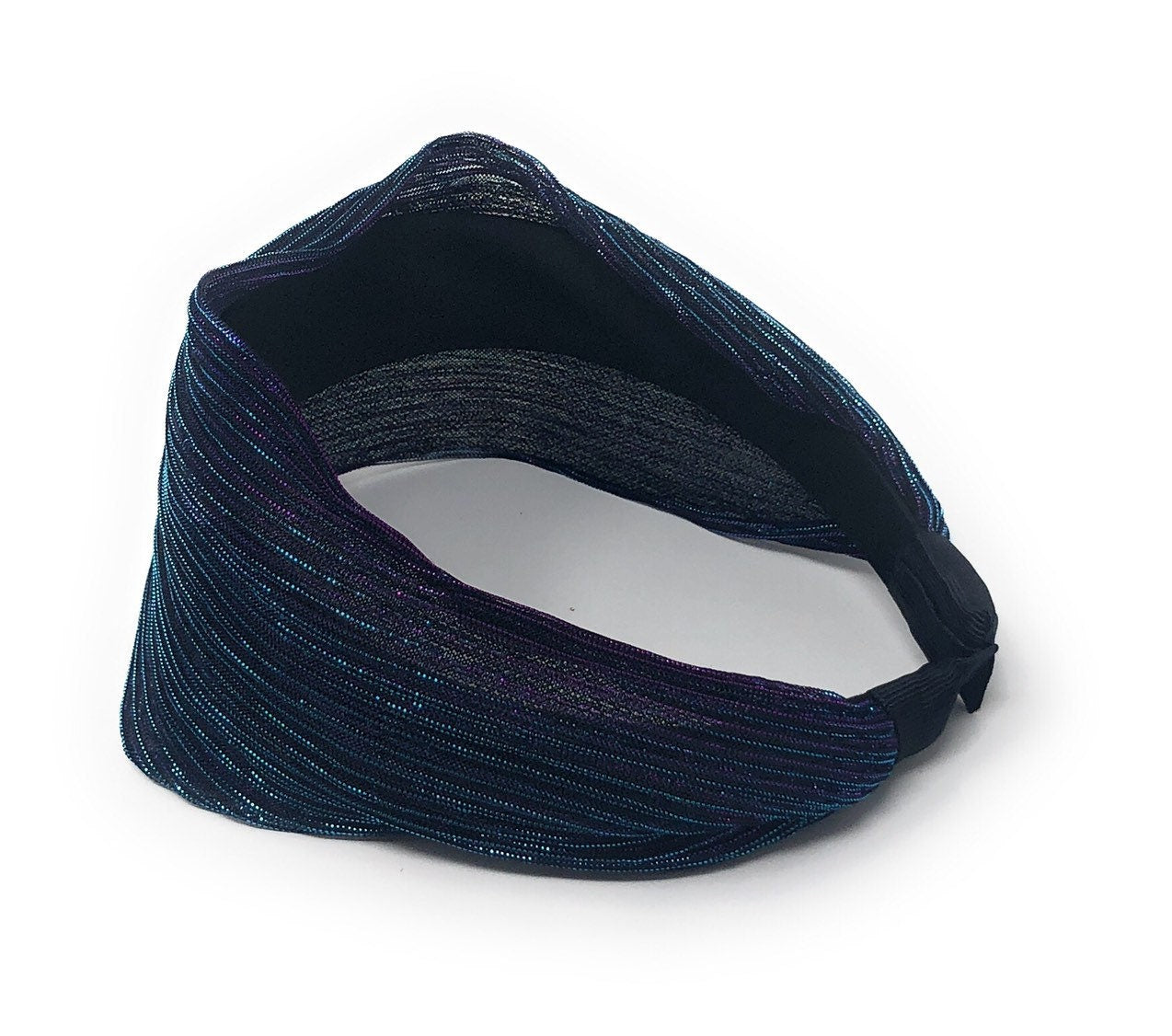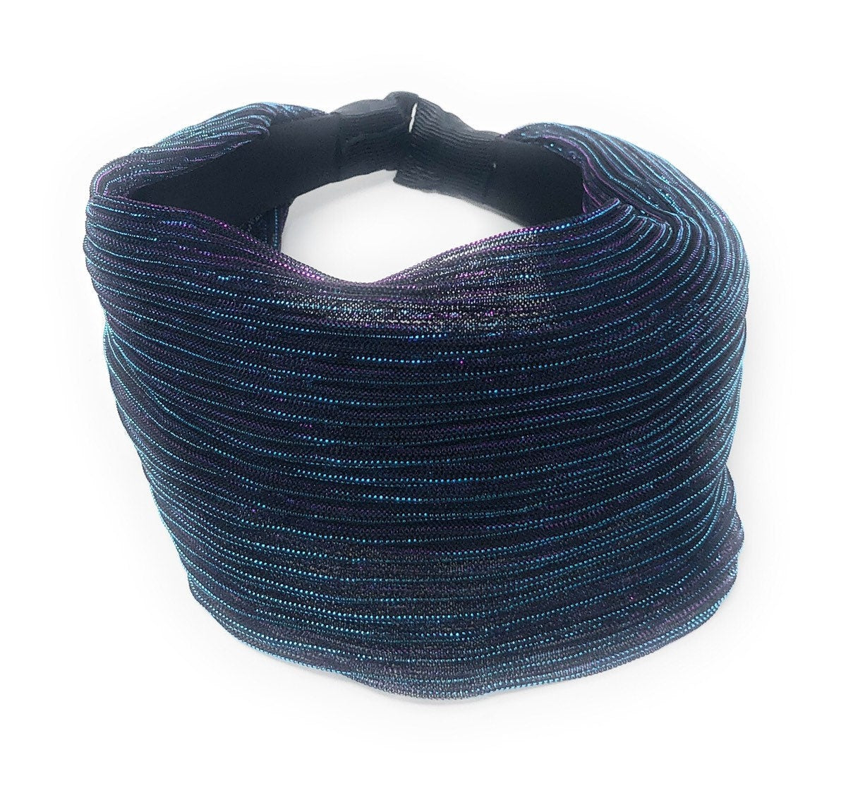 This Beautiful Extra wide Headband made with Metallic Fabric which has Blue and Purple Shiny Stripes In Retro Style adds glamour to any outfit and is very comfortable to wear for everyday use as well as on special Occasions.
