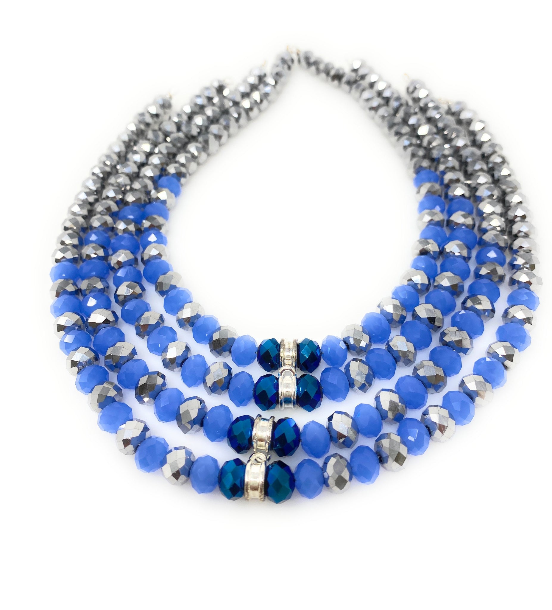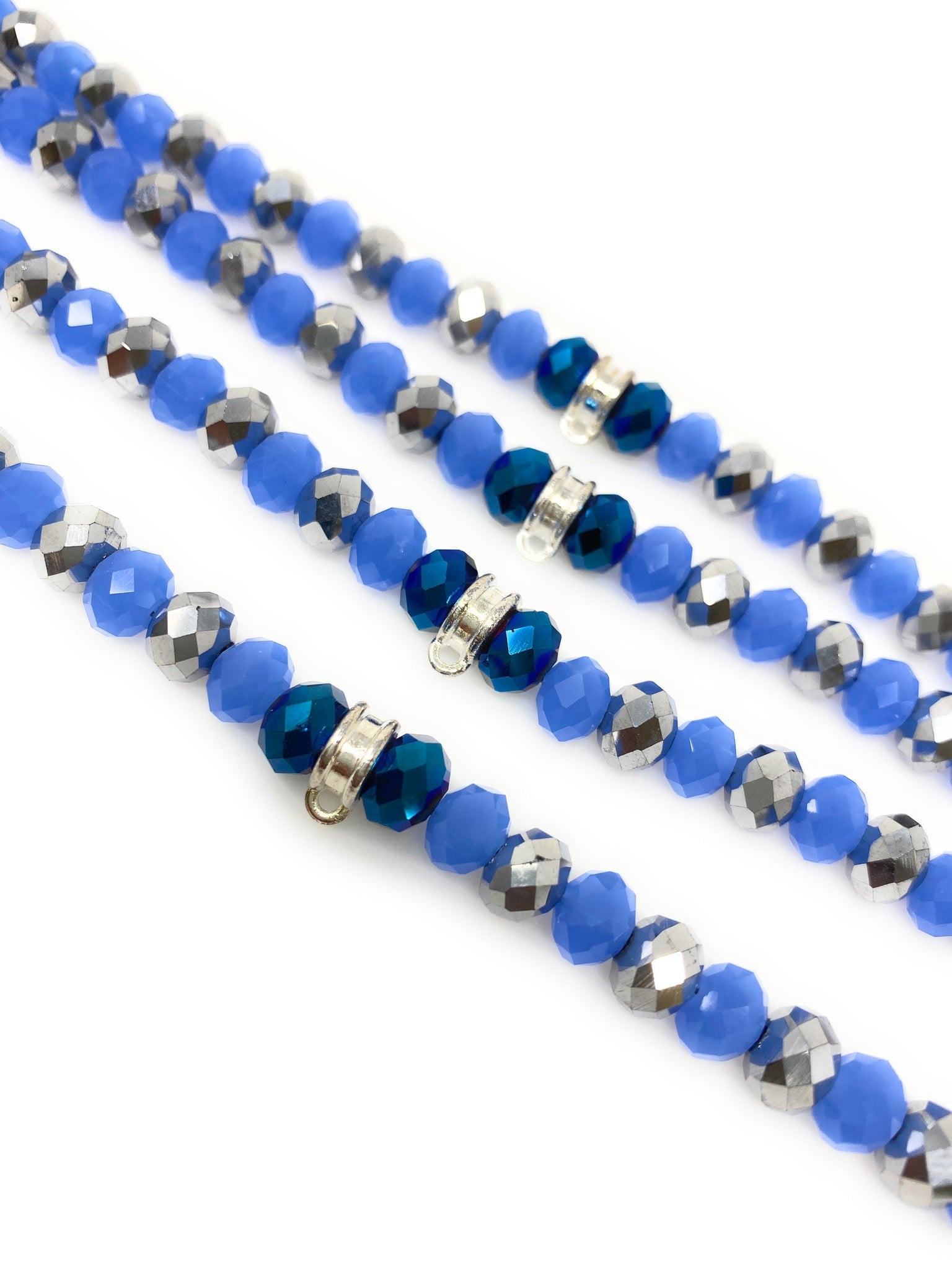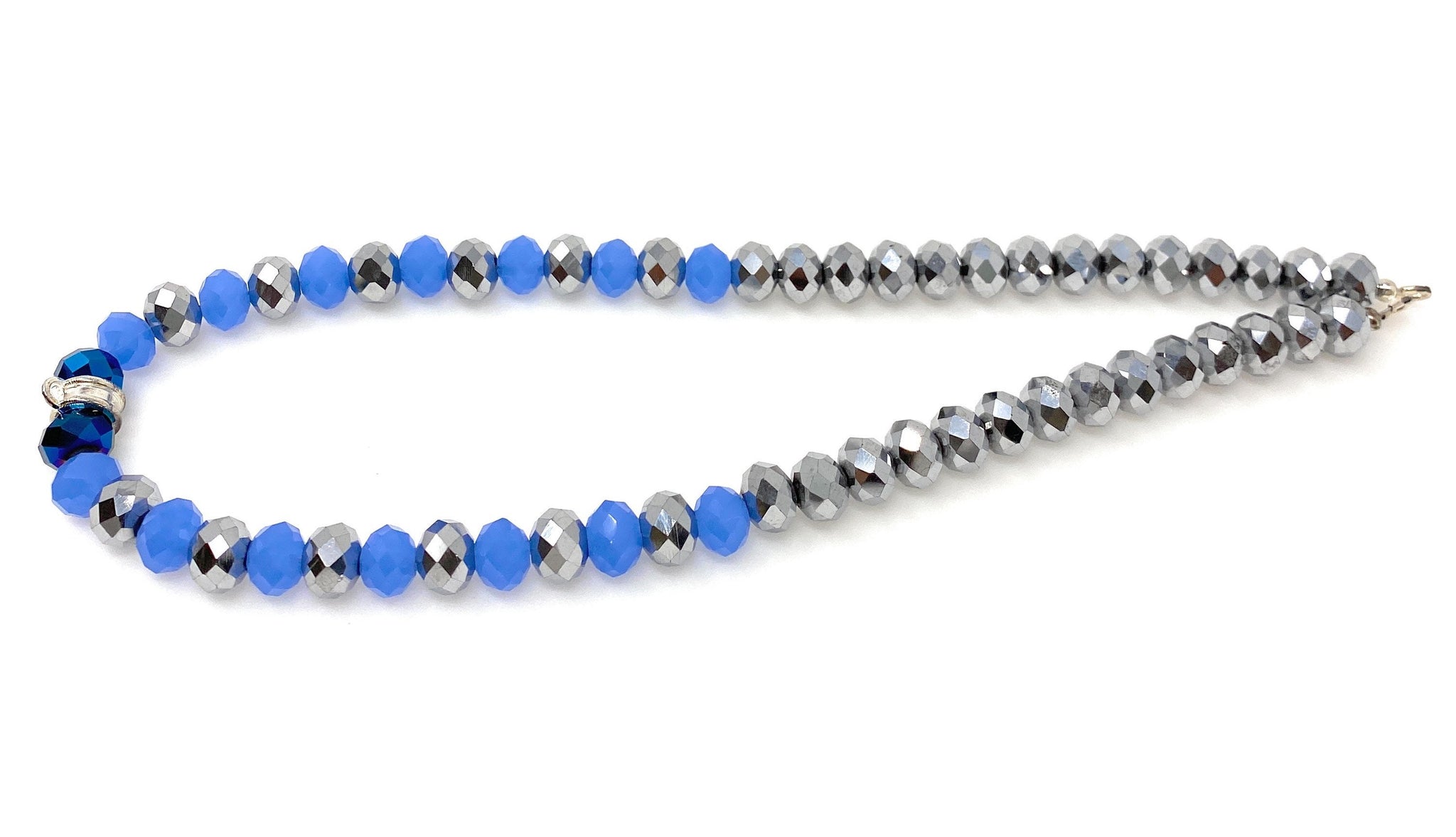 Faceted Glass Rondelle Beads, Opaque Blue and Metallic Silver Glass Beads, 8x6mm , 13.5” Strand