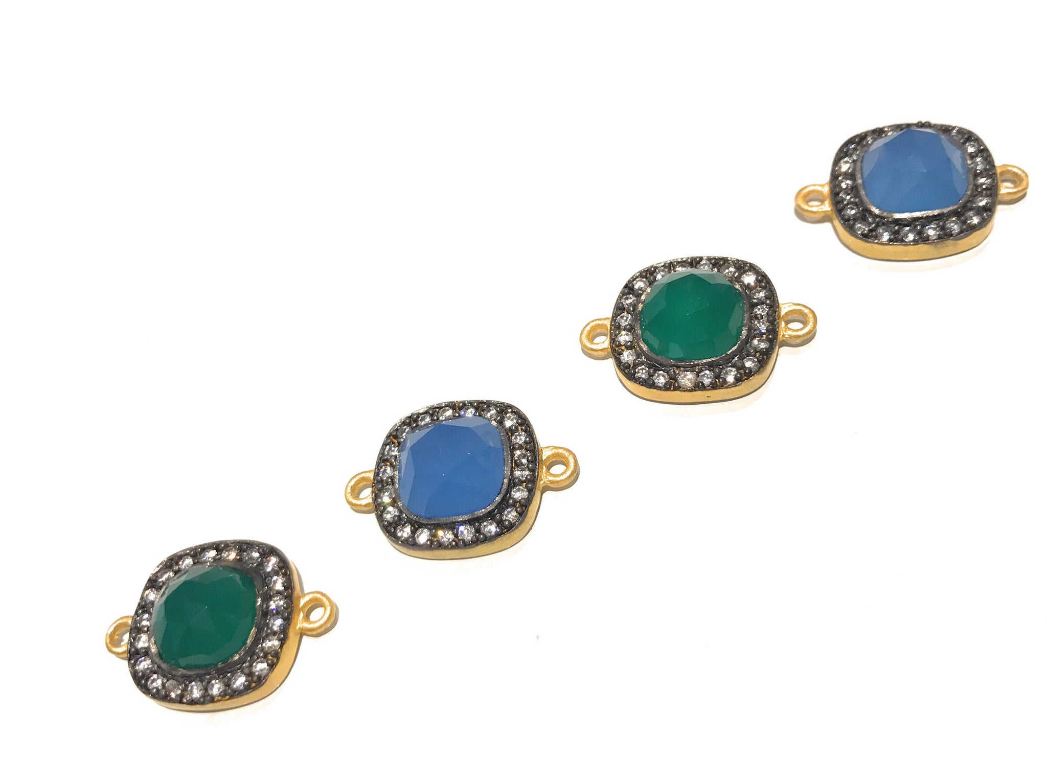 14K Gold Plated AAA Grade Rose Cut Gemstone Connector with White Zircon available in Blue Chalcedony and Green Onyx Gemstones at Wholesale Price.
