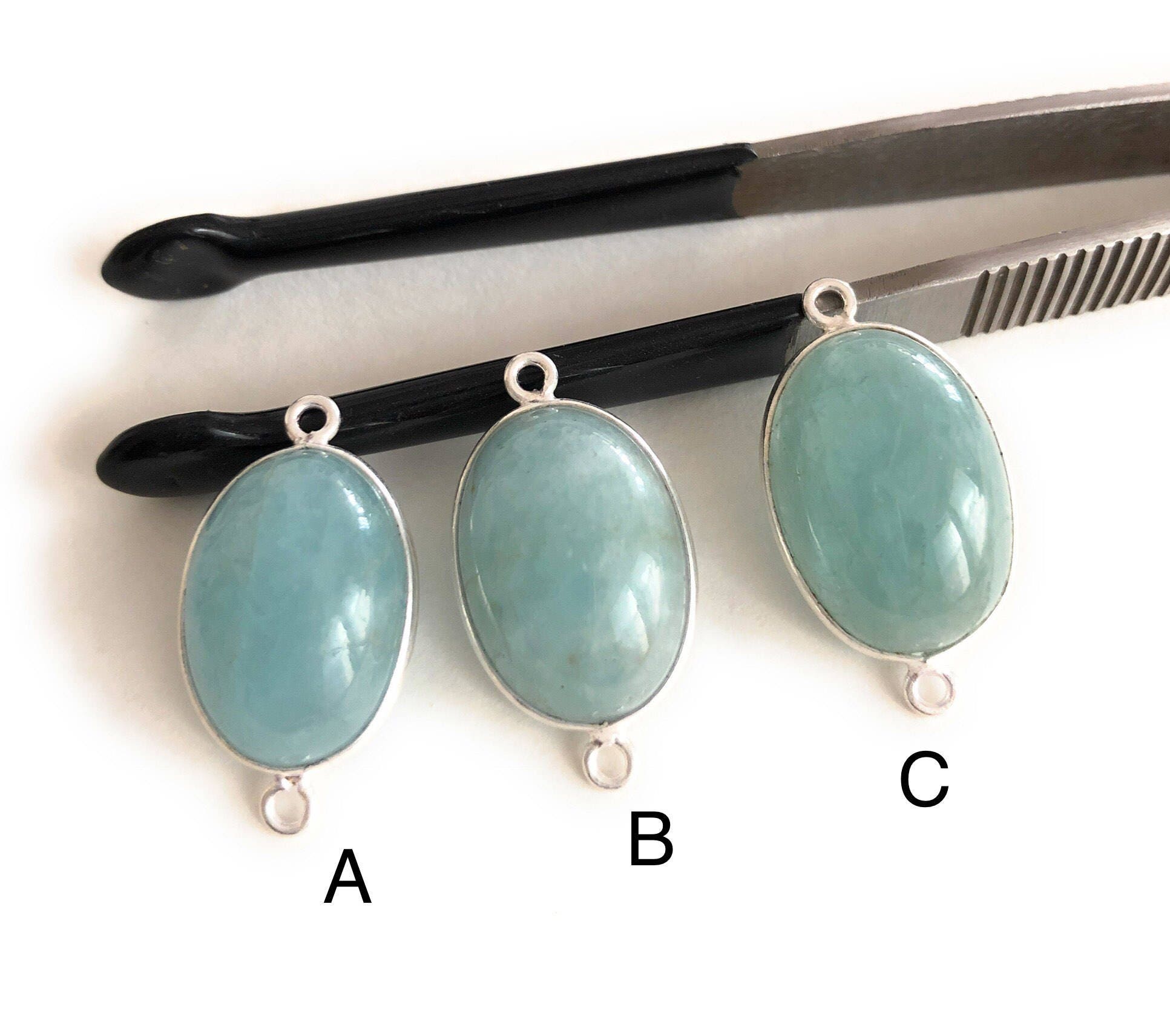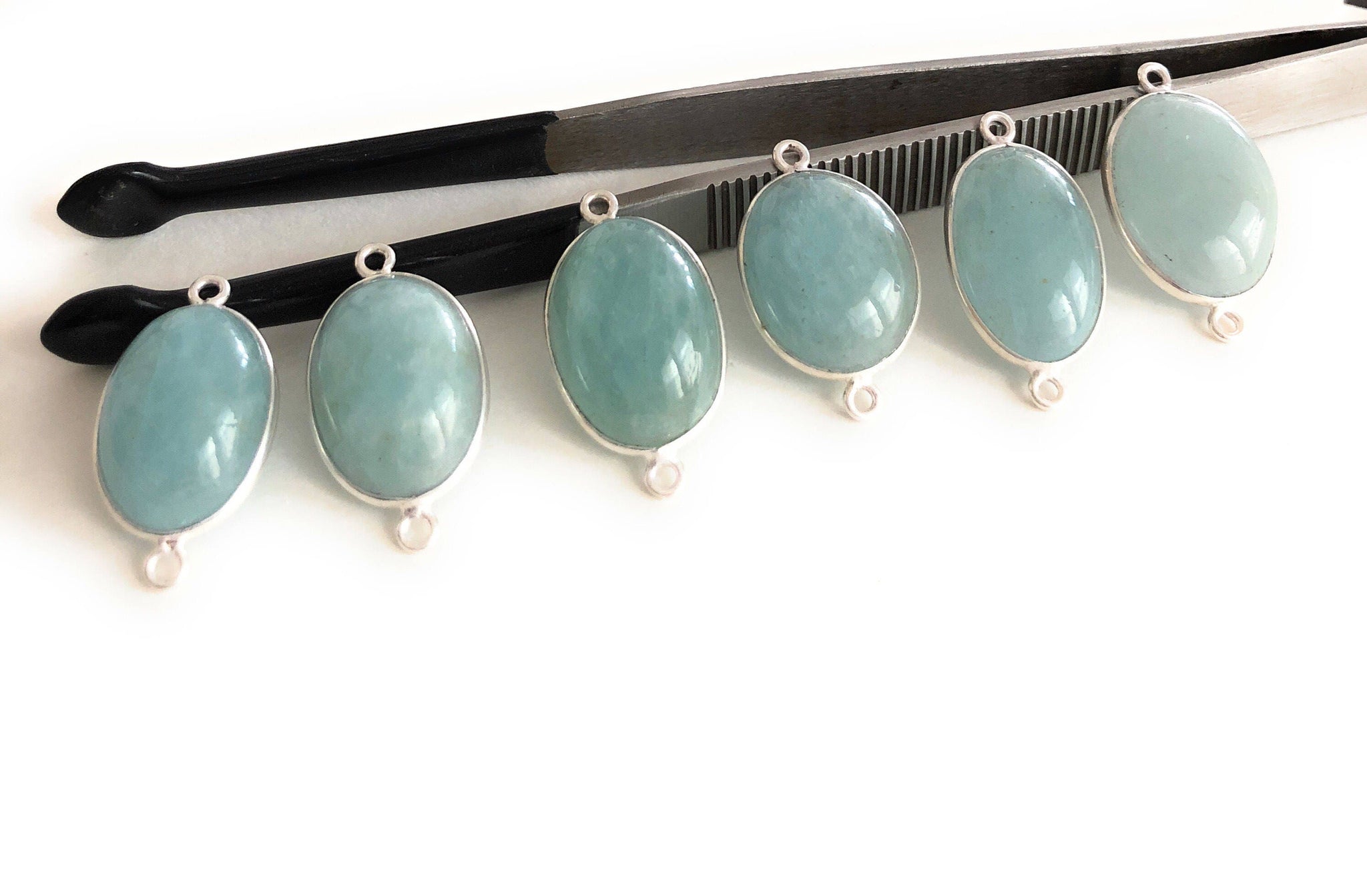 Gemstone Connectors, Silver Connectors, Aquamarine Connectors, Bezel Connectors, Jewelry Supplies, Jewelry Making, Natural Gemstone, DIY