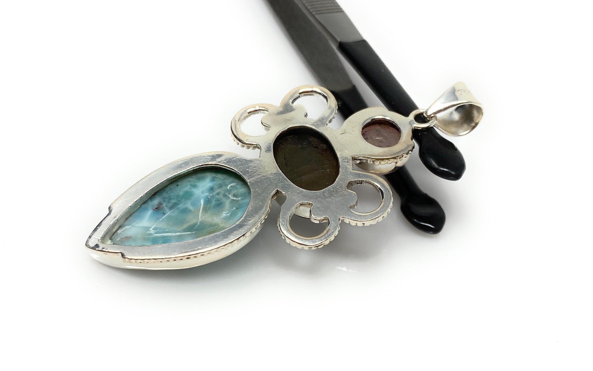 Larimar, Cats Eye and Morganite Gemstone Sterling Silver Wire Wrapped Pendant Jewelry at Wholesale Price.