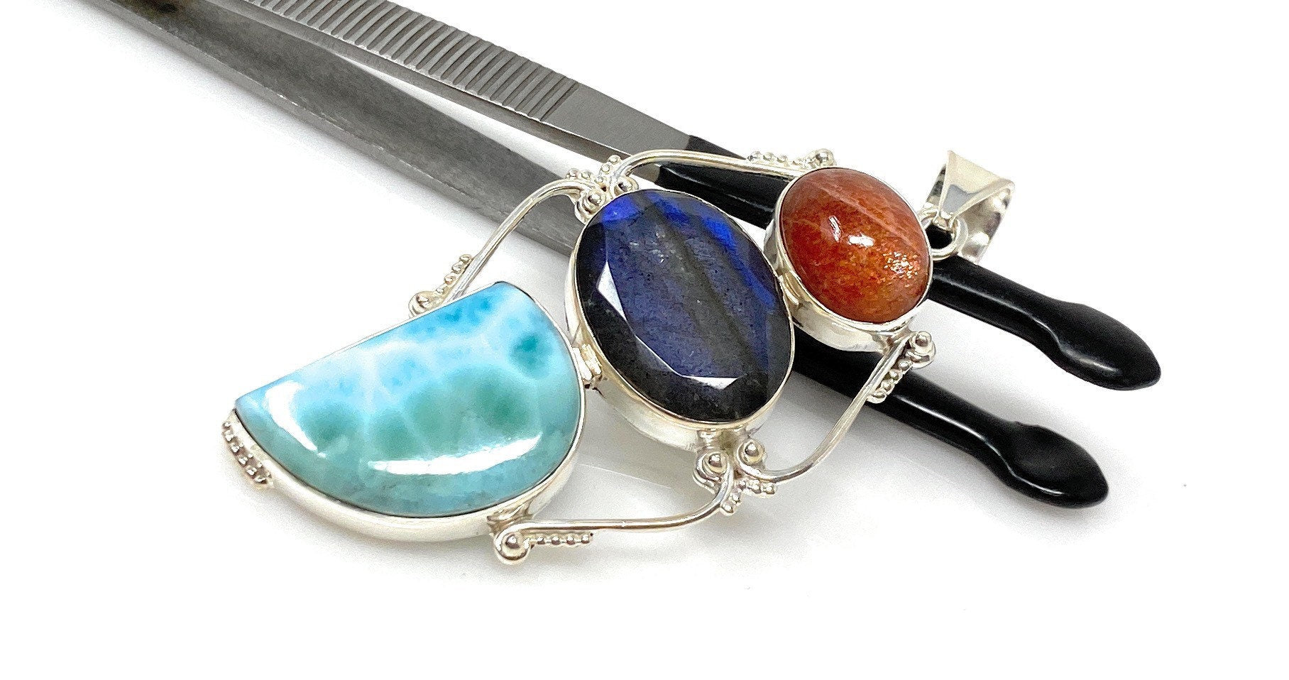 Labradorite, Larimar and Sunstone Gemstone Sterling Silver Pendant Jewelry at Wholesale Price.