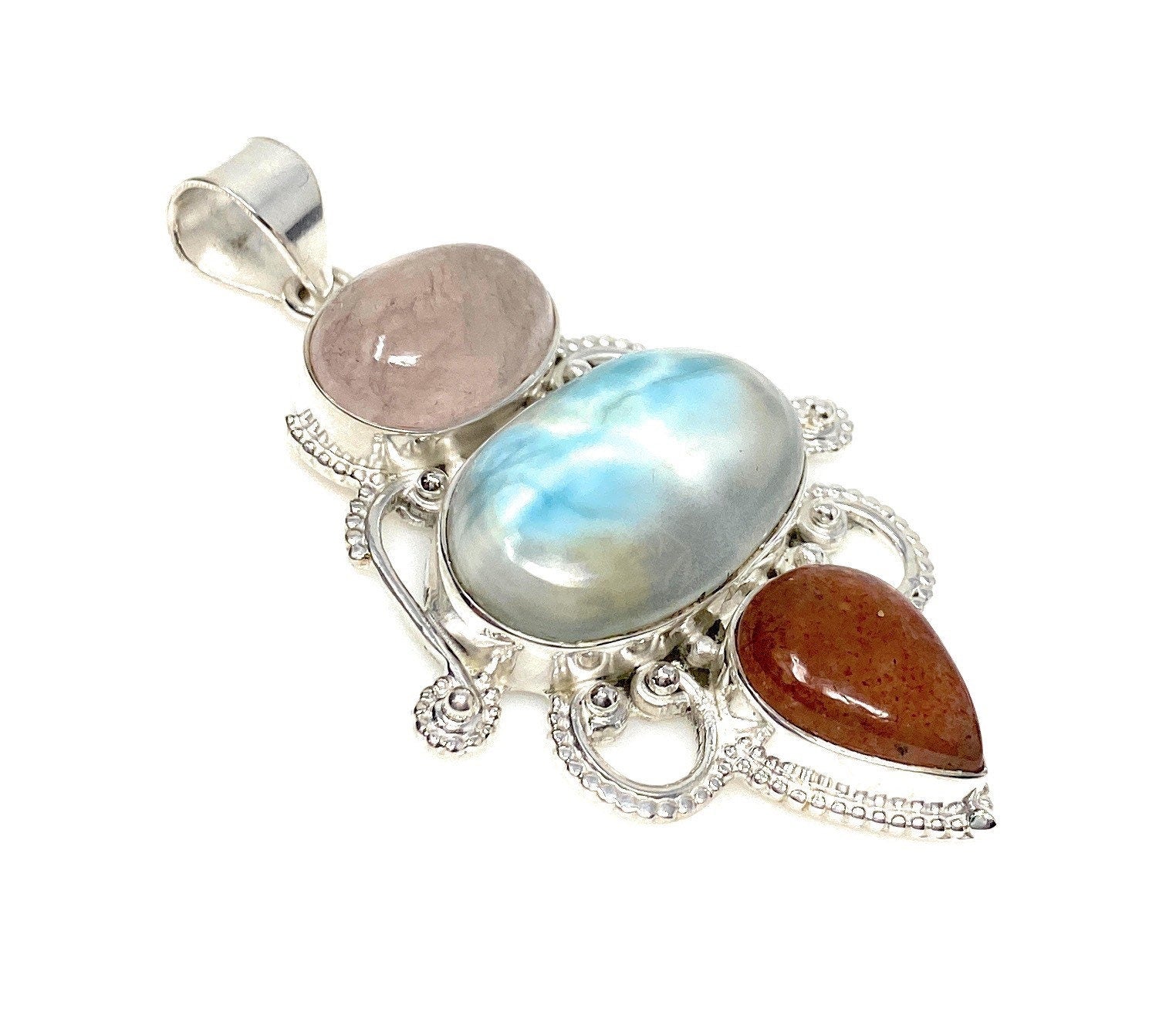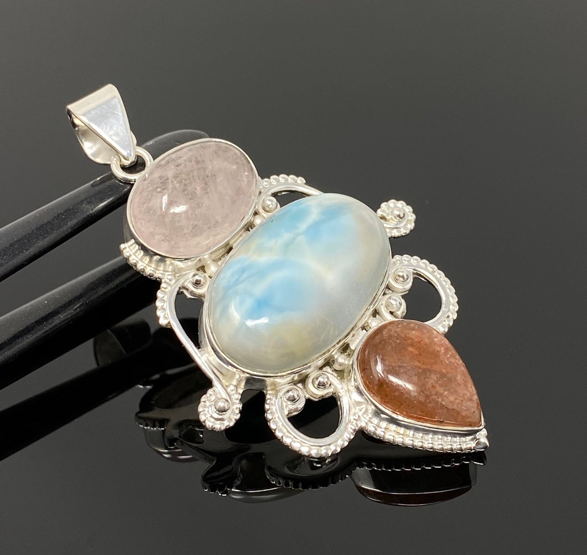 Larimar, Morganite and Sunstone Gemstone Sterling Silver Pendant Jewelry at Wholesale Price.