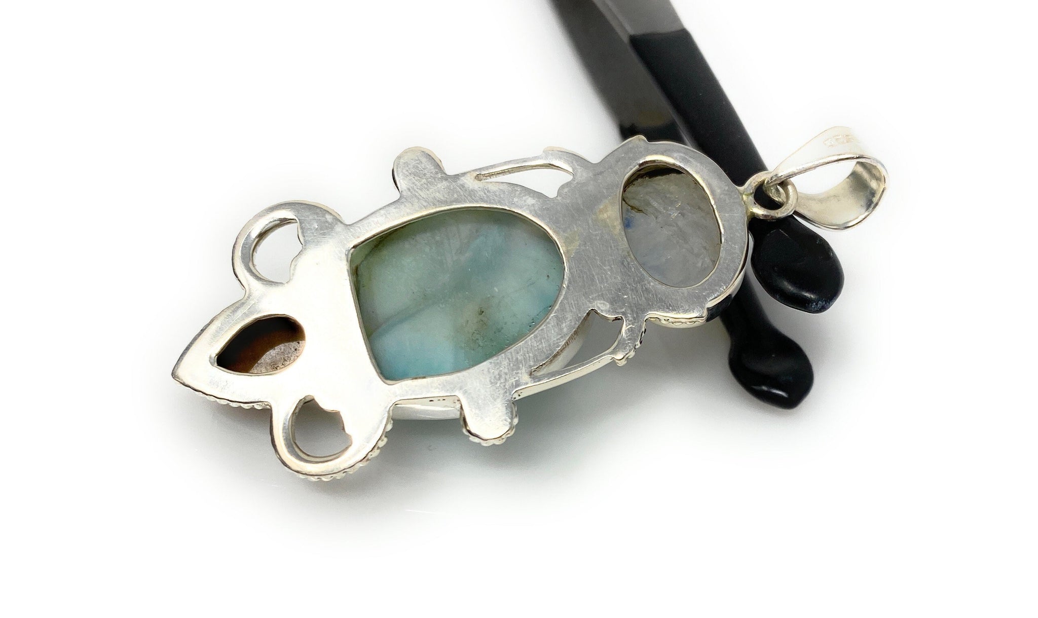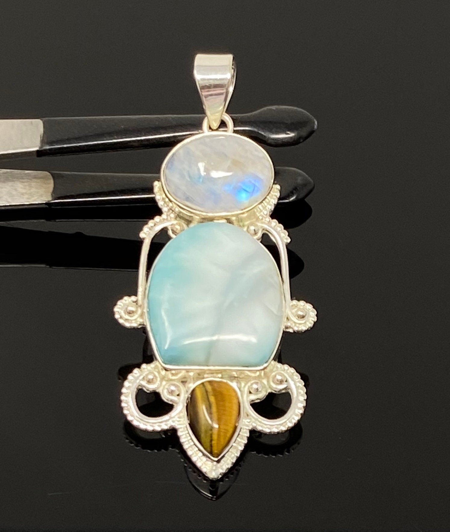Larimar, Tigers Eye and Blue Flash Moonstone Gemstone Sterling Silver Pendant Jewelry at Wholesale Price.