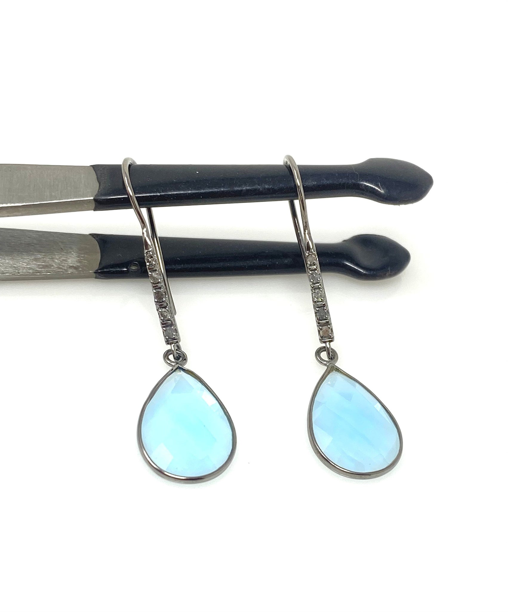 These beautiful Earrings are made with meticulous care using genuine diamonds and Genuine Blue Topaz bezel set in Black Rhuthenium over Sterling Silver.