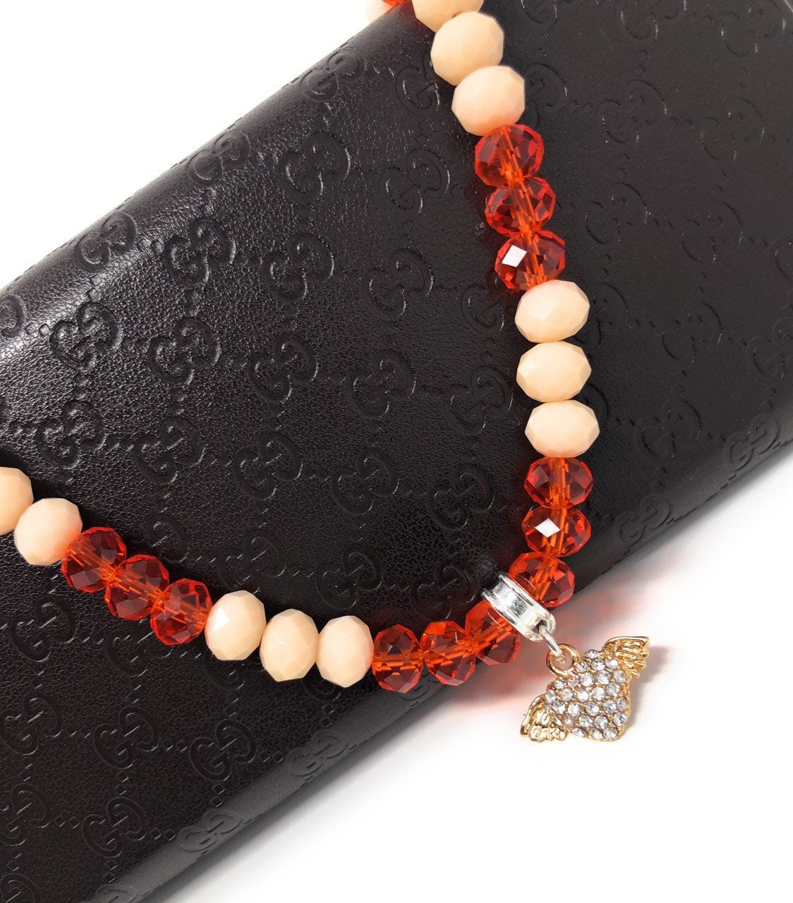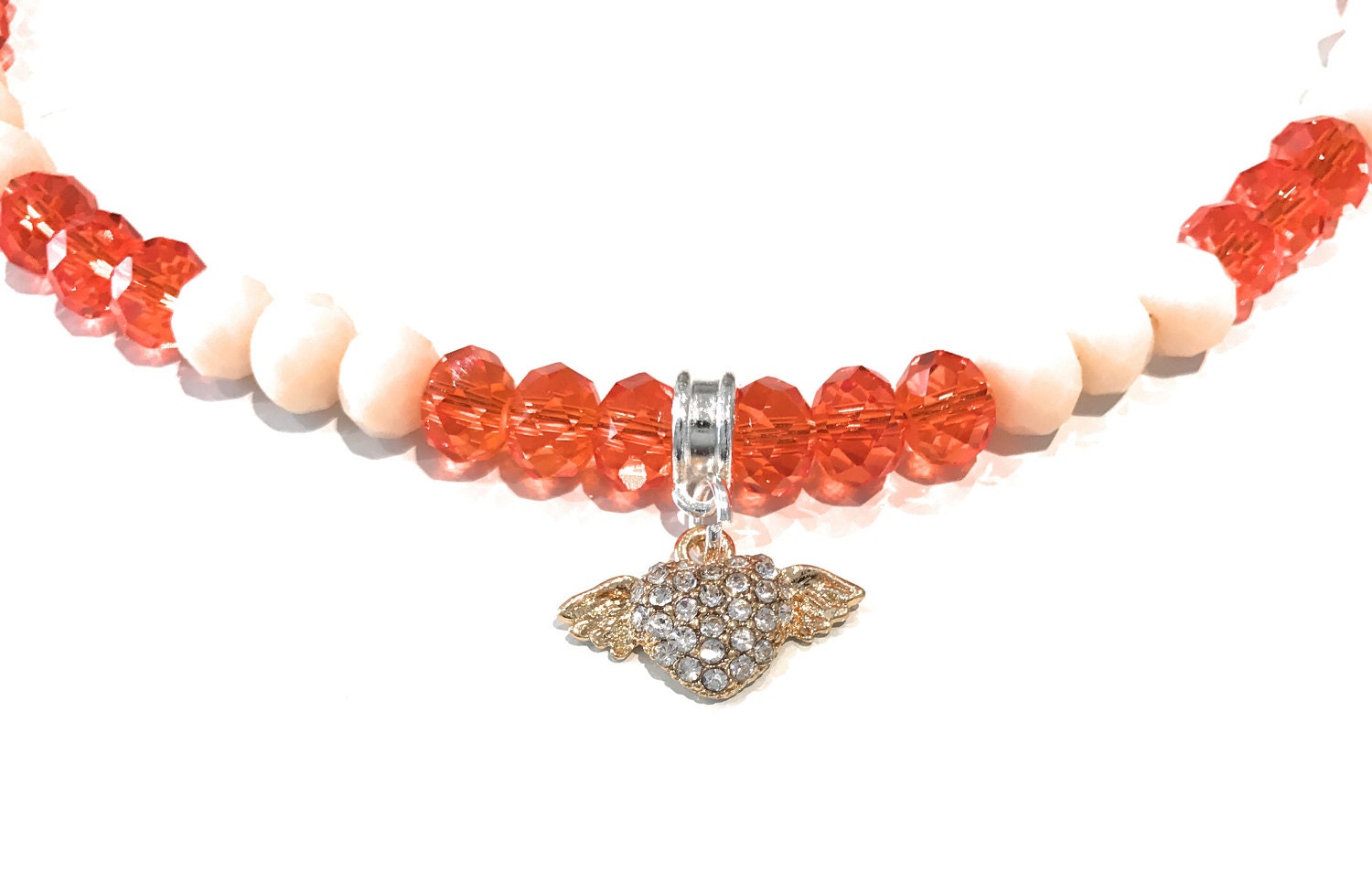 This Beautiful Necklace is made with Gold Plated Angel Wing Charm studded with Rhinestones and faceted glass beads in eye catching colors with Magnetic Clasp which girls love to wear.