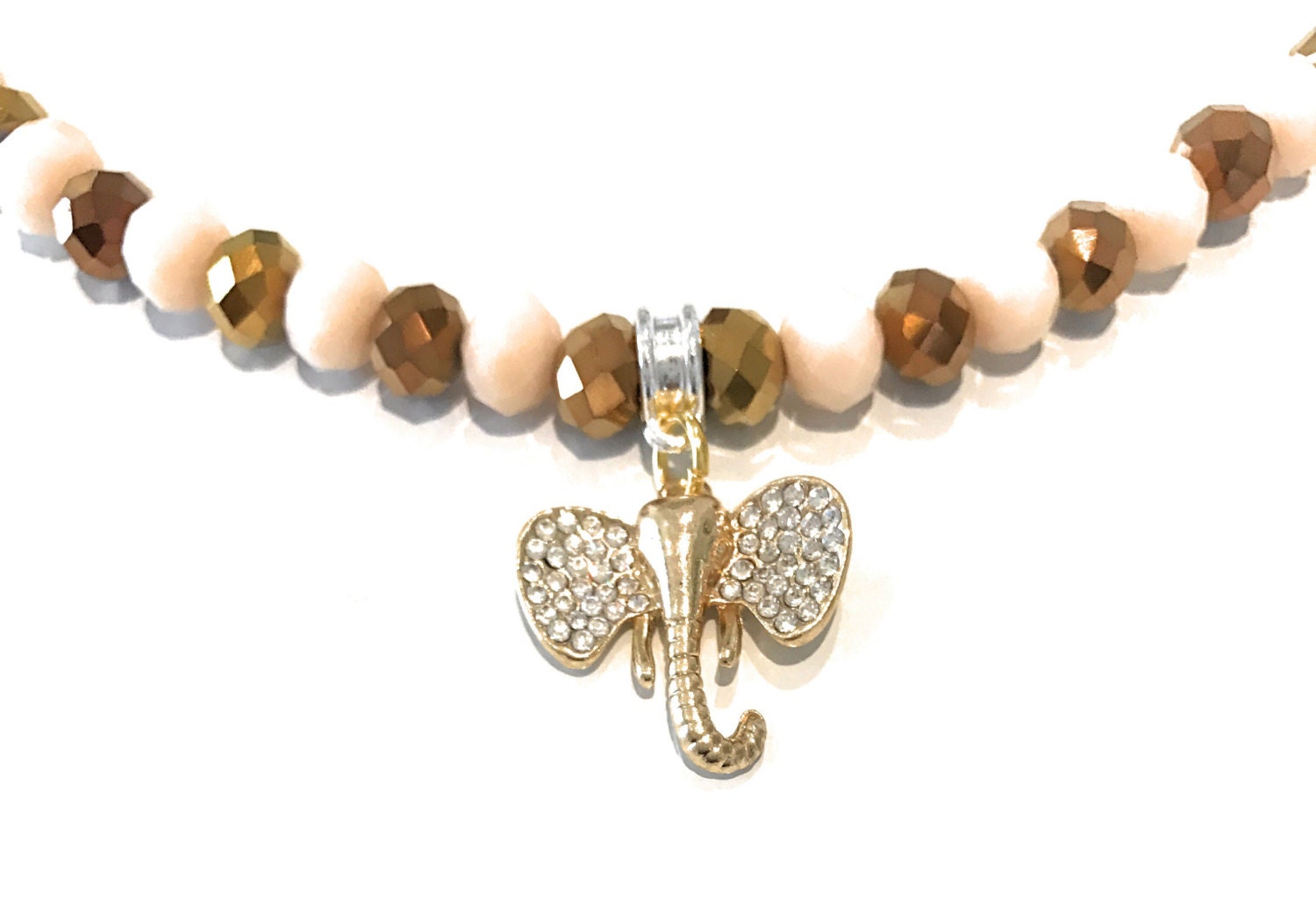 This beautiful Gold Plated Elephant Pendant Bead Necklace is made using Cream and Metallic Copper Beads with easy to use Magnetic Clasp and is perfect for everyday wear for Little Girls and makes a perfect gift for Birthdays, Bridesmaid, Thanksgiving, Christmas and New Year.