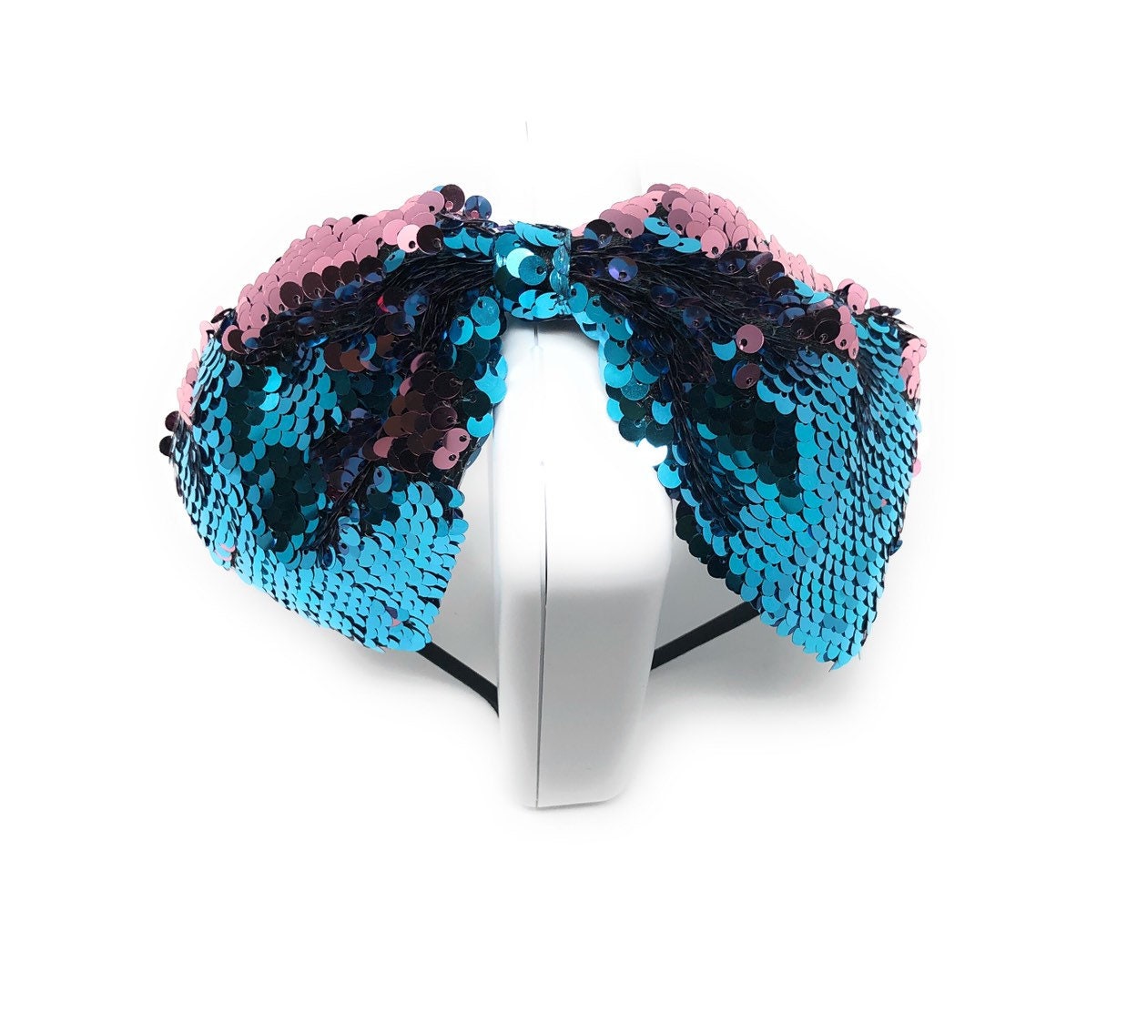 This Beautiful Mermaid Scales Flip Reversible Sequins Hair Bow Headband for Girl Kid adds glamour to any outfit. The Bow id glued only in the middle and is flexible.
