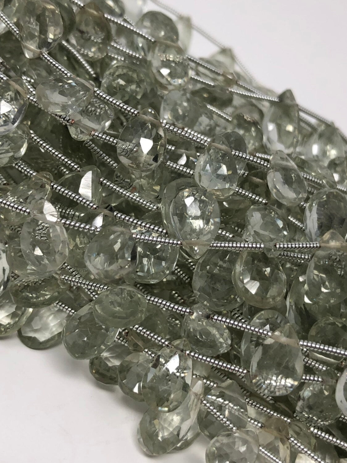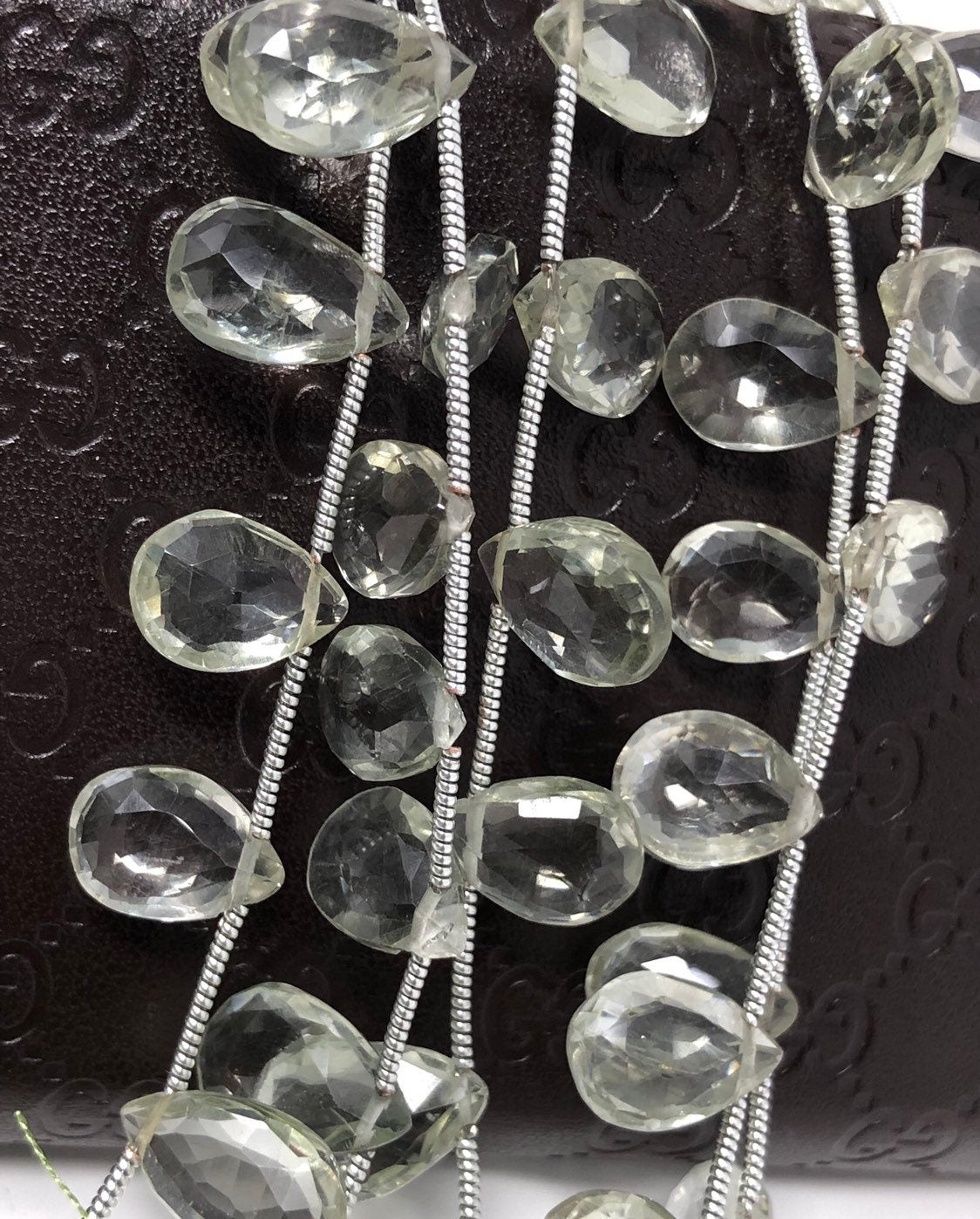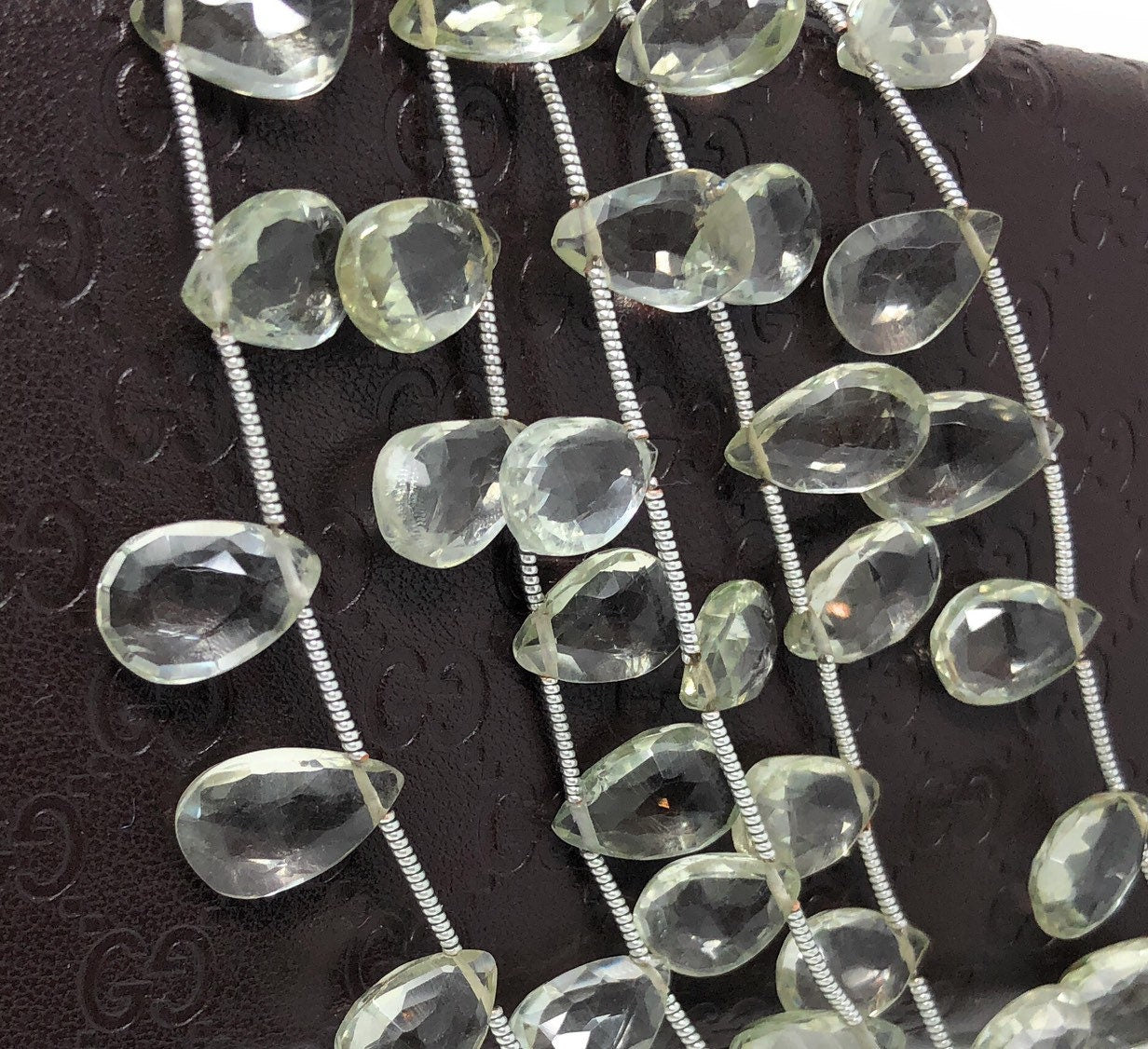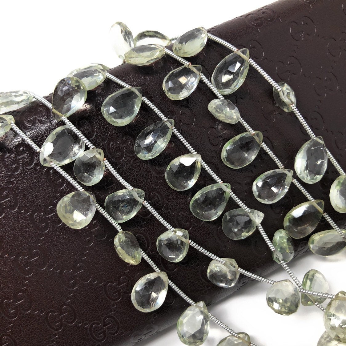 Green Amethyst Gemstone Beads, Prasiolite Beads, Natural Green Amethyst Briolette Beads, Bulk Wholesale Gemstone Beads, 8" Strand