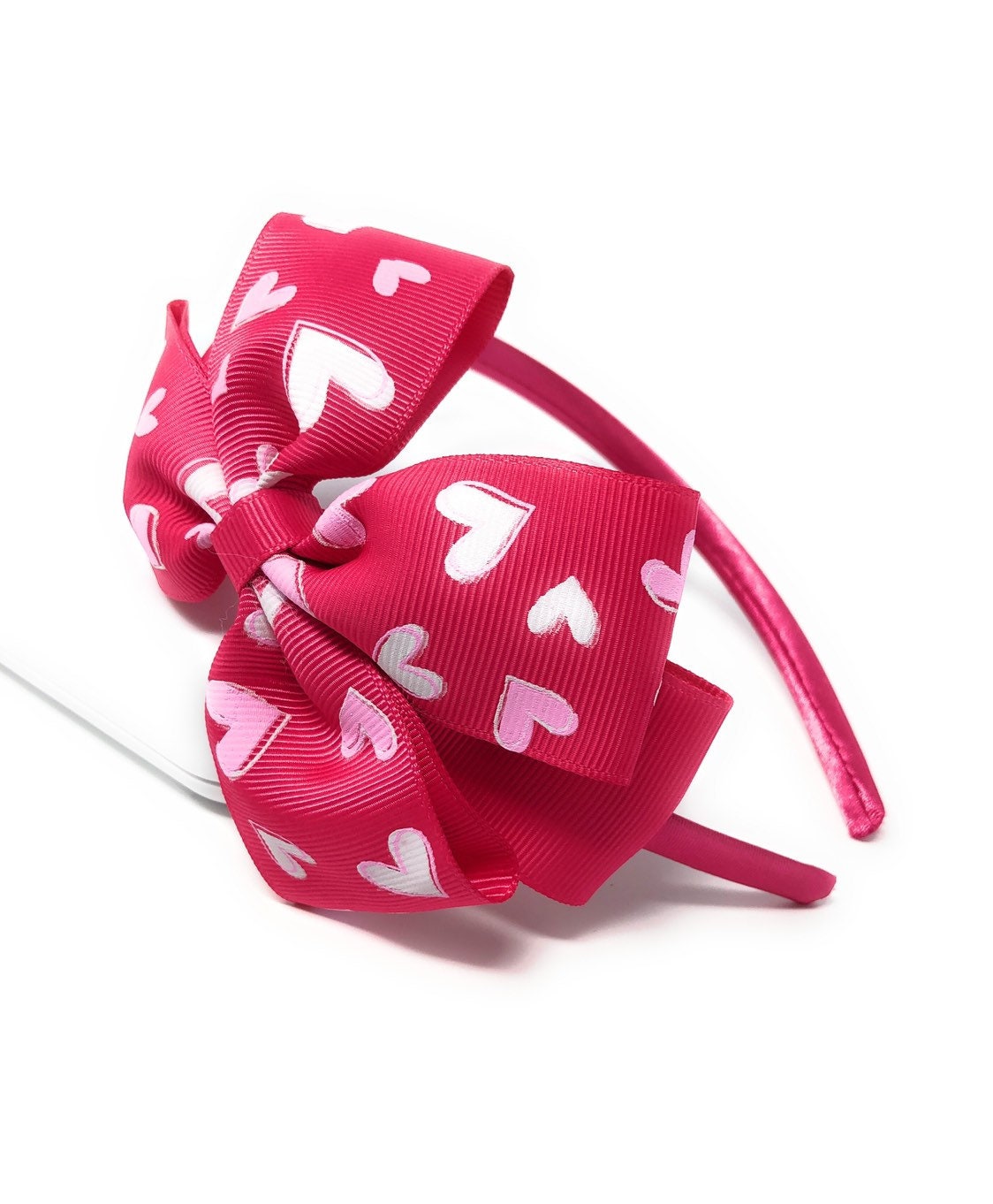 Large Hair Bow Heart Print Headband for Girls Birthday and Party Favors.