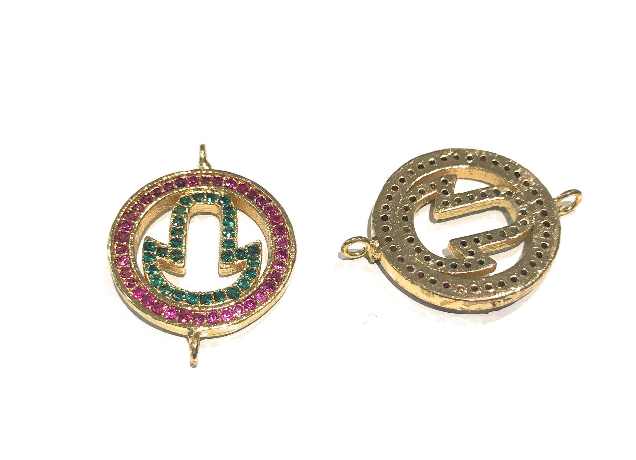 Material: Brass , Green Color CZ and Pink Color CZ.