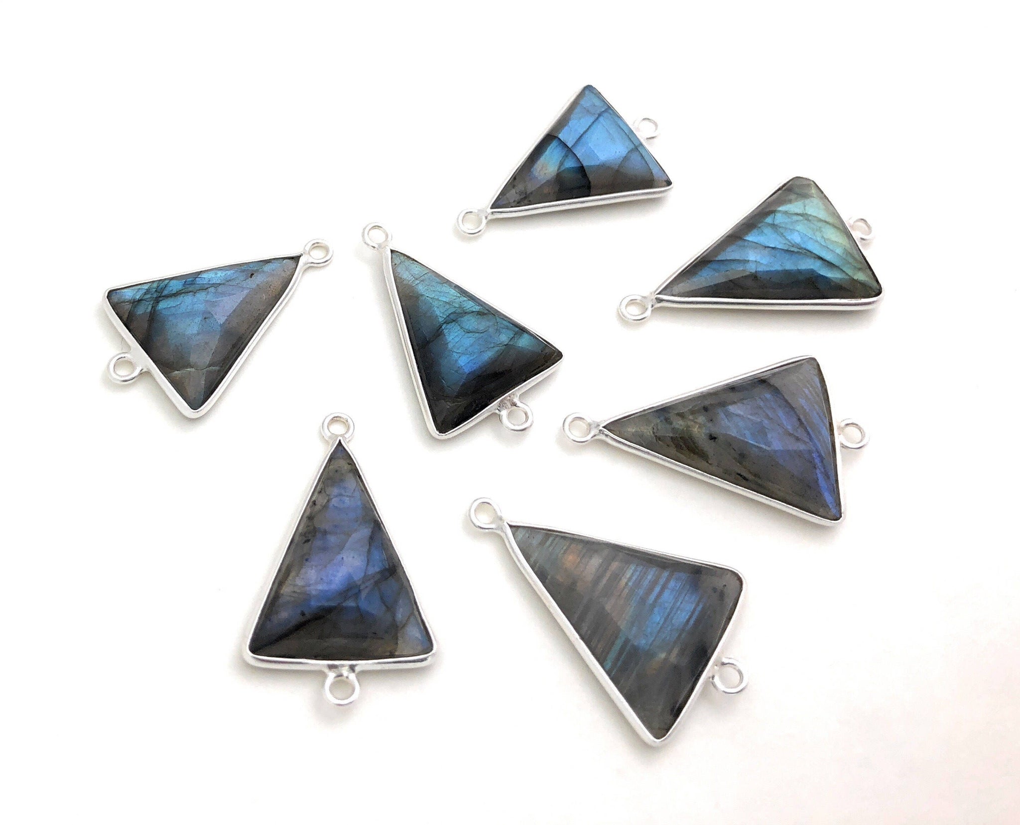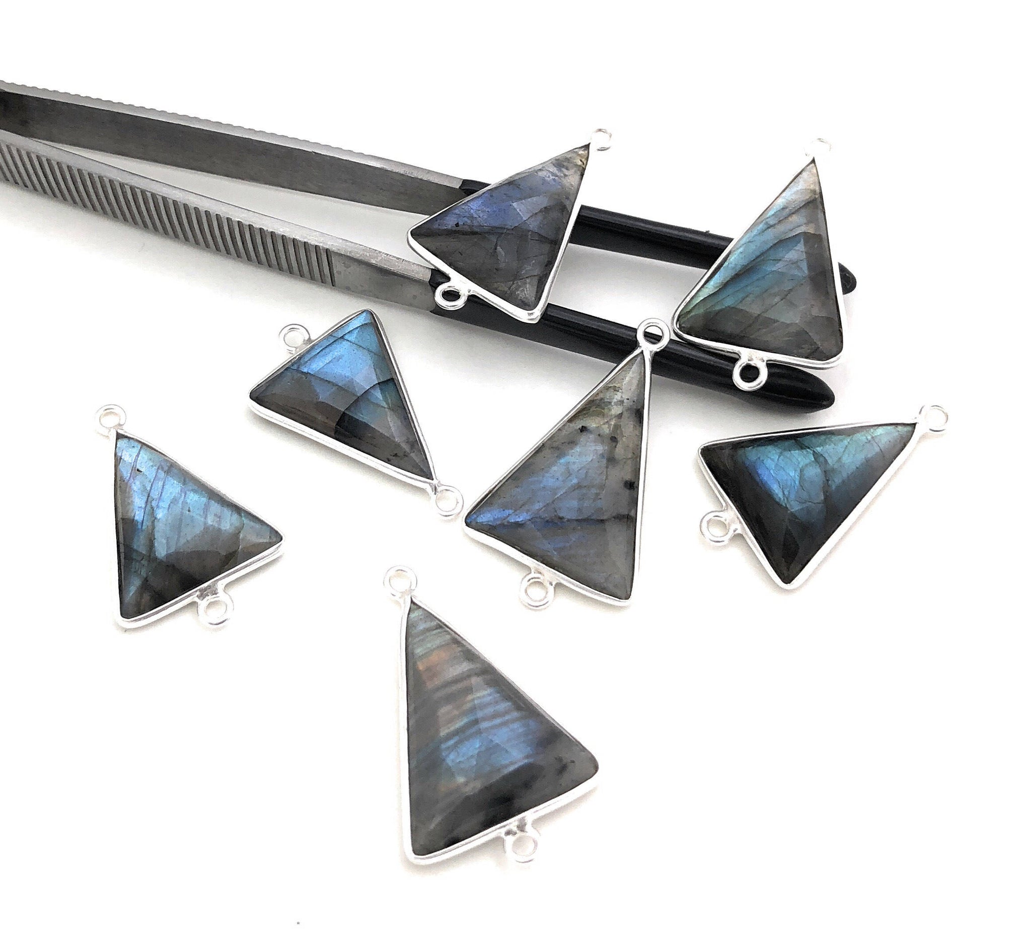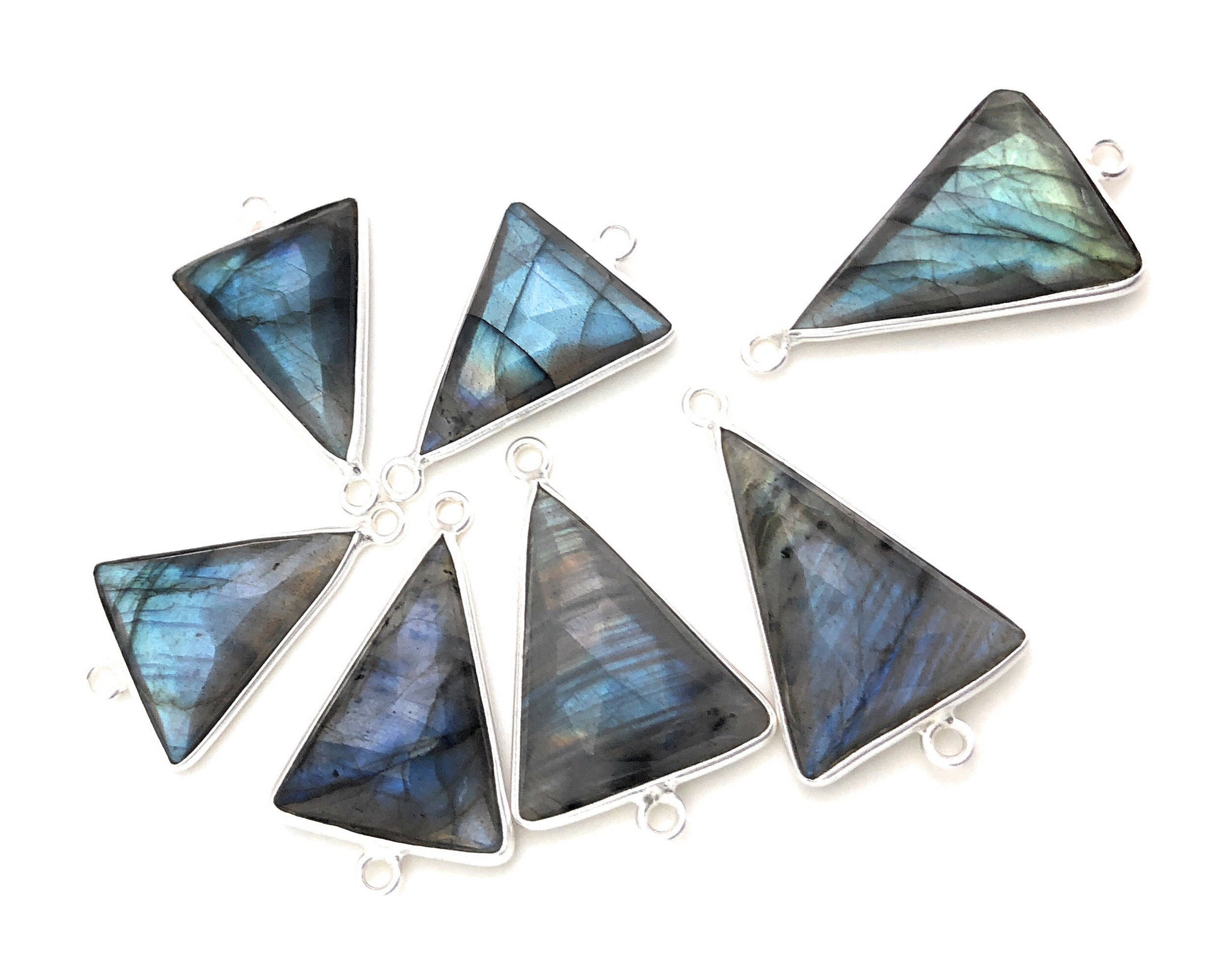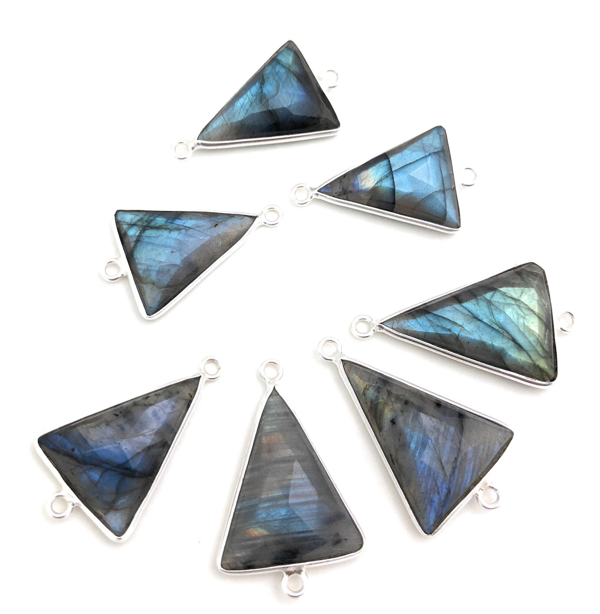 These beautiful Handmade Sterling Silver Triangle Shape Large Size Natural Gemstone Faceted Labradorite Connectors are an excellent choice for making any Jewelry Design.